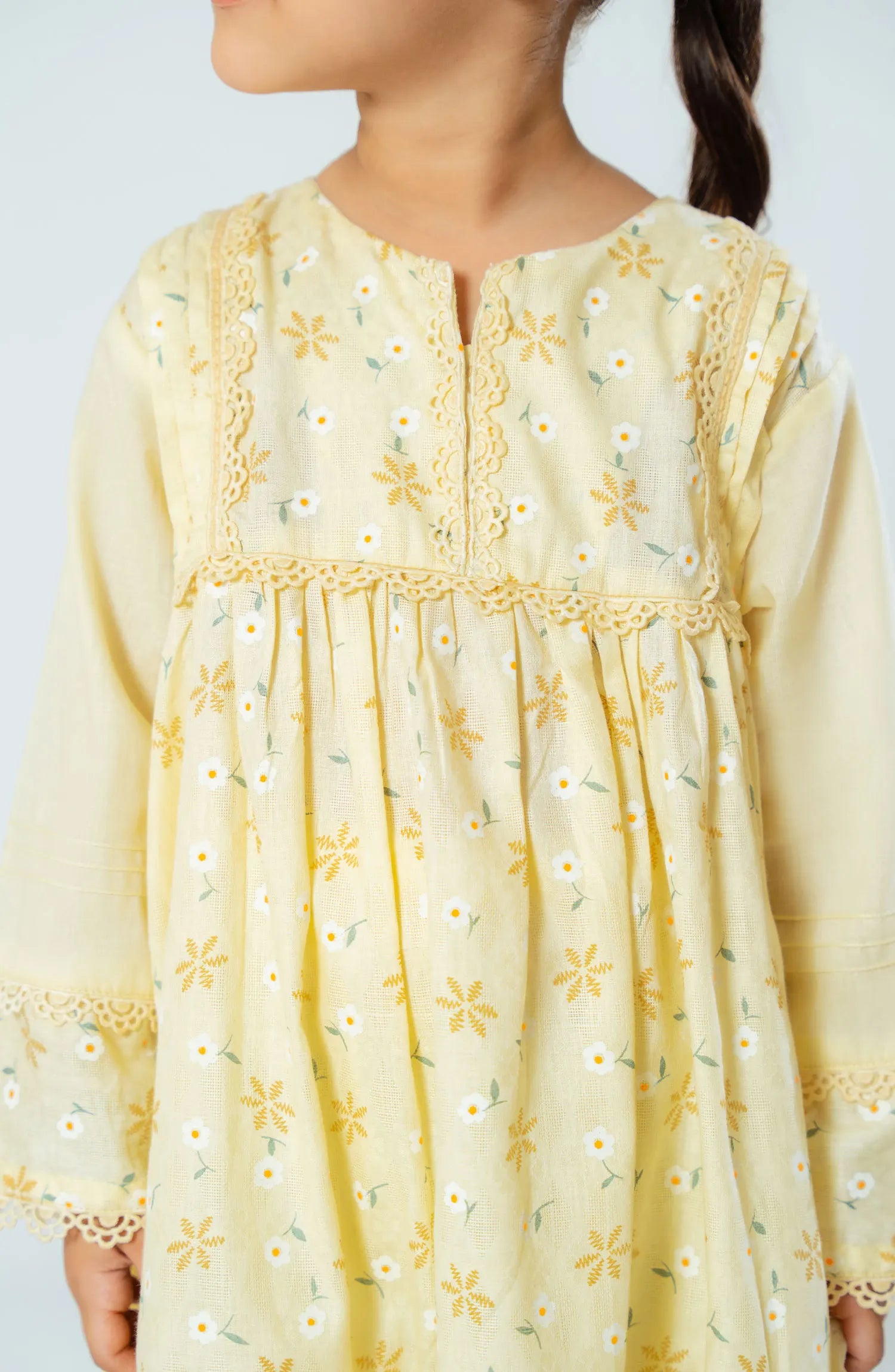 Cotton fabric with lace wrk frock size
