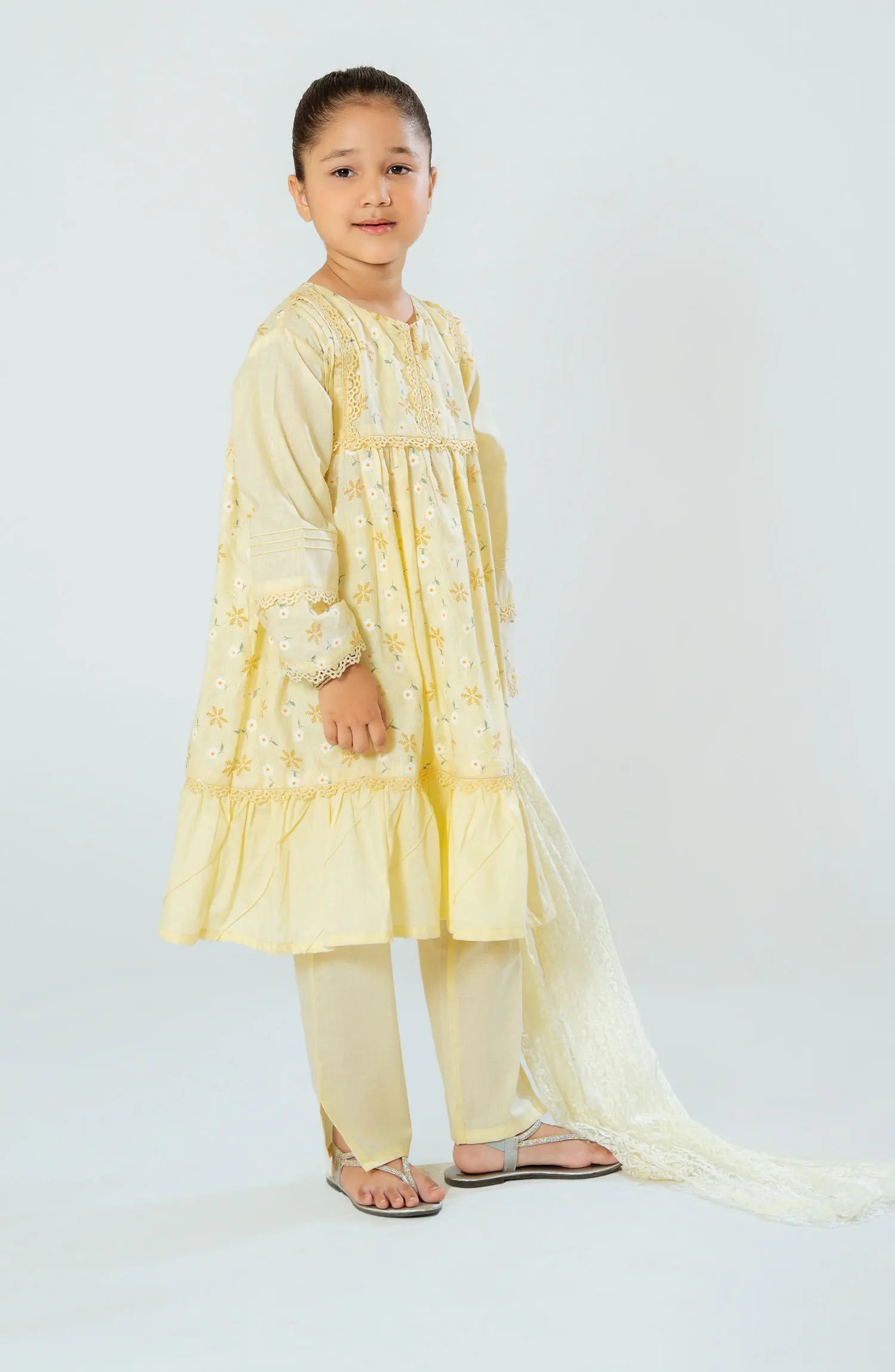 The standard style comes as a long-sleeved kameez with dupatta and trouser/shawlar.