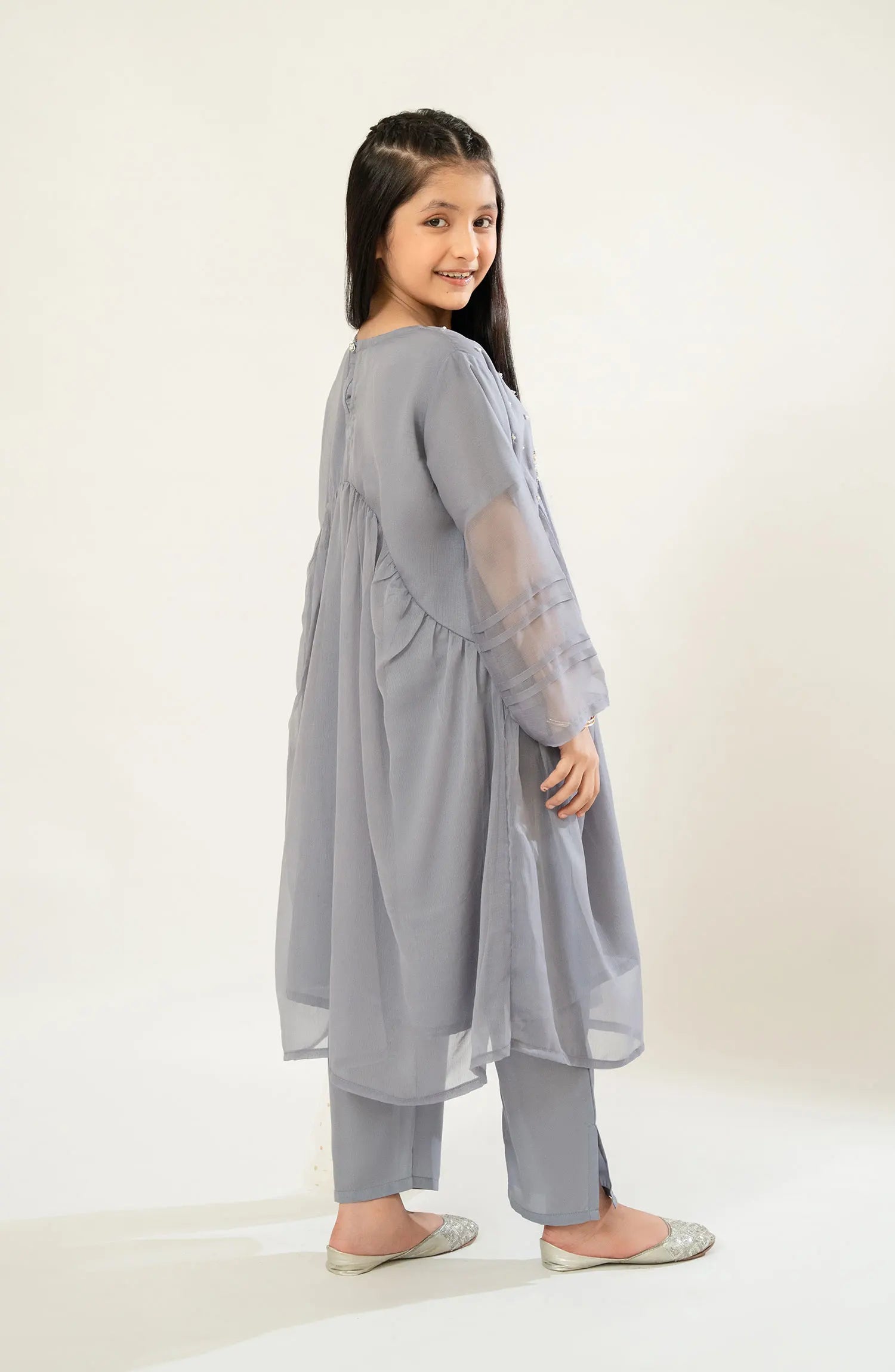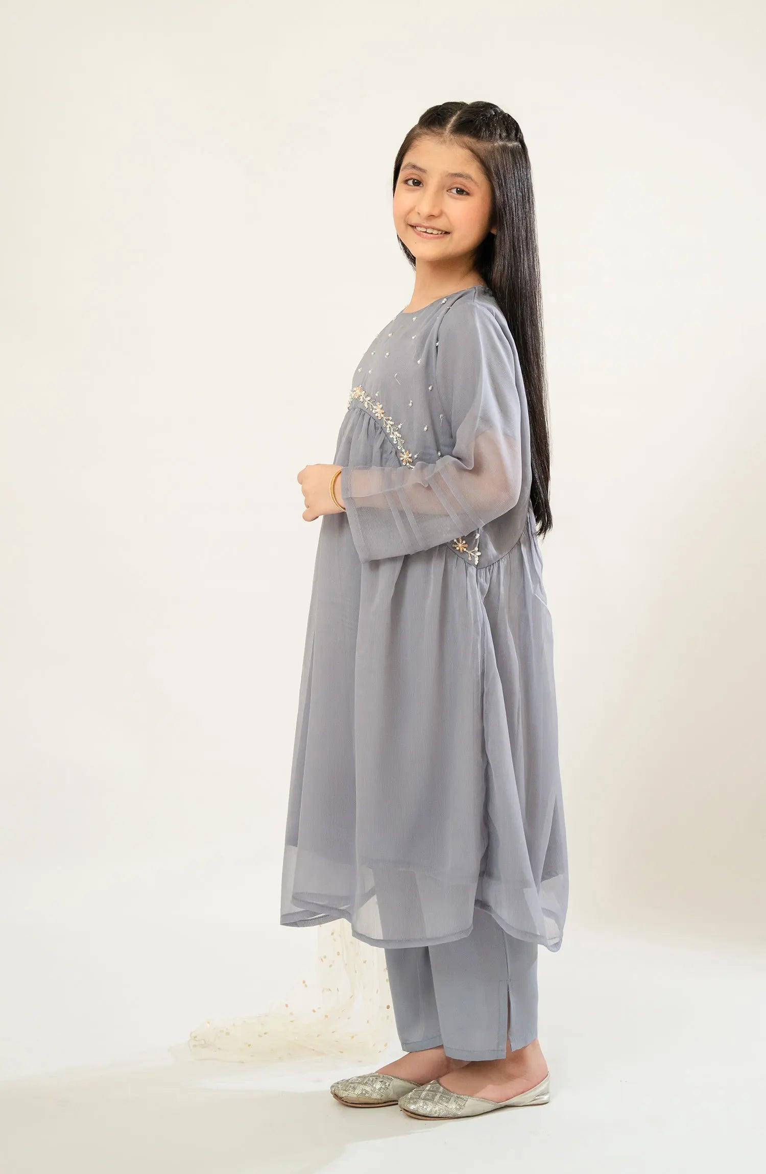 The standard style comes as a long-sleeved kameez with dupatta and trouser/shawlar.