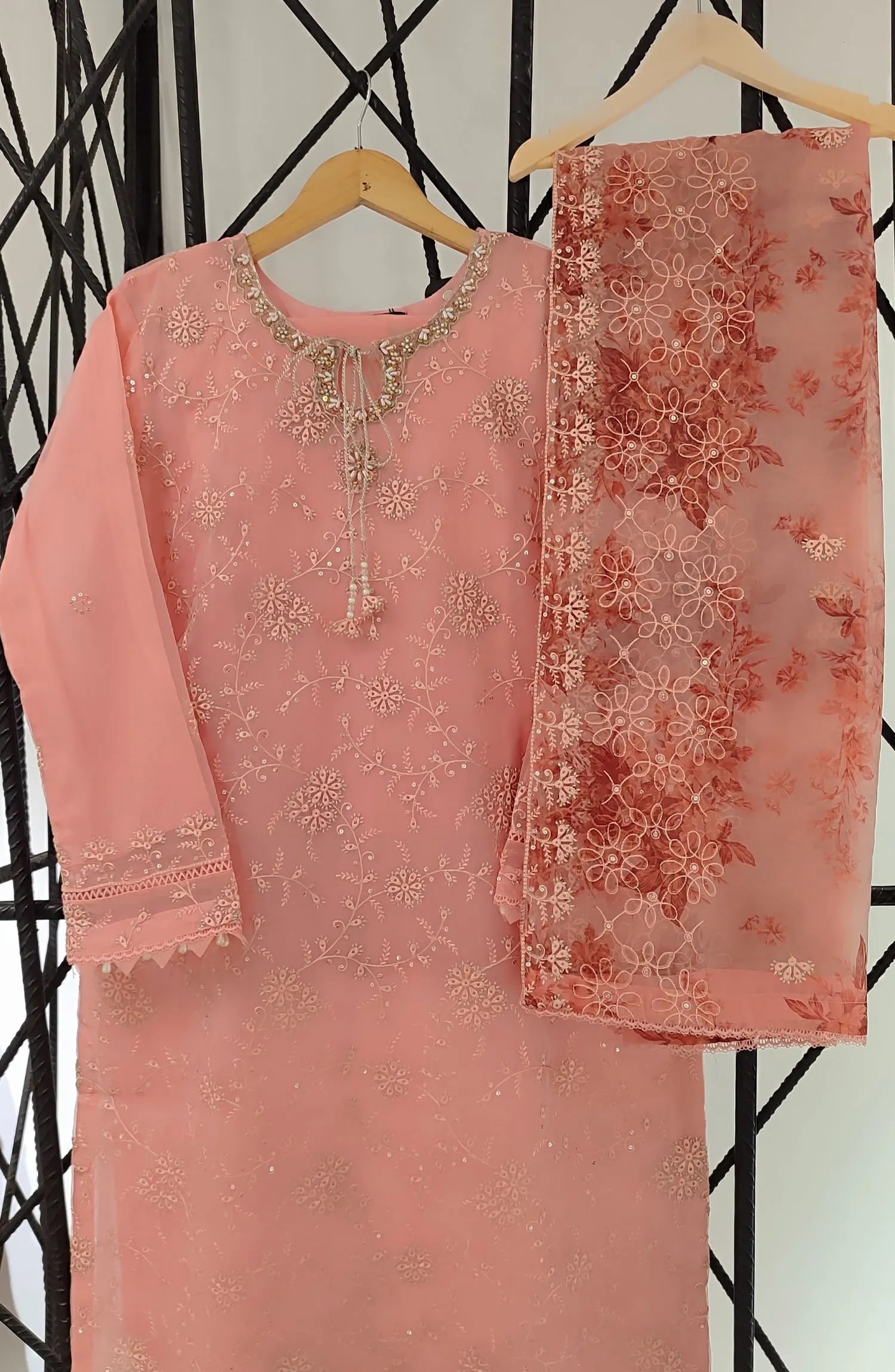 Amna Khadija Embroidered Crinkle Chiffon Unstitched 3 Piece Suit - D-03 - AM25LXC - Peach - Formals Collection