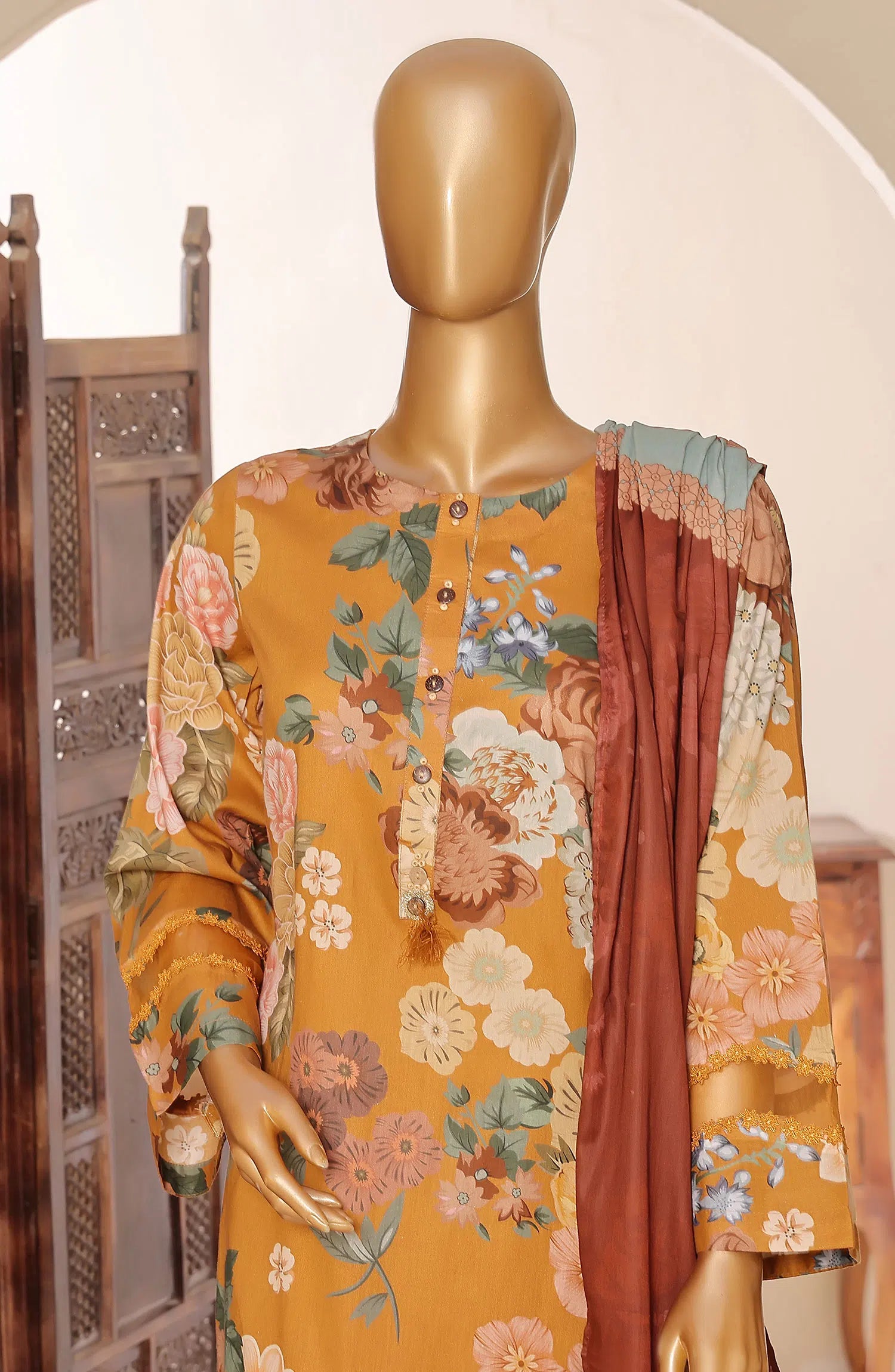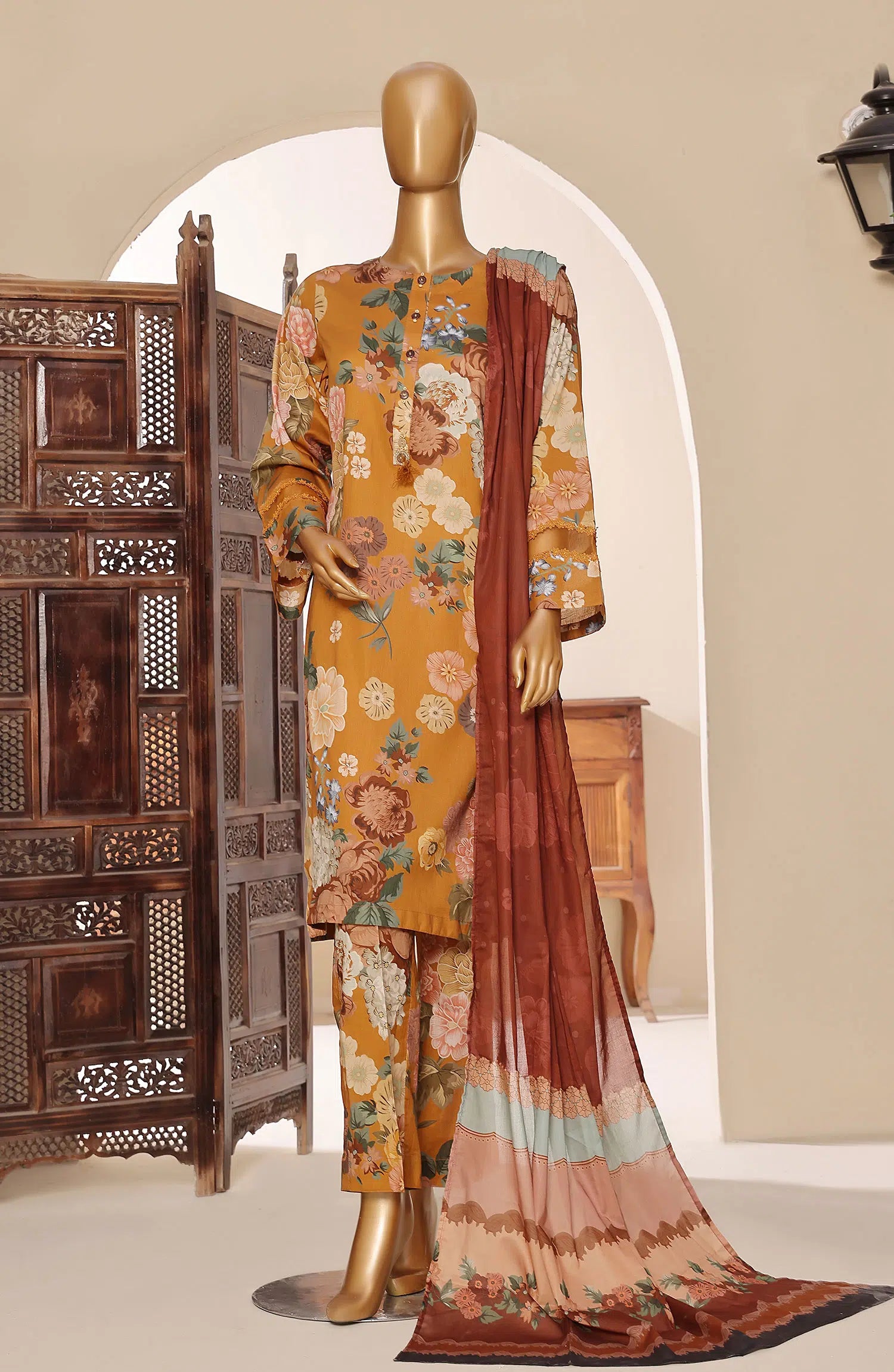 Maryams Luxury Embroidered Chiffon Unstitched 3 Piece Suit - Nyra-ARZ-9006 - MAR25LF - Mustard - Festive Collection