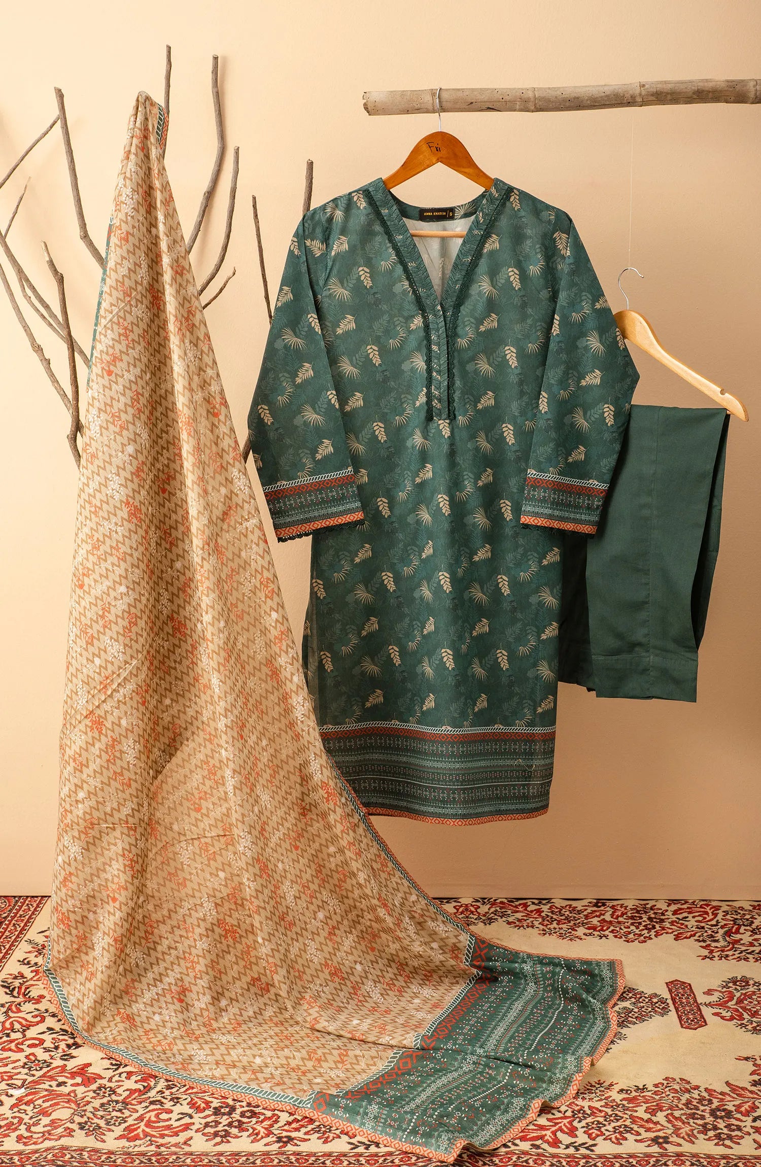 Modest Embroidered Khaddar Stitched 3 Piece Suit - 10000-Brn - MOD25WNT - Brown - Winter Collection