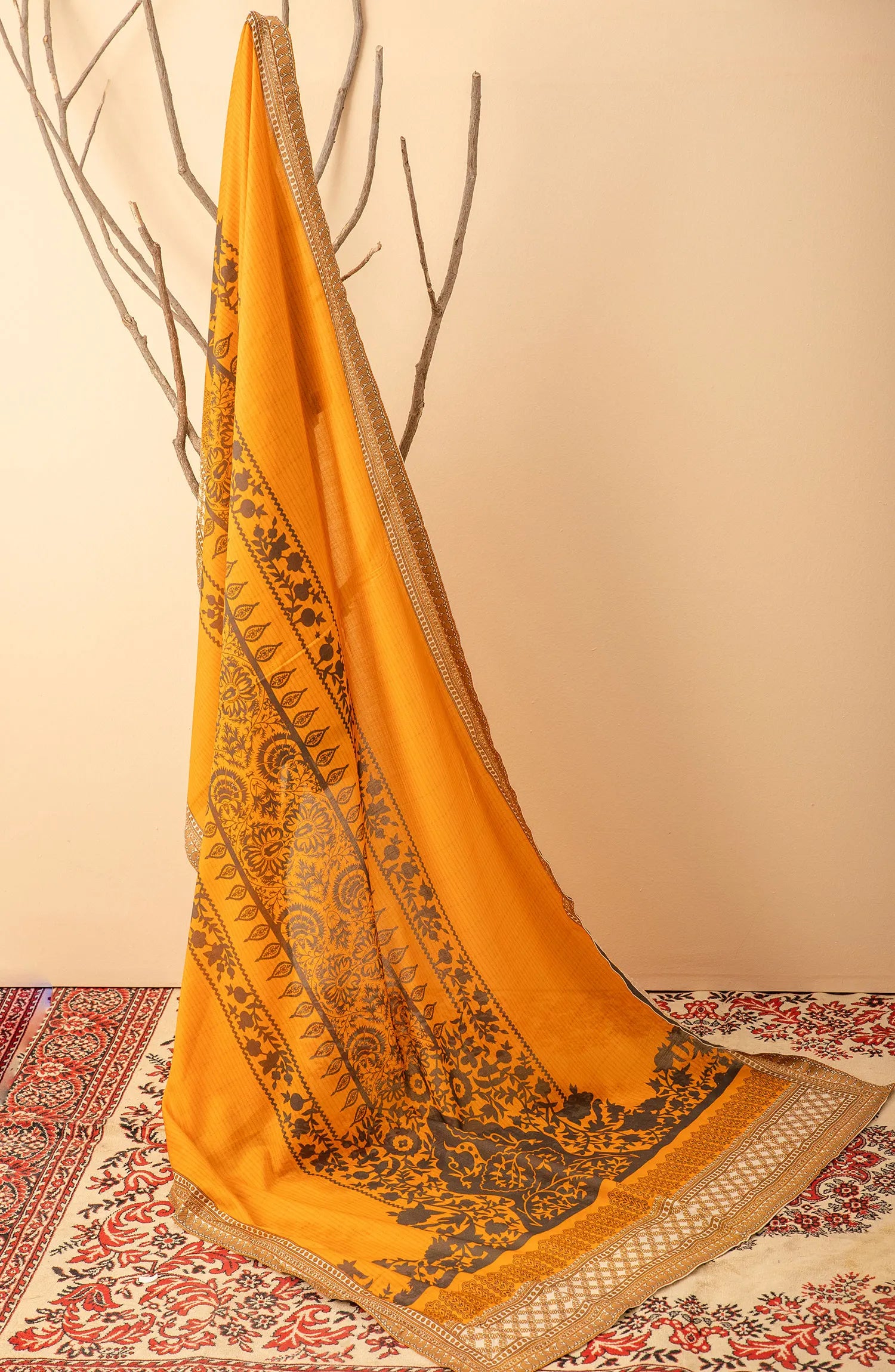 The standard style comes as a long-sleeved kameez with dupatta and trouser/shalwar.
