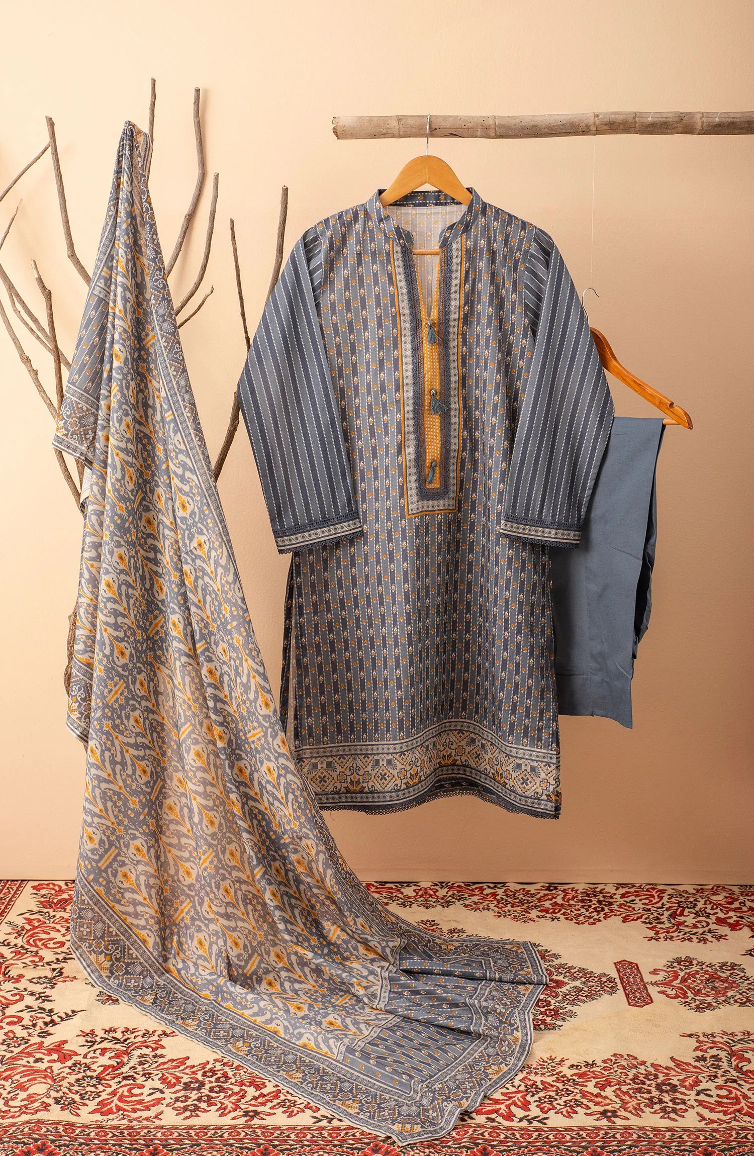 Modest Embroidered Khaddar Stitched 3 Piece Suit - 10000-Brn - MOD25WNT - Brown - Winter Collection