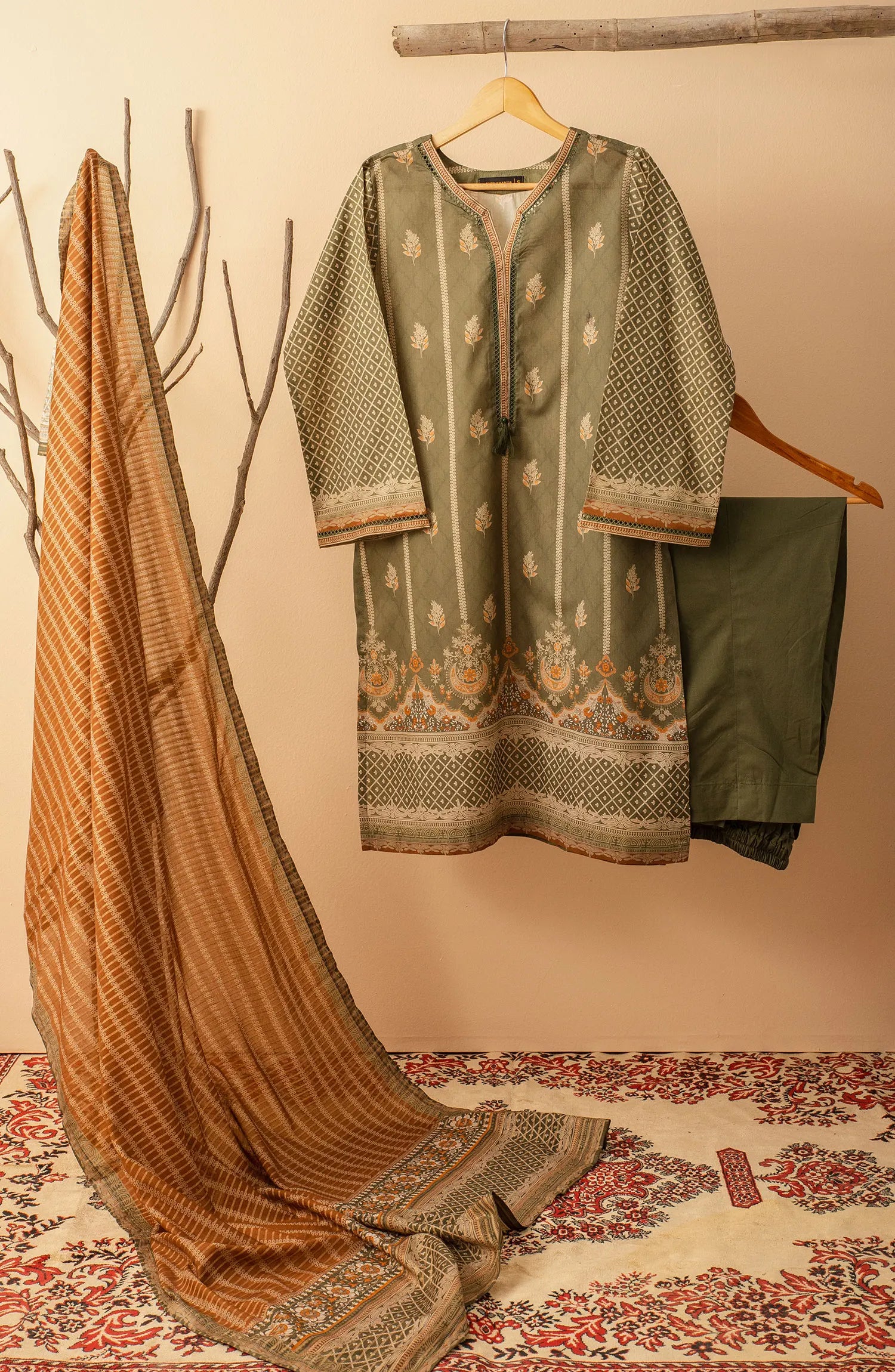 Modest Embroidered Khaddar Stitched 3 Piece Suit - 10000-Brn - MOD25WNT - Brown - Winter Collection