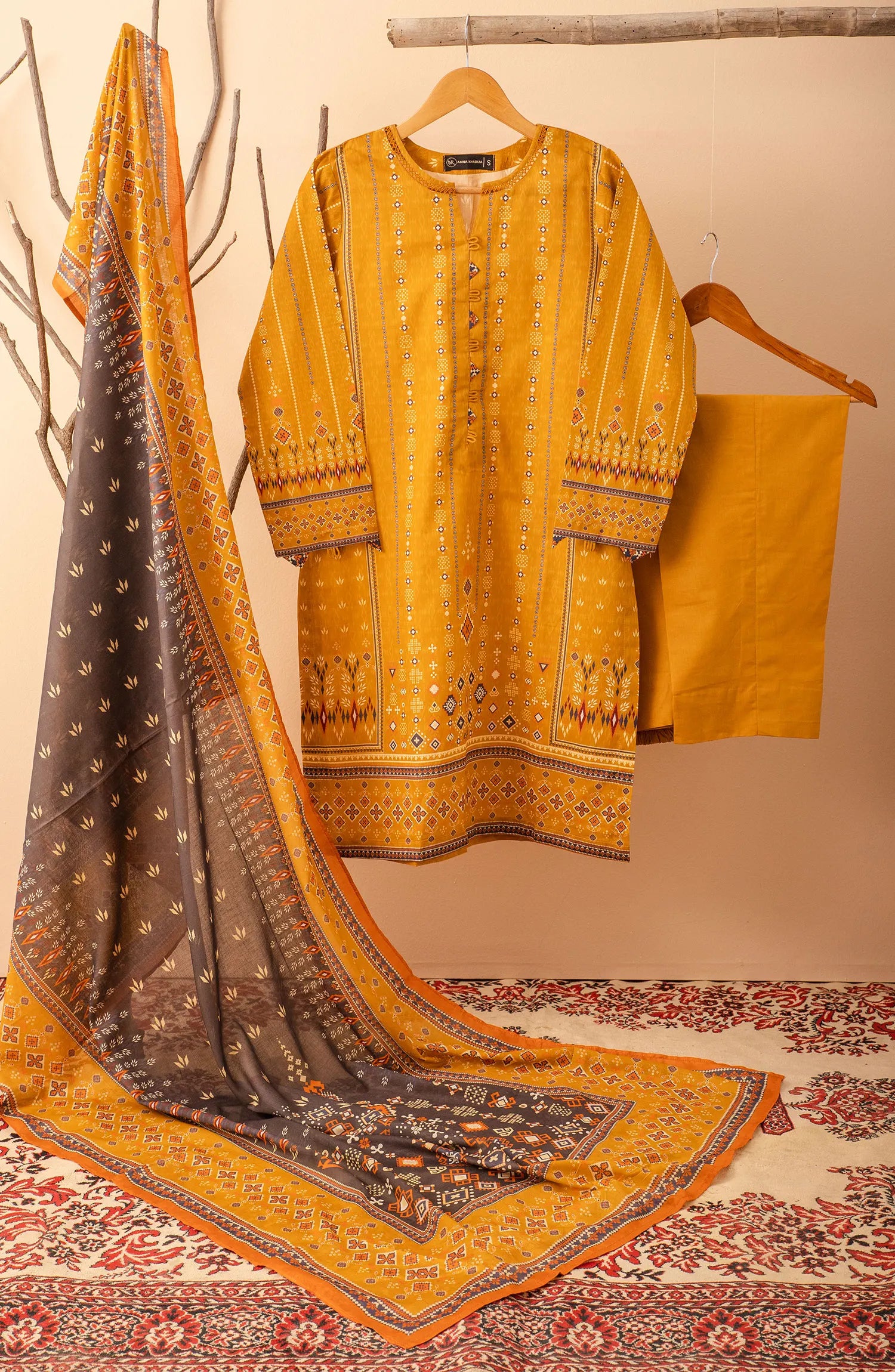 Modest Embroidered Khaddar Stitched 3 Piece Suit - 10000-Brn - MOD25WNT - Brown - Winter Collection