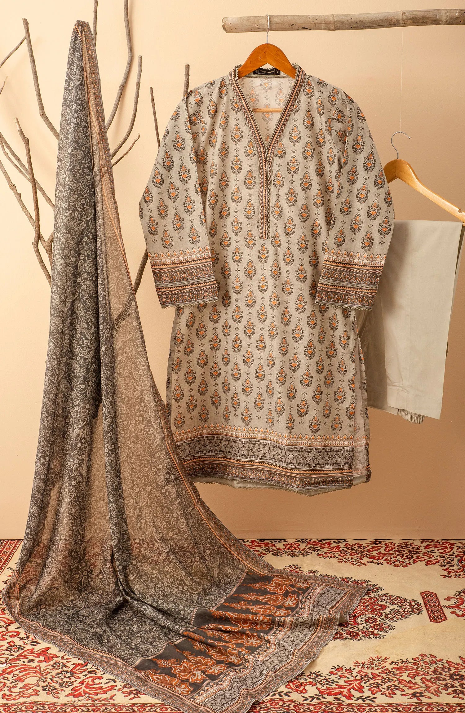 Modest Embroidered Khaddar Stitched 3 Piece Suit - 10000-Brn - MOD25WNT - Brown - Winter Collection