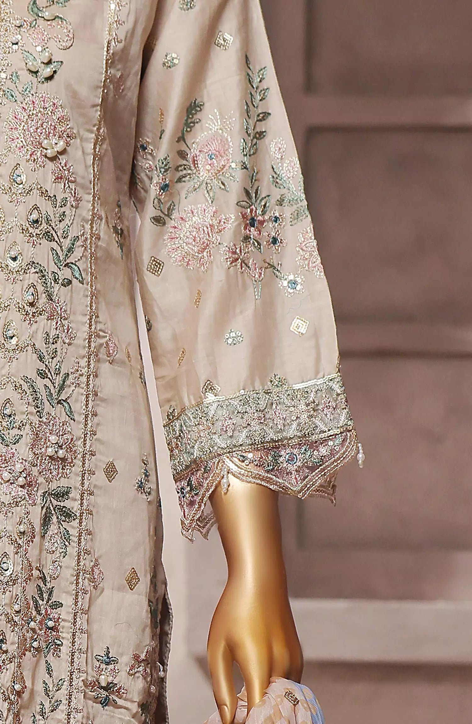 The standard style comes as a long-sleeved kameez with dupatta and trouser/shawlar.