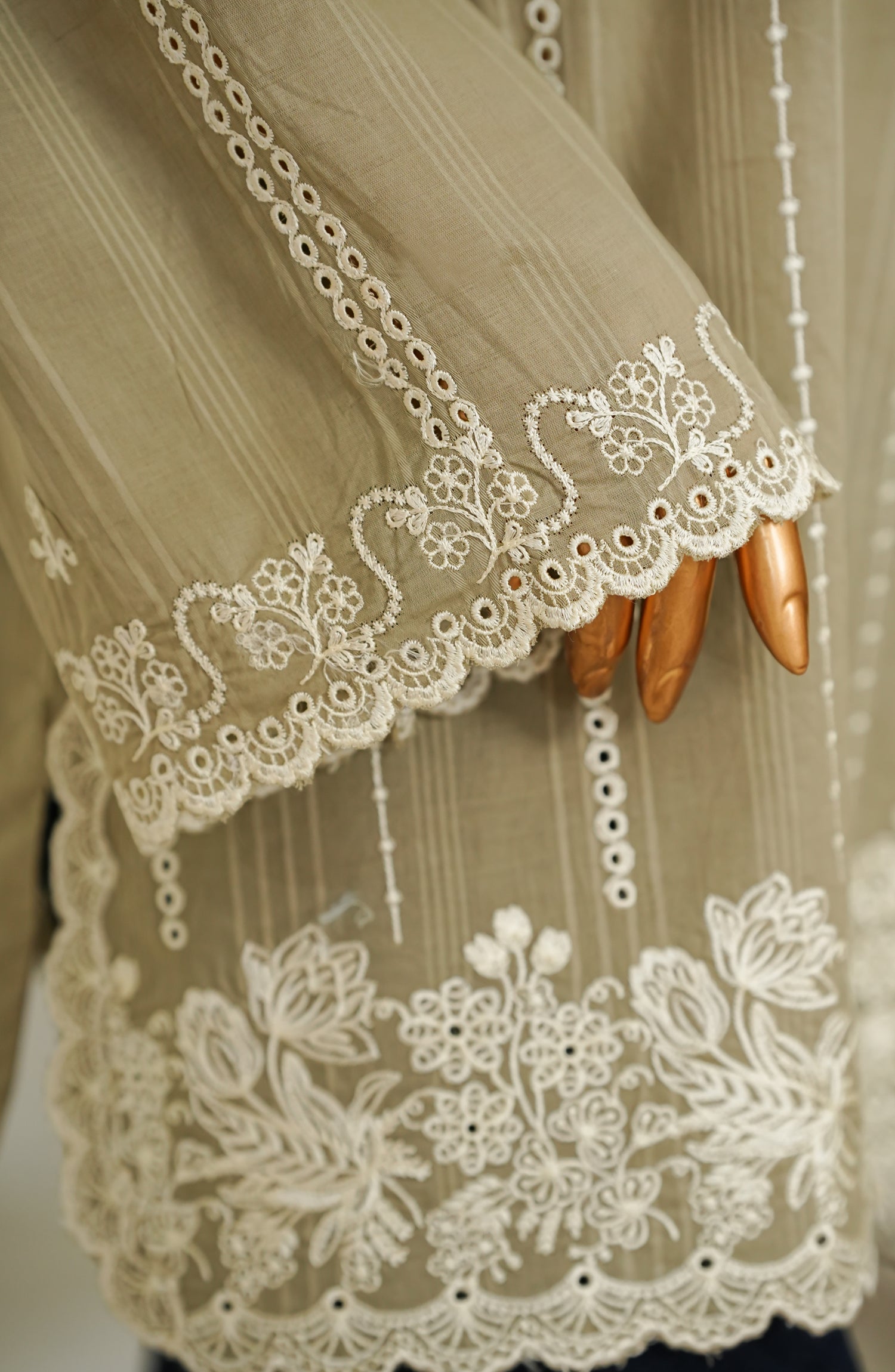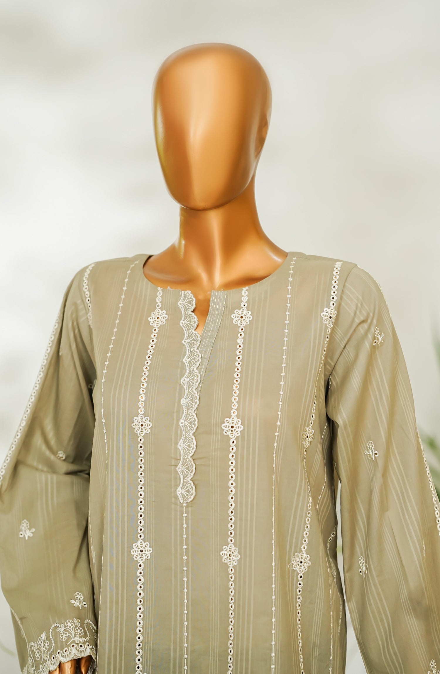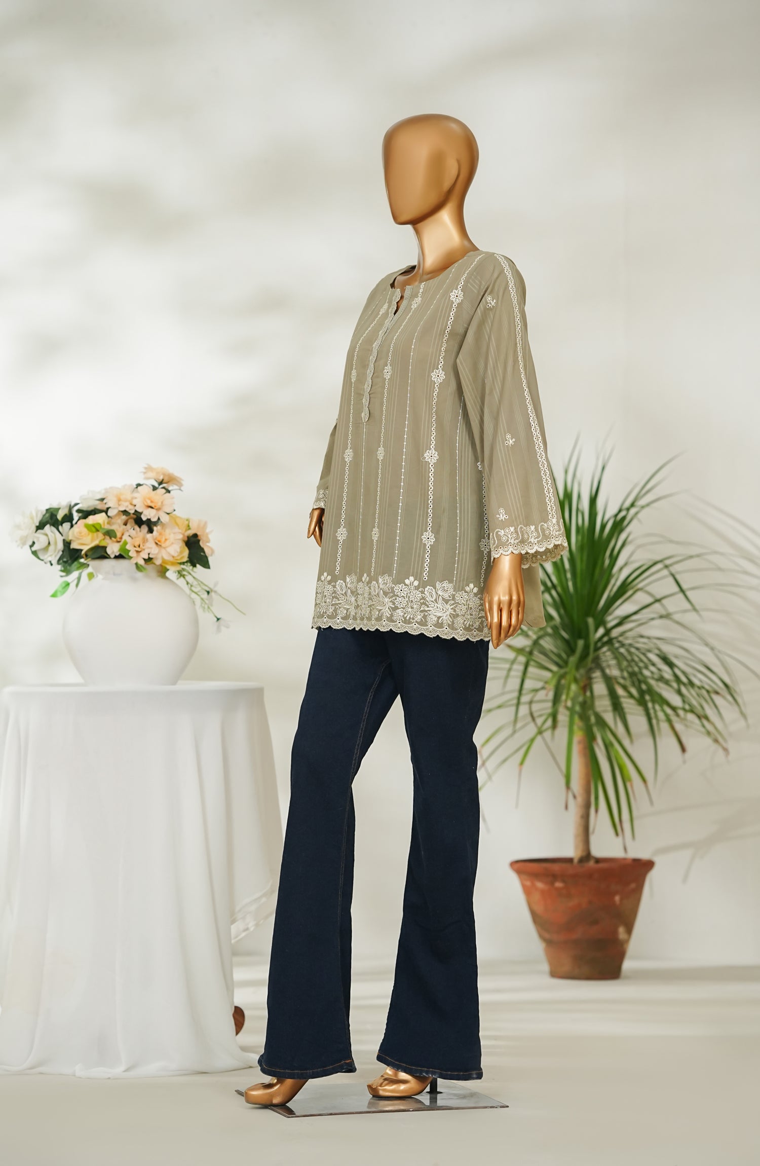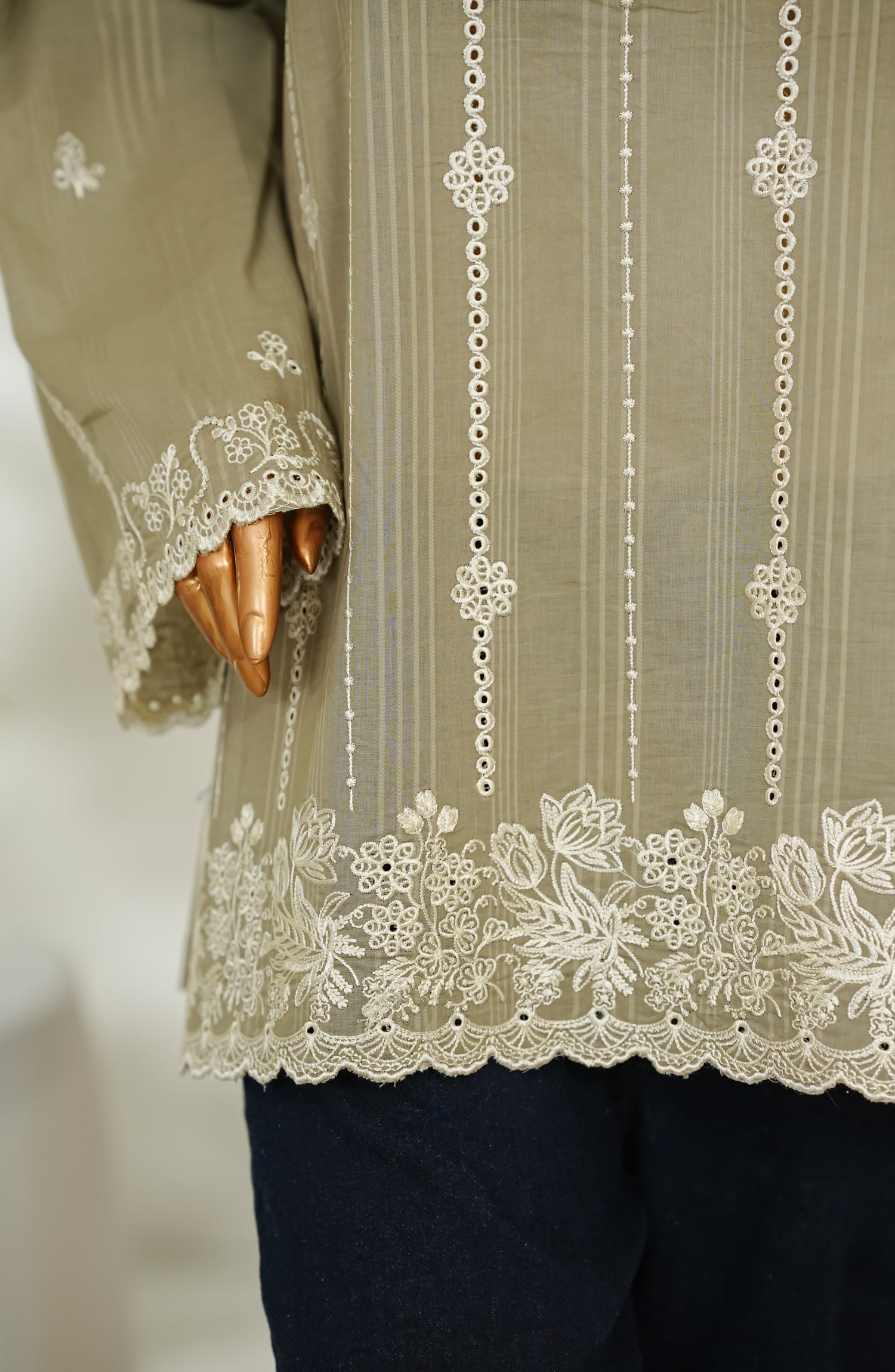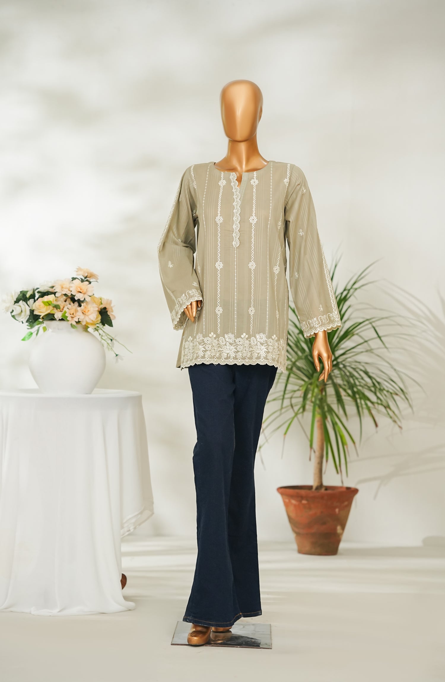 Stitched Dobby Cambric Slub Top with Embroidery