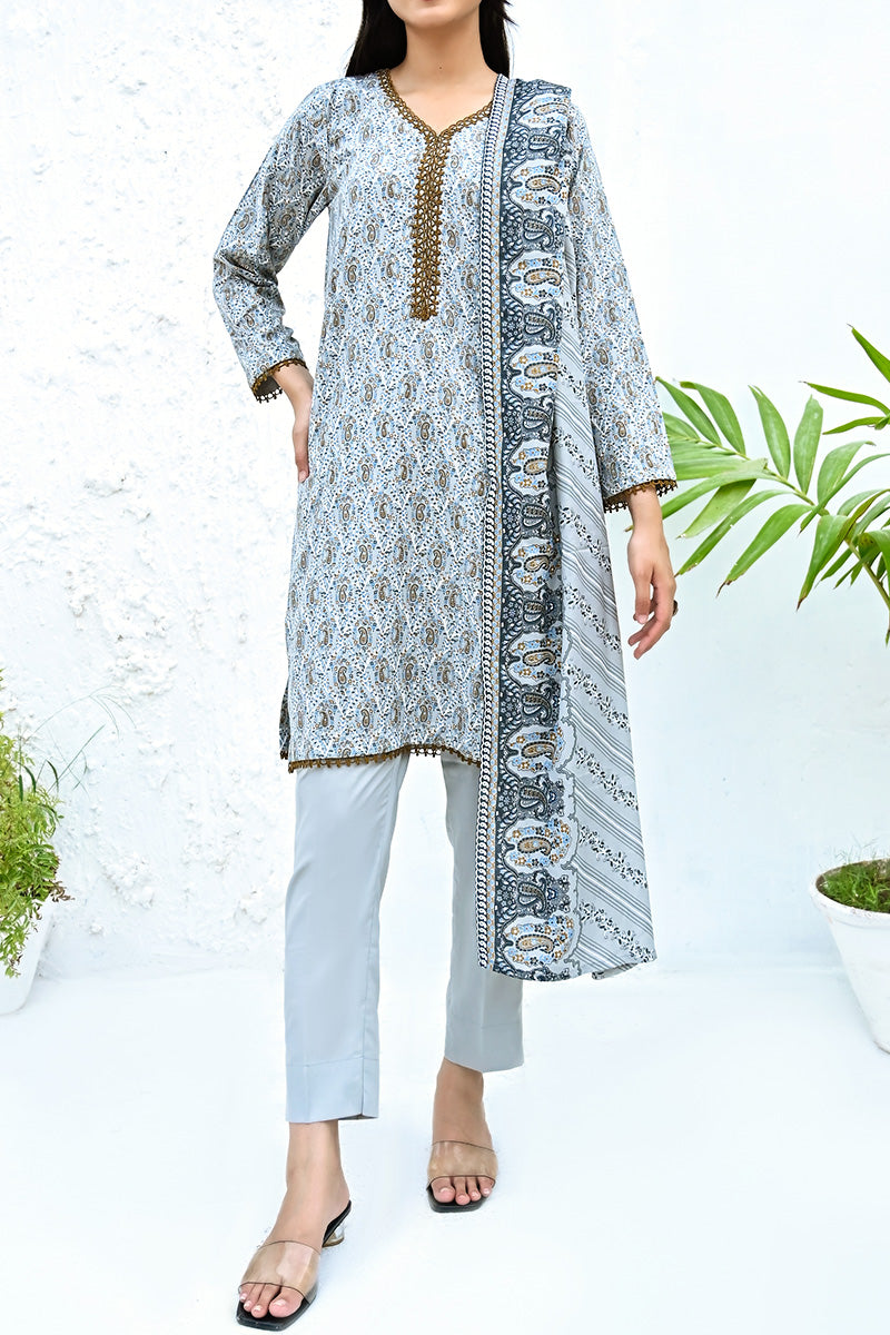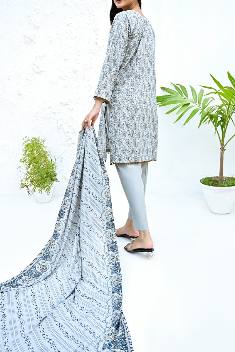 Amna Khadija Embroidered Crinkle Chiffon Unstitched 3 Piece Suit - D-04 - AM25LXC - Grey - Formals Collection