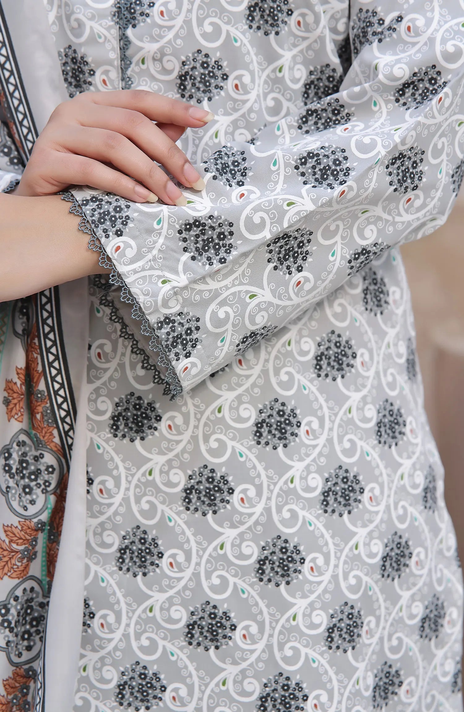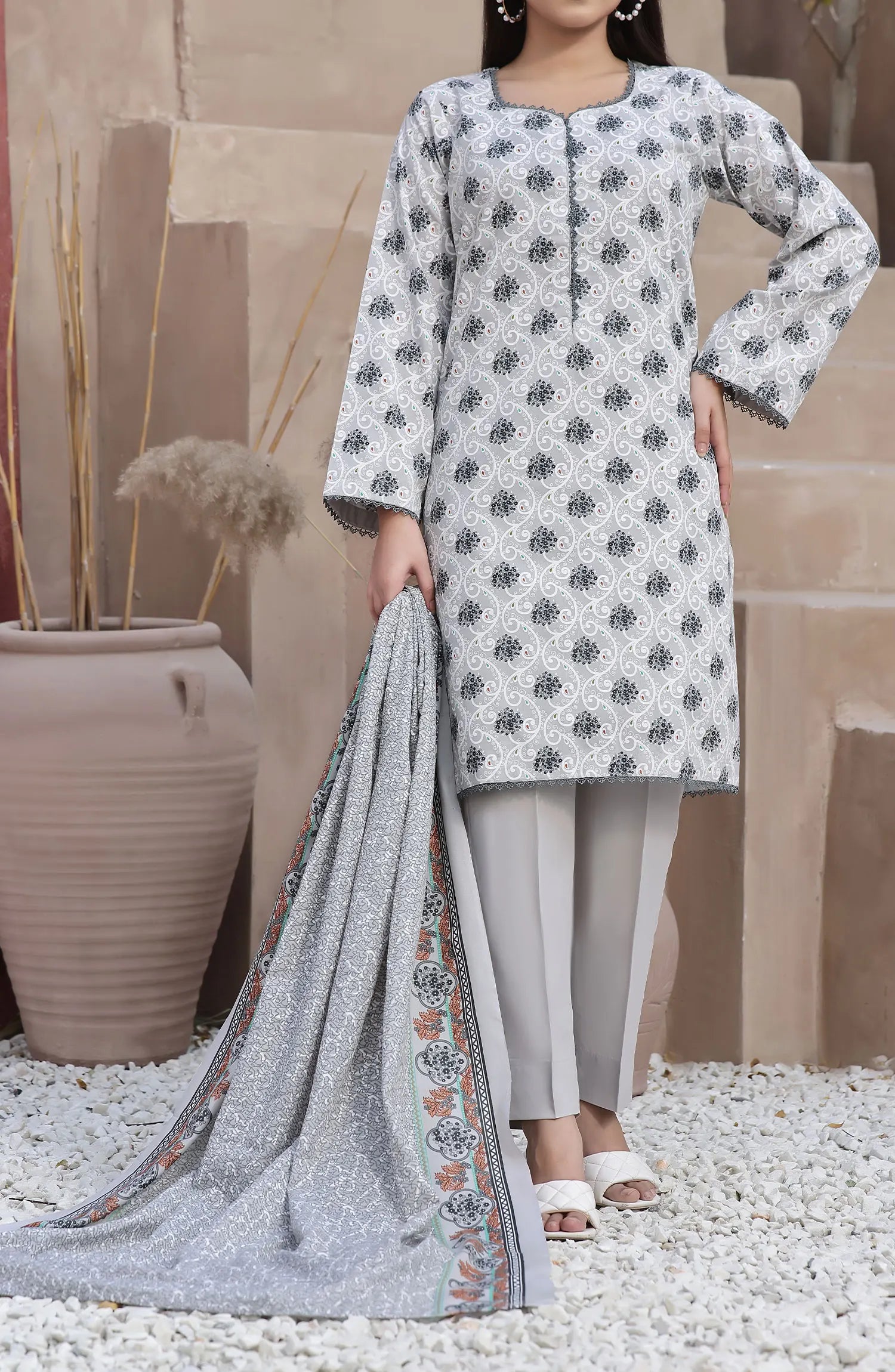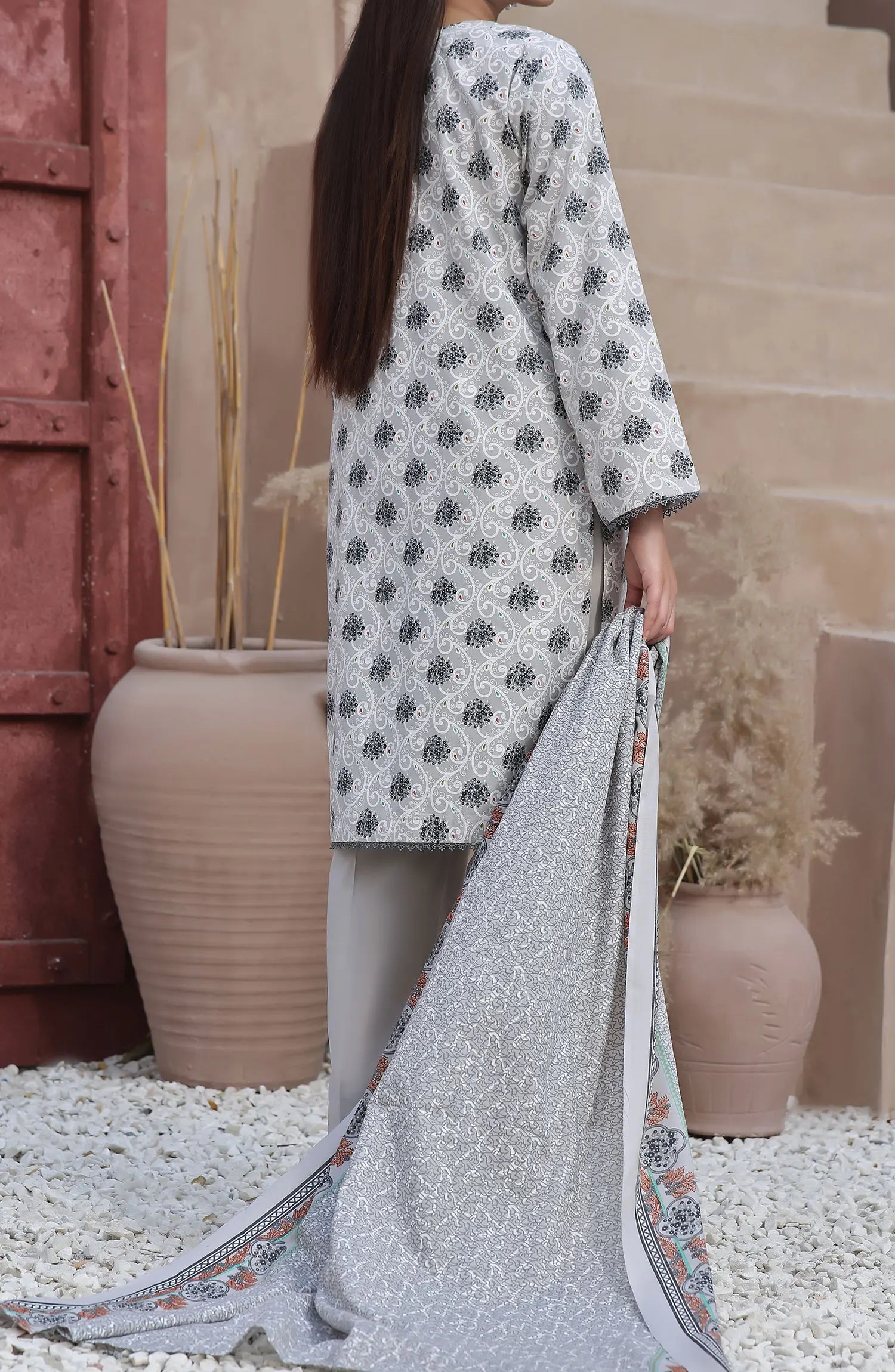 Amna Khadija Wrinkle Free Print Collection Vol 20 has been styled in the image for photography and illustrative purposes.
