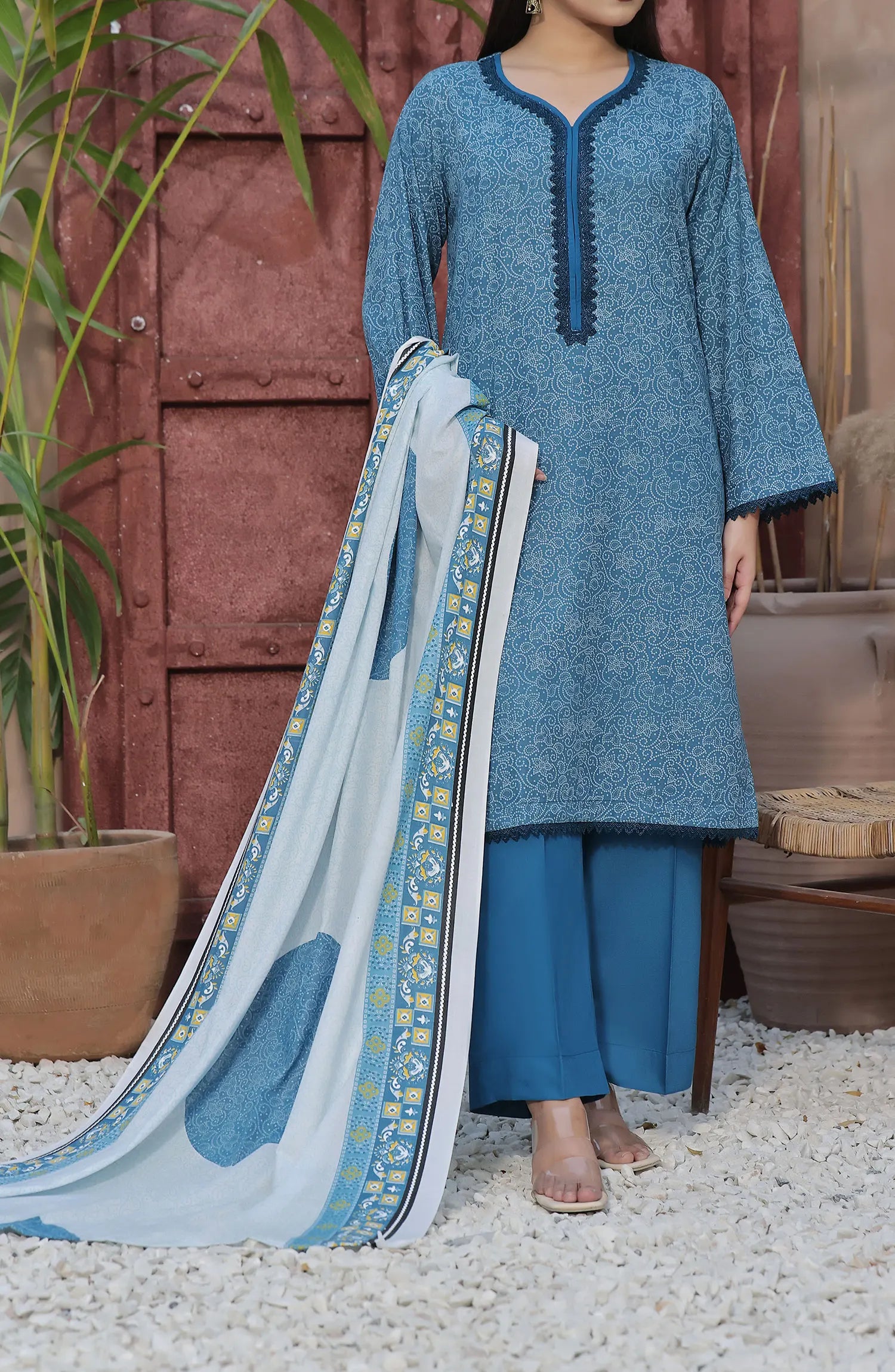 Rua by Casual Lite Embroidered Premium Linen Stitched 3 Piece Suit - D-07 Teal Mirage - CL25RU - Teal - Winter Collection