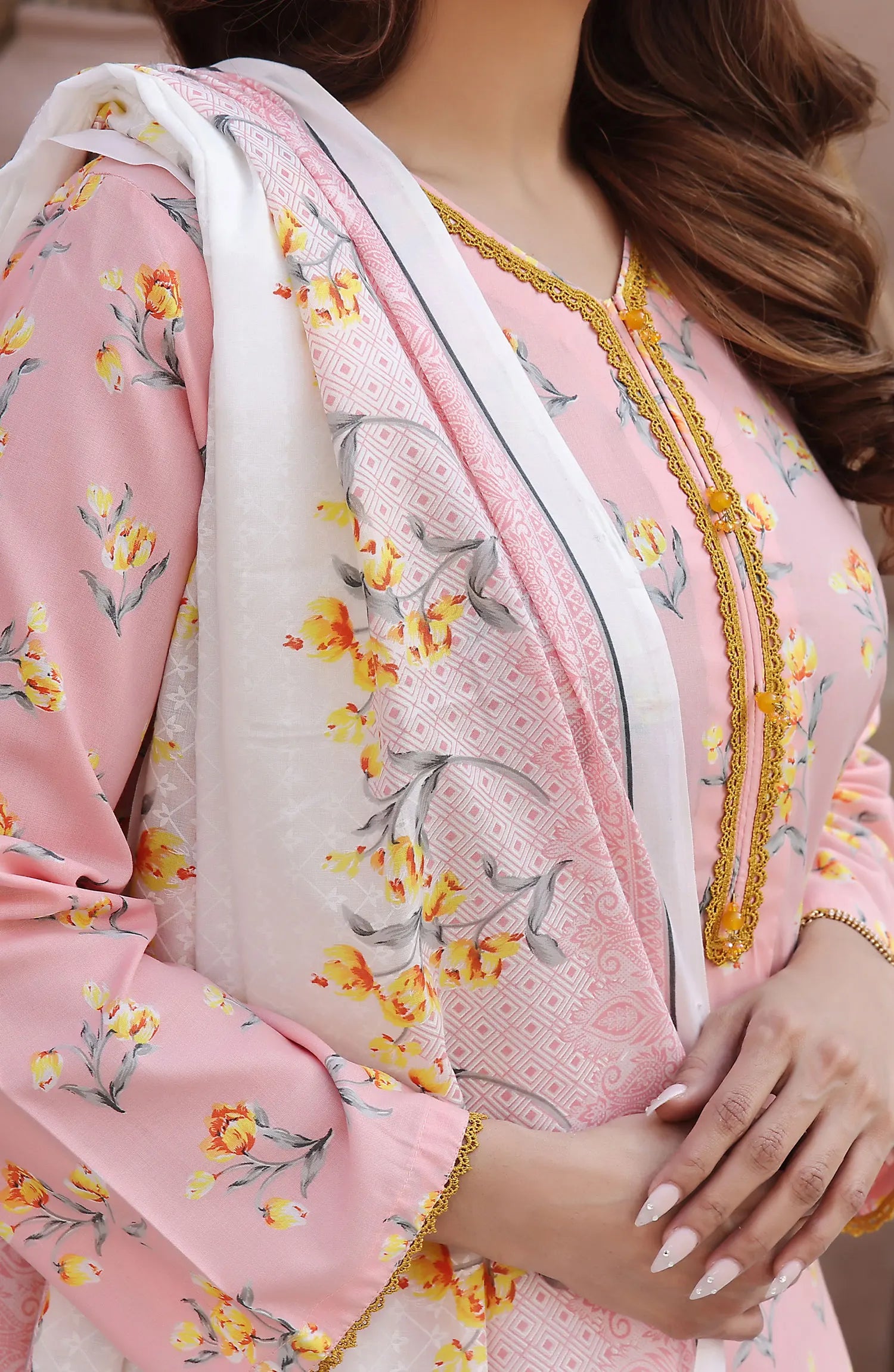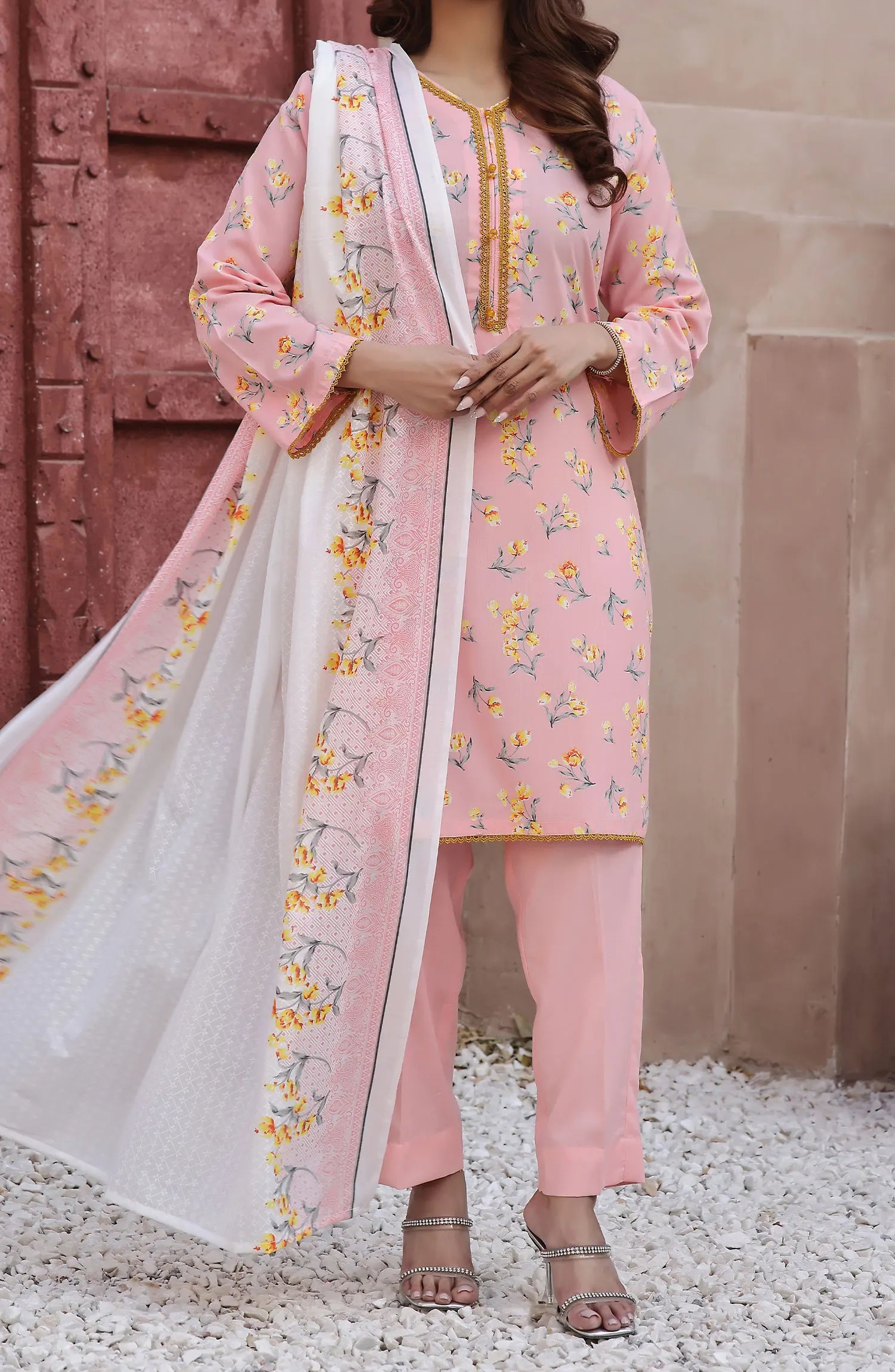 Amna Khadija Embroidered Crinkle Chiffon Unstitched 3 Piece Suit - D-07 - AM25LXC - Pink - Formals Collection