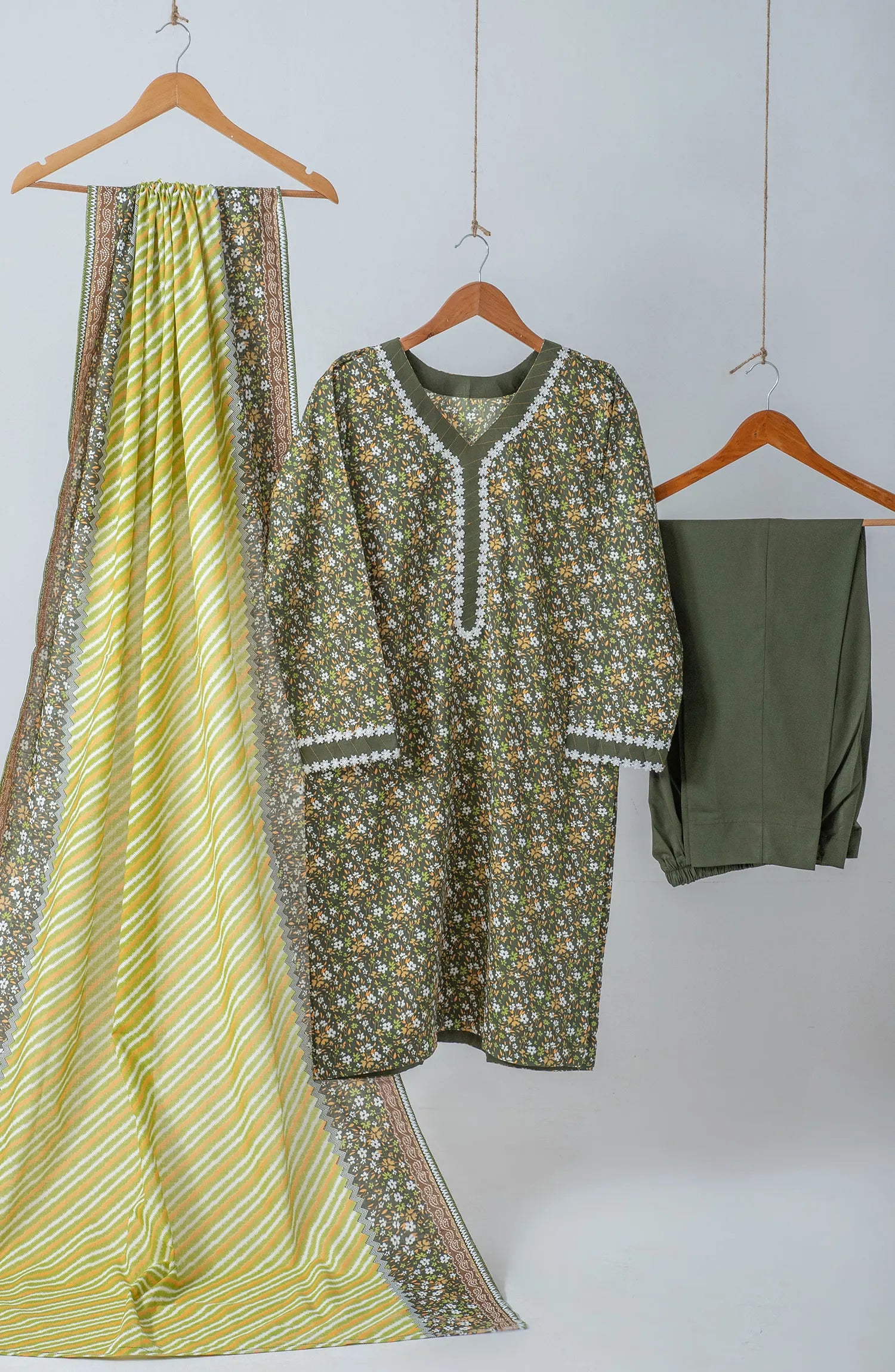 Amna Khadija Embroidered Crinkle Chiffon Unstitched 3 Piece Suit - D-02 - AM25LXC - Green - Formals Collection