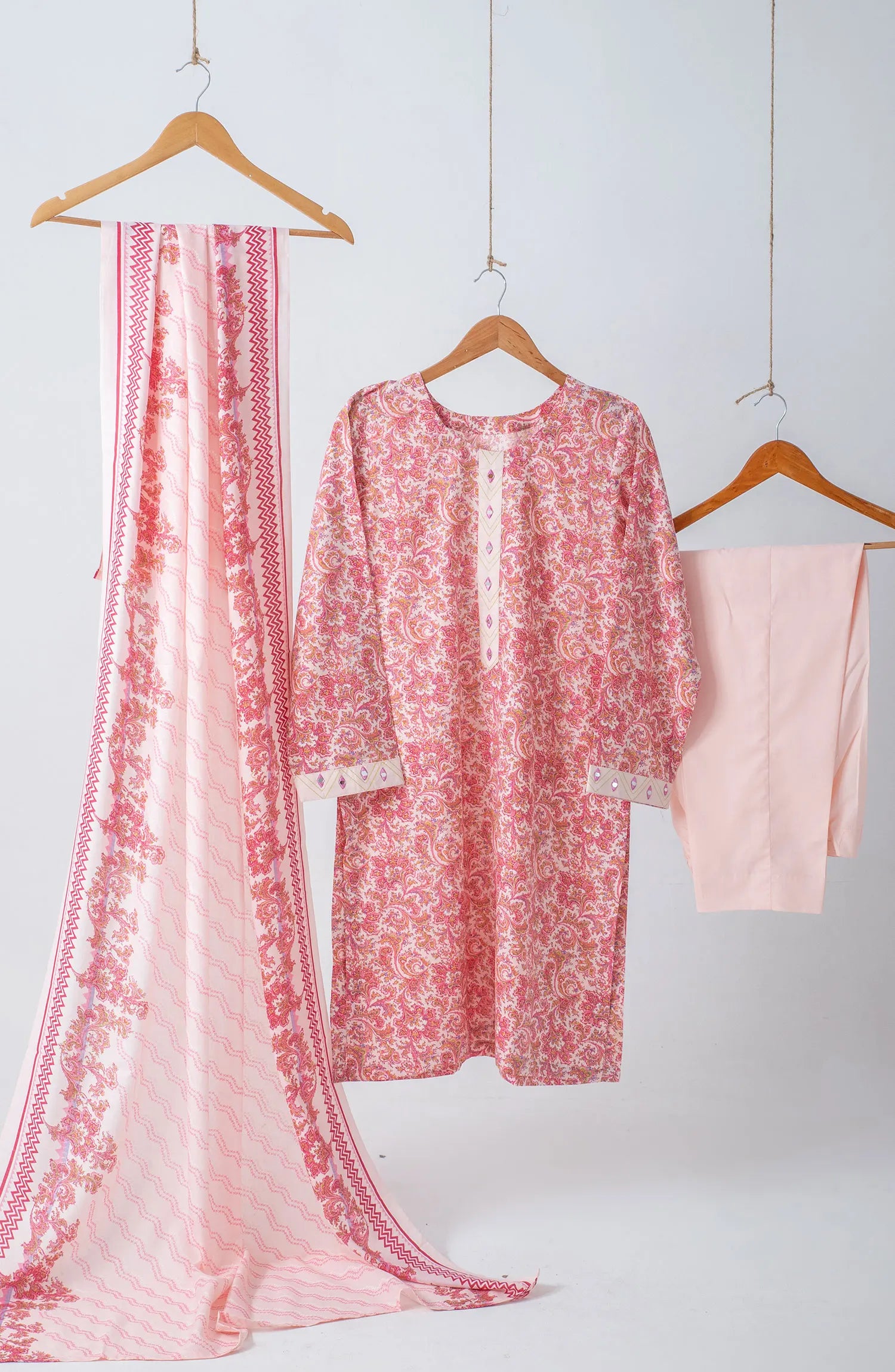 Amna Khadija Embroidered Crinkle Chiffon Unstitched 3 Piece Suit - D-07 - AM25LXC - Pink - Formals Collection