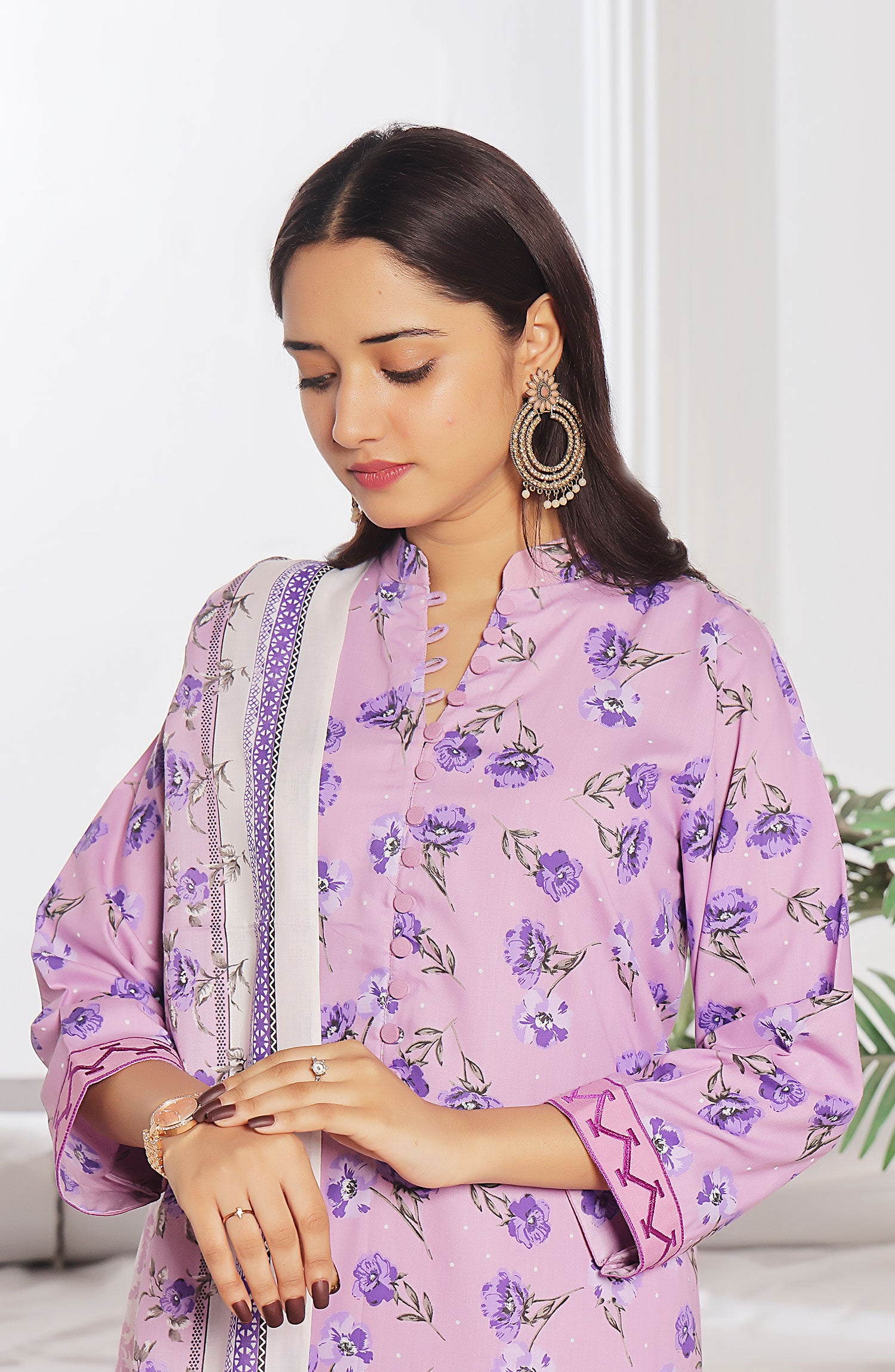 Modest Chiffon Stitched 3 Piece Suit - 9425-Prpl Purple Delight - MOD25PRF - Purple - Festive Girls Collection