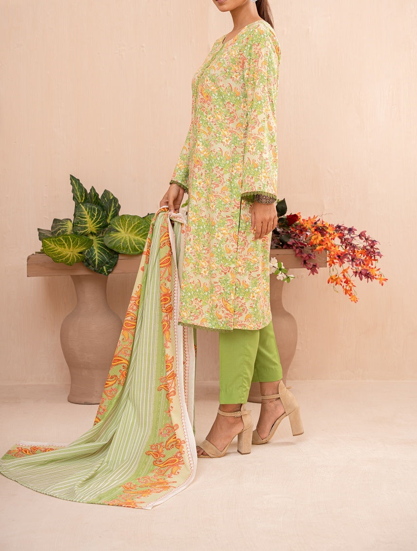 Modest Embroidered Khaddar Stitched 3 Piece Suit - 10040-Pnk - MOD25WNT - Pink - Winter Collection