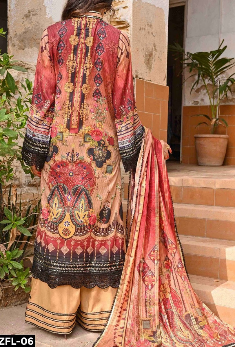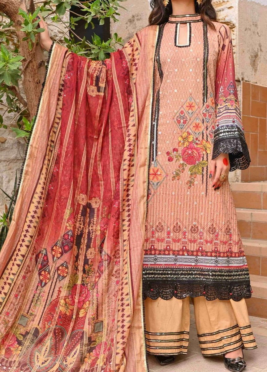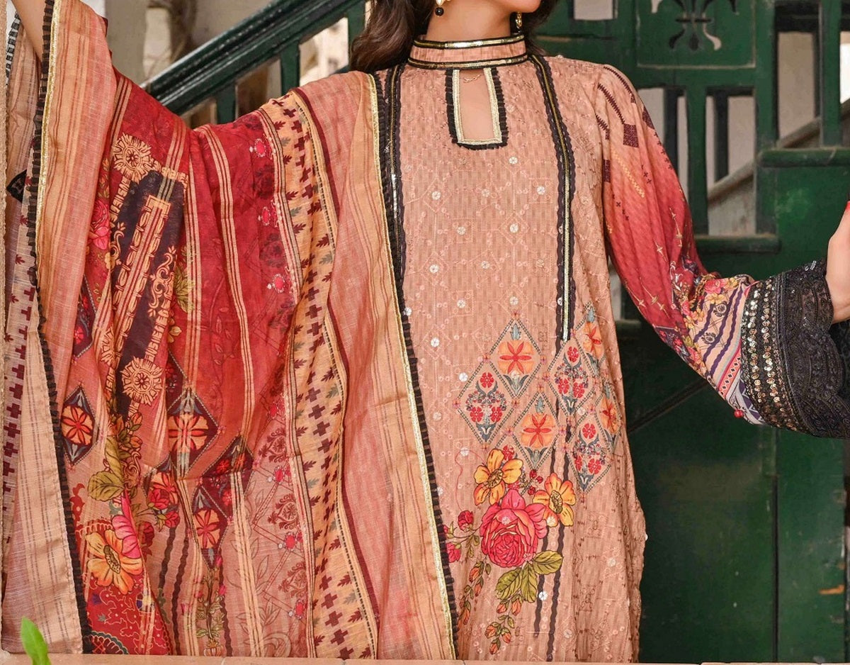 -Digital Print Embroidered Lawn Fabric For Shirt With Sequence Embroidered Work