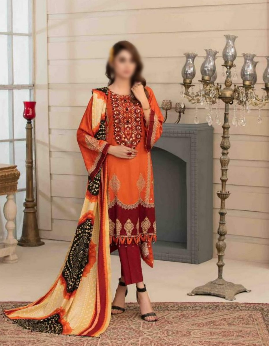 Unstitched Printed and Embroidered Linen fabric for shirt