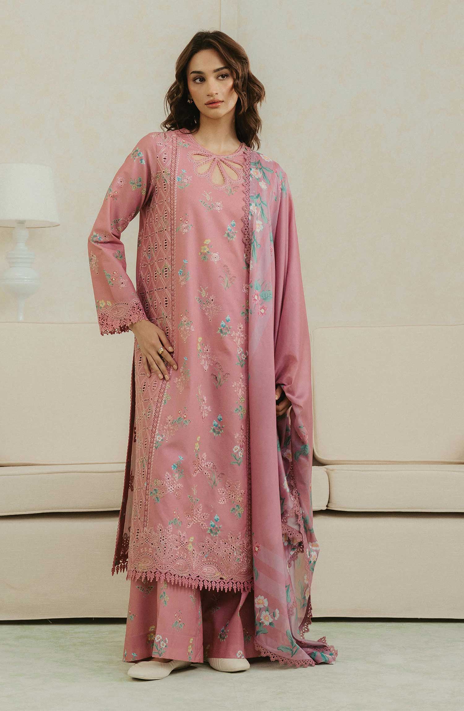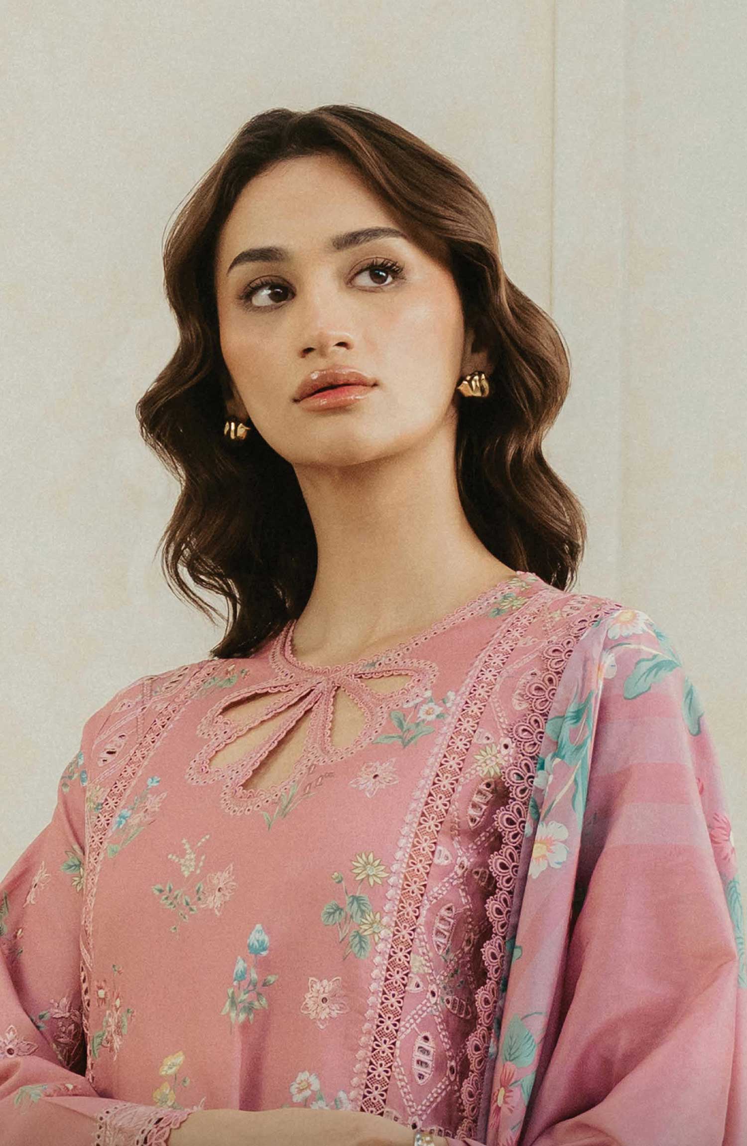 Home Amore by Ayzel Embroidered Lawn Unstitched 3 Piece Suit - AL-25-V4-04 Grace - AY25AS - Pink - Suumer Collection