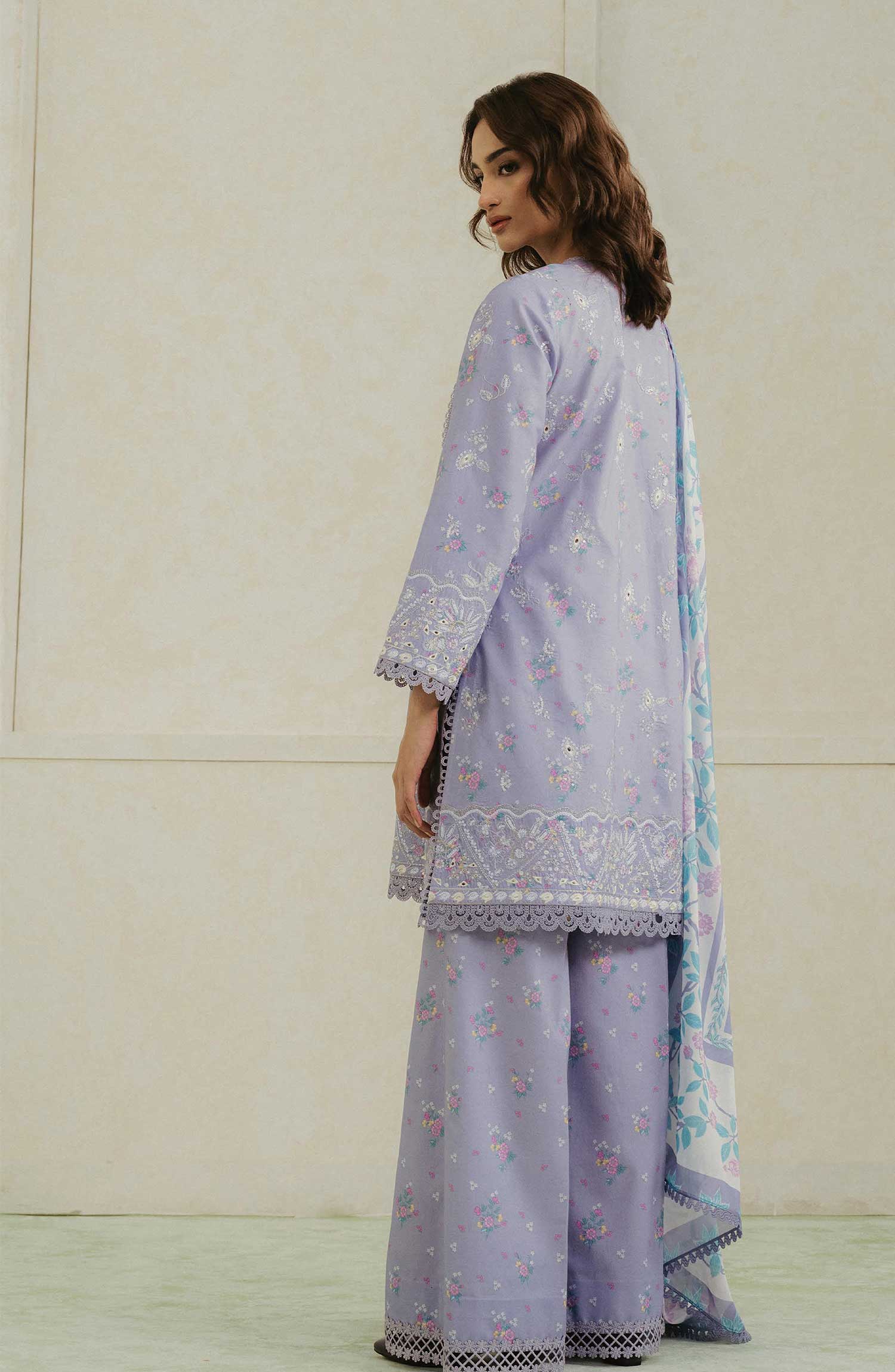 Home Amore by Ayzel Embroidered Lawn Unstitched 3 Piece Suit - AL-25-V4-05 Auburn - AY25AS - Lavender - Suumer Collection