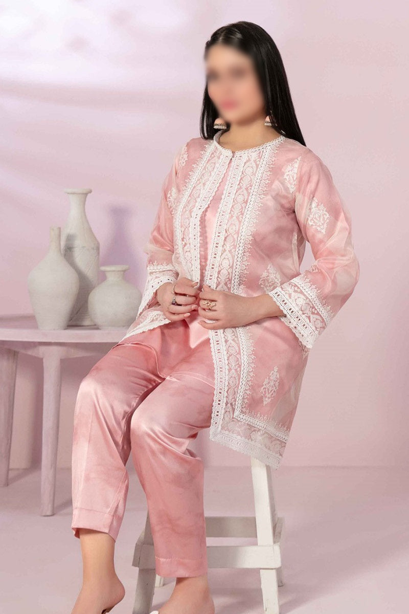 Stitched Embroidered Digital Printed Organza Shirt with Digital Printed Silk Inner