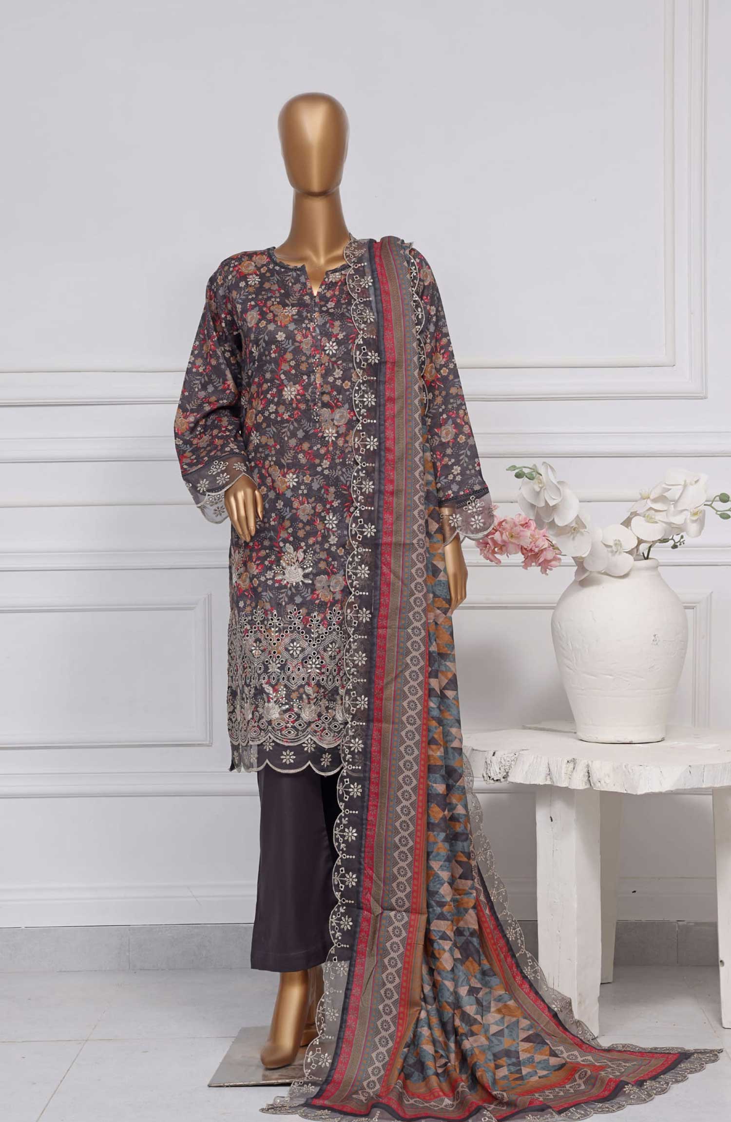 Home Amyrah by Sadabahar Embroidered Lawn Stitched 3 Piece Suit - D-03 - SD25AL - Dark Grey - Summer Collection
