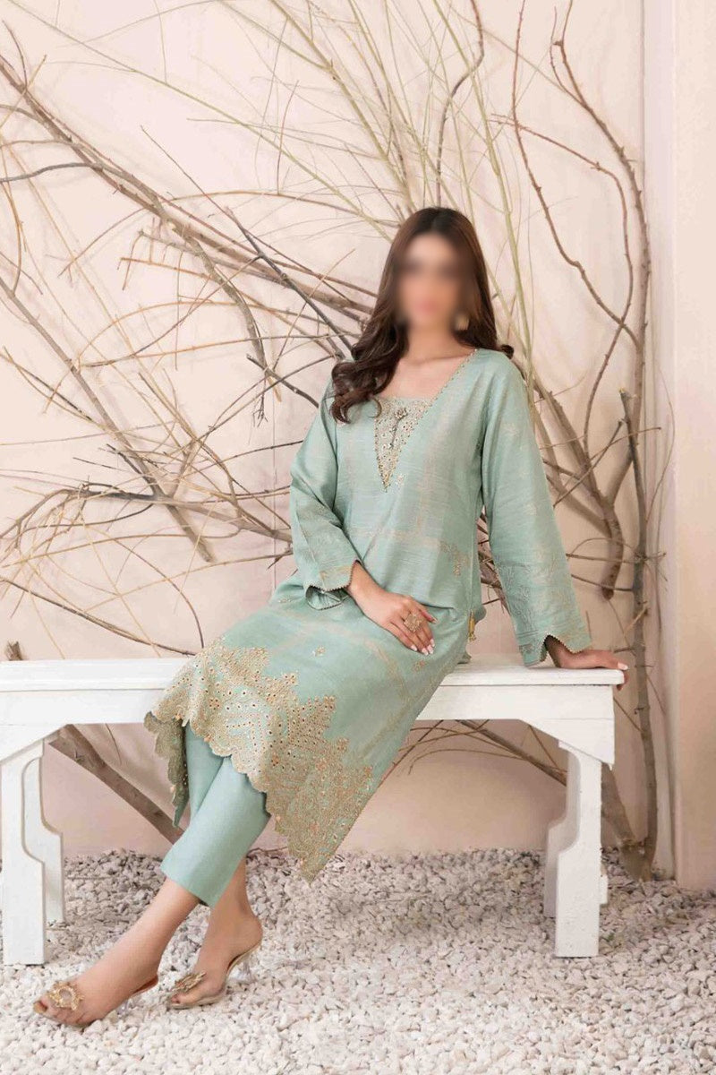 Anayel Embroidered Khaddar Banarsi 2pcs Collection has been styled in the image for photography and illustrative purposes.
