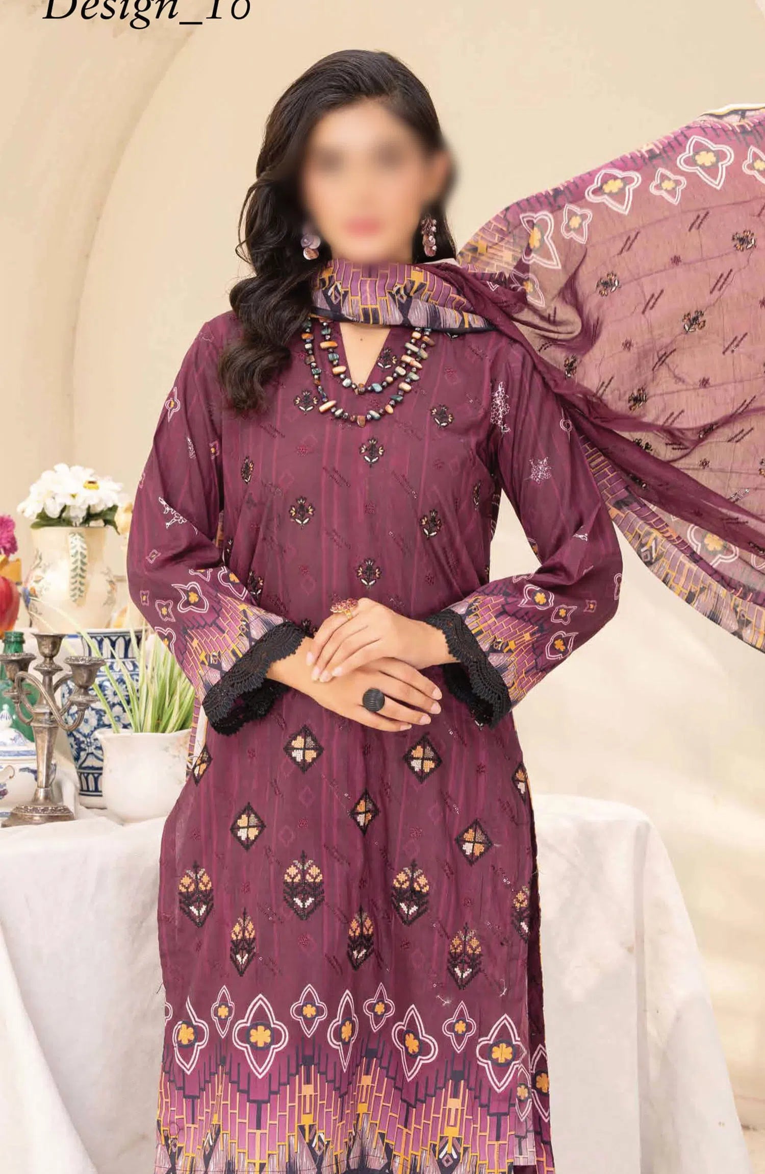 Andaaz Digital Printed and Embroidered Collection By Riaz Arts Chp 02 has been styled in the image for photography and illustrative purposes.