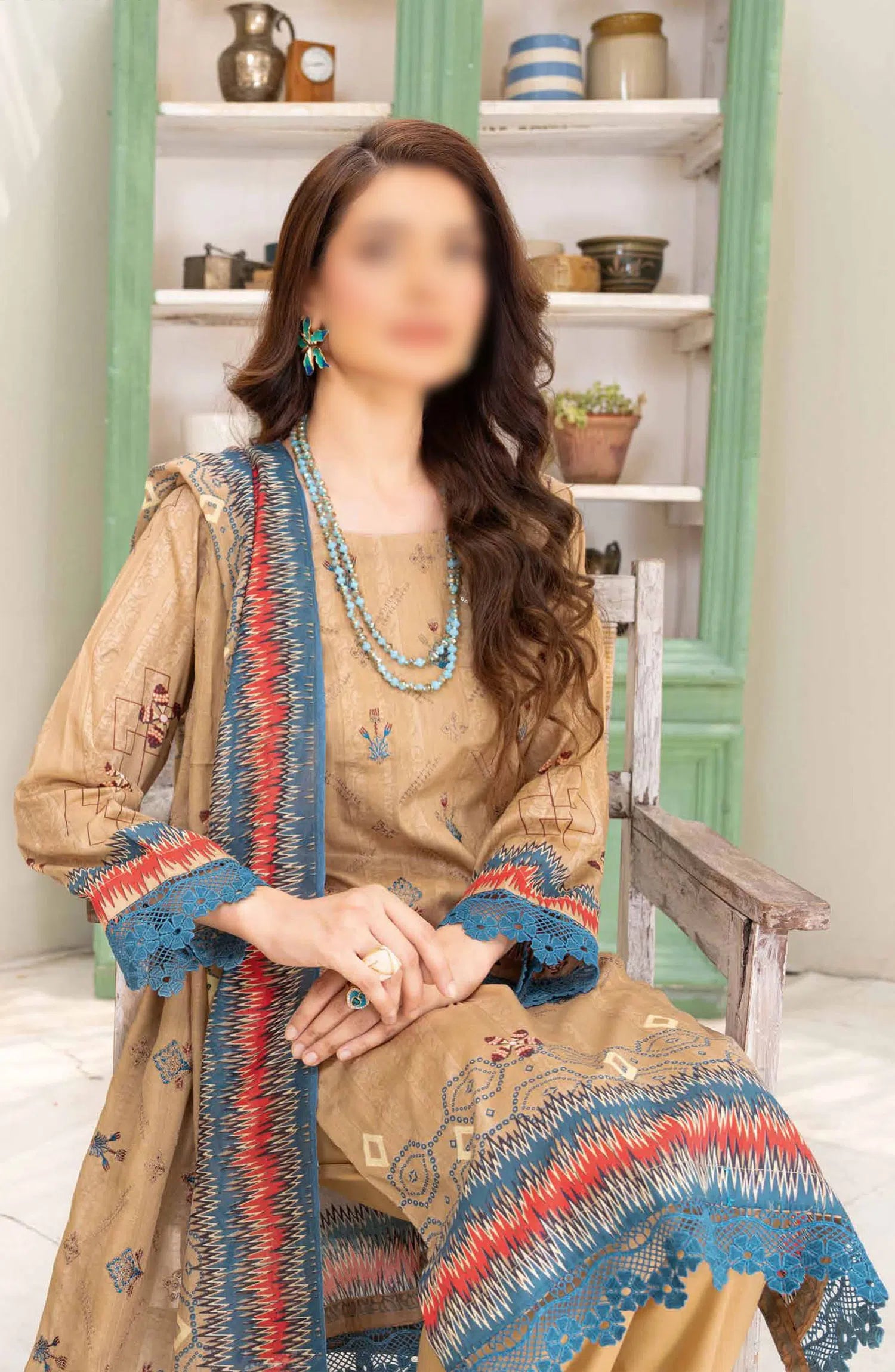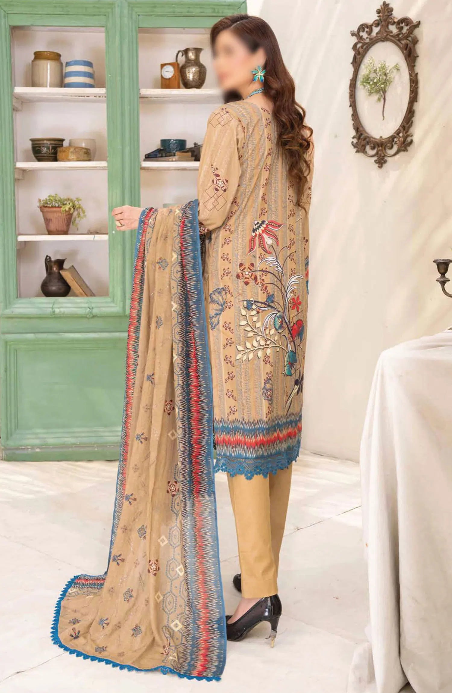 Andaaz Digital Printed and Embroidered Collection By Riaz Arts Chp 02 has been styled in the image for photography and illustrative purposes.