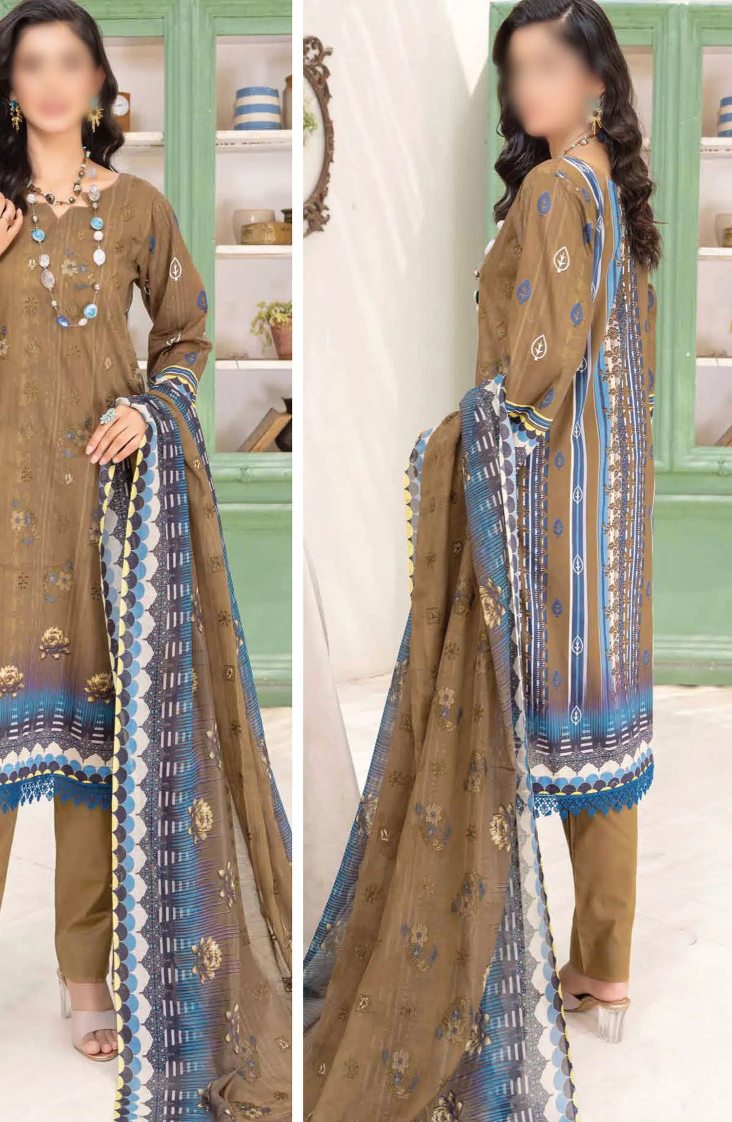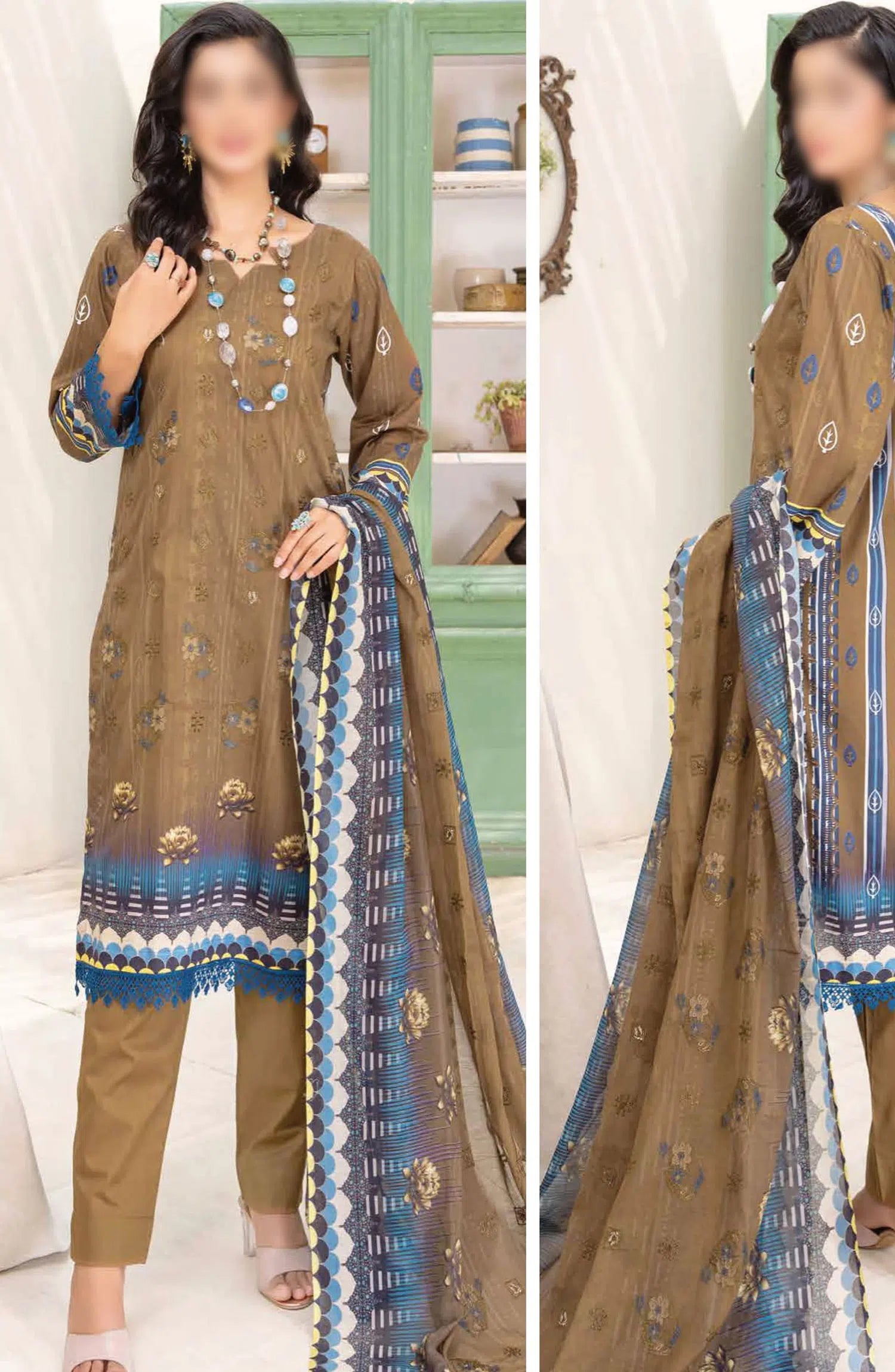 3 Piece Digital Printed and Embroidered Suit with Digital Print Embroidered Voile Dupatta.
