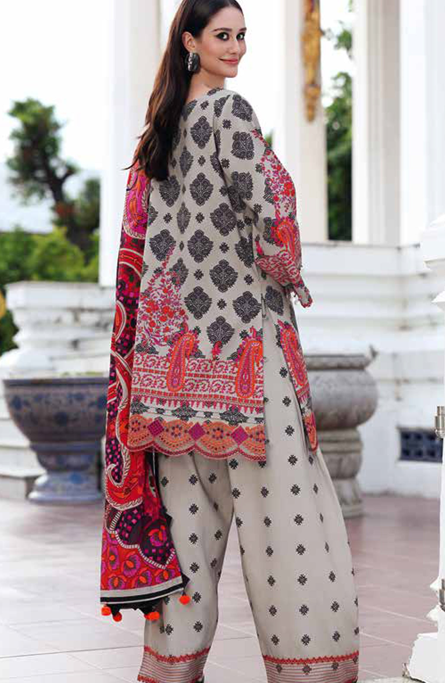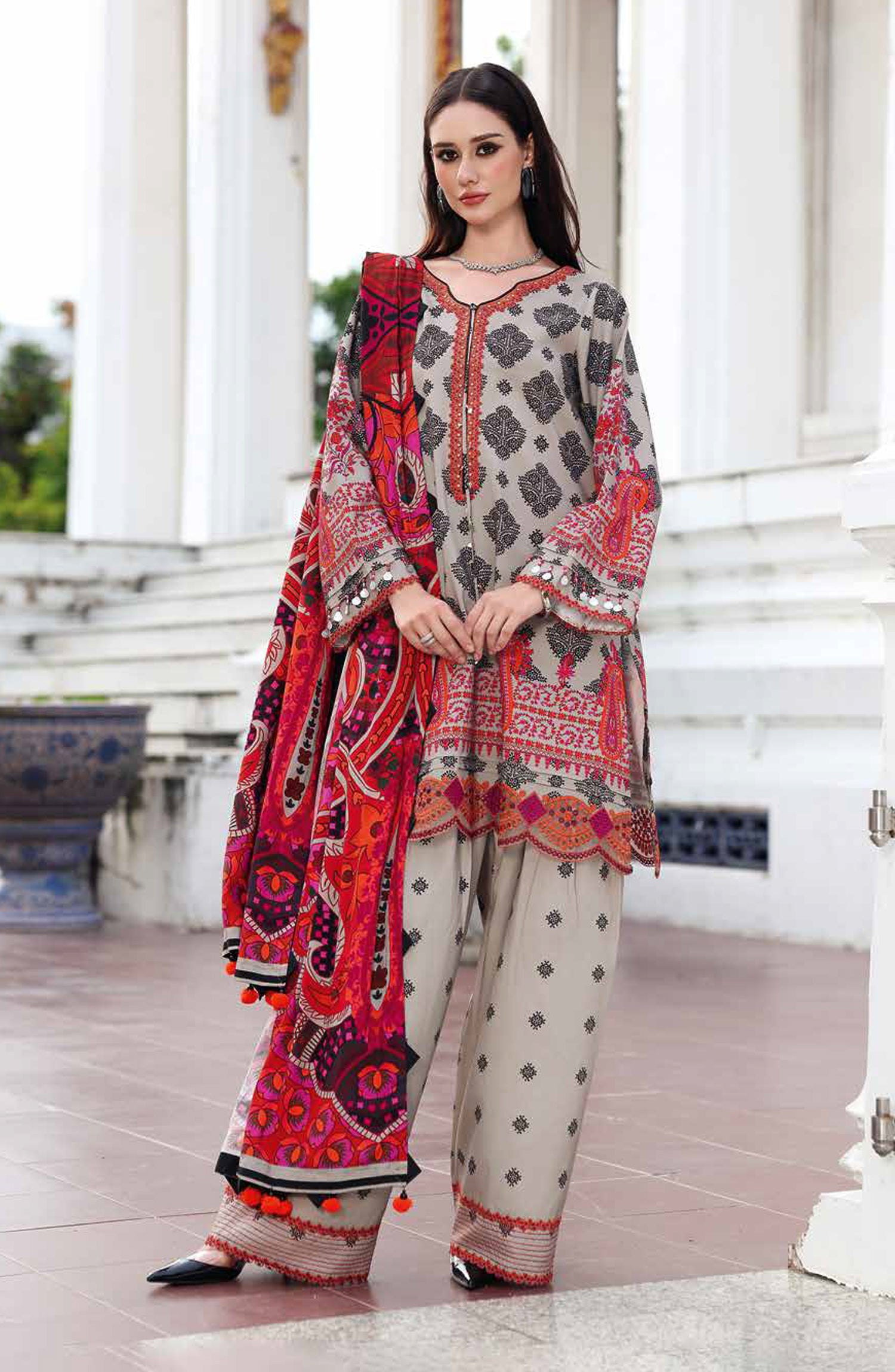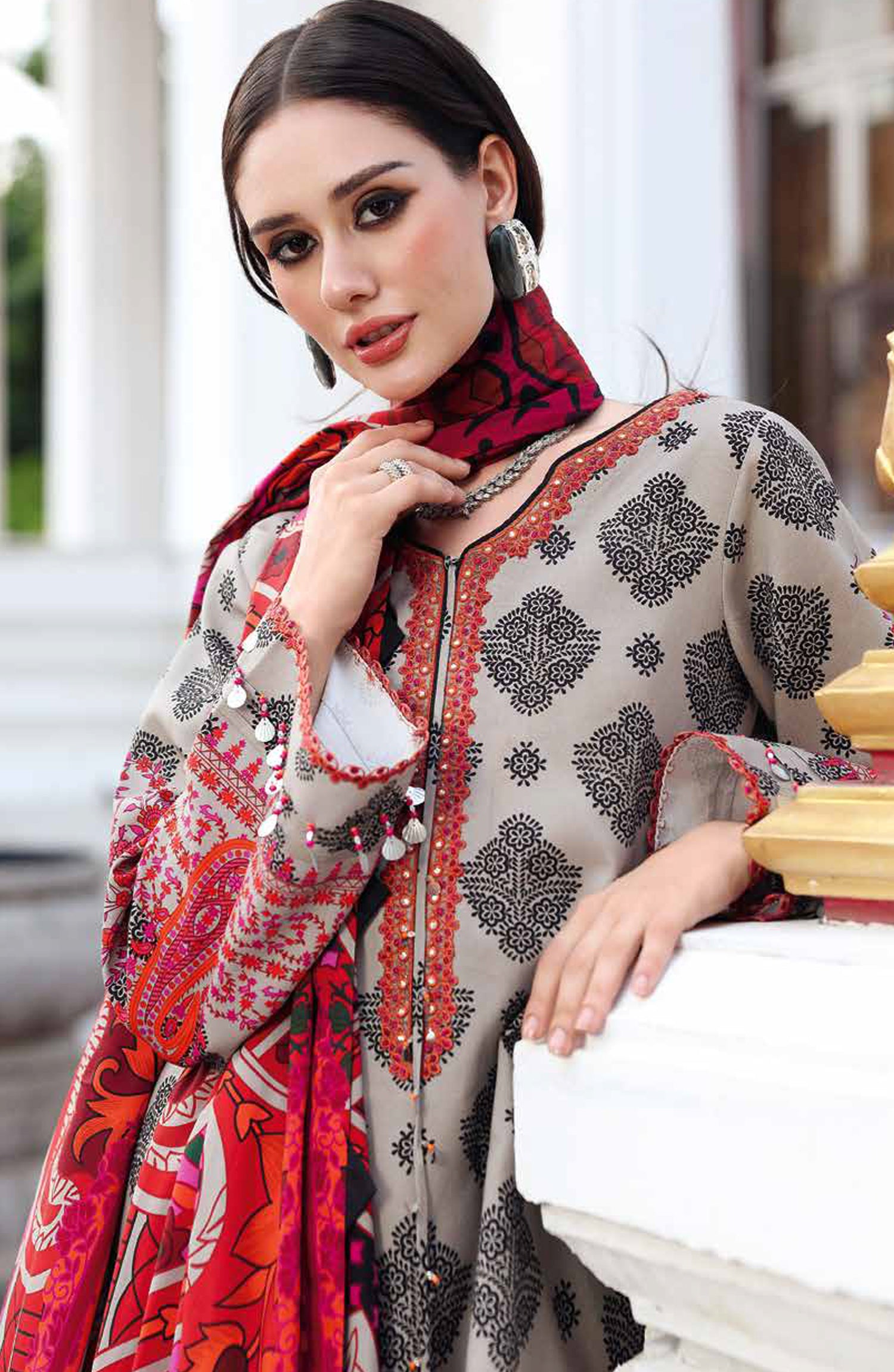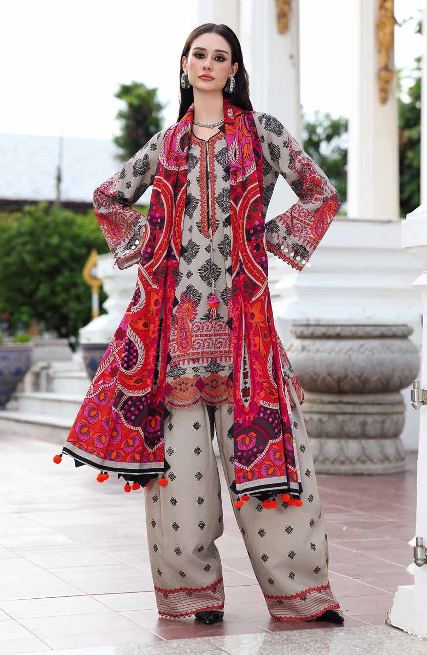 Printed and Embroidered Linen Unstitched 3 Piece Suit with Embroidered Printed Irish Linen Shawl