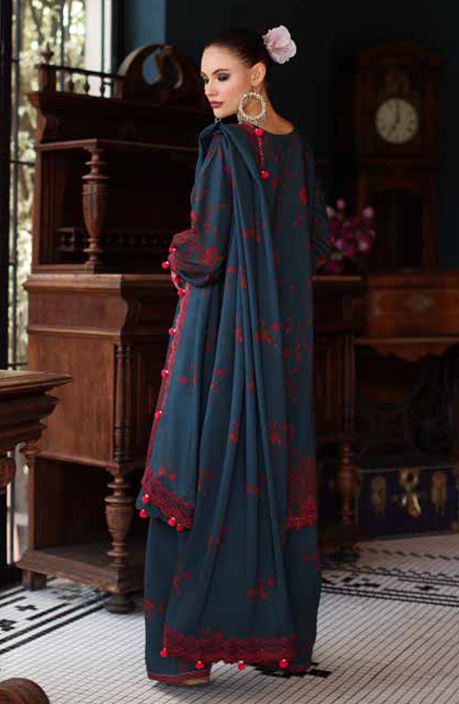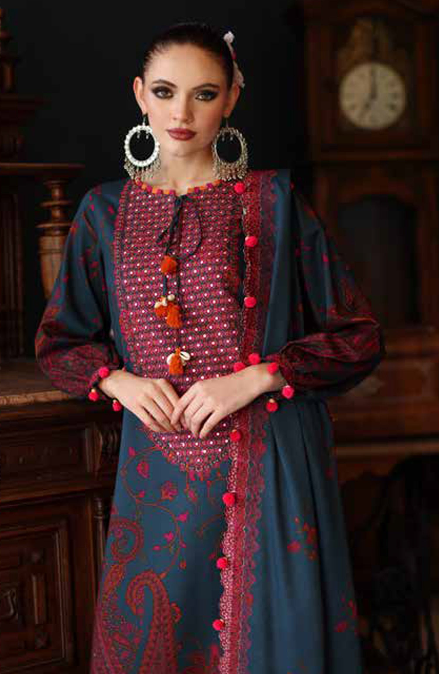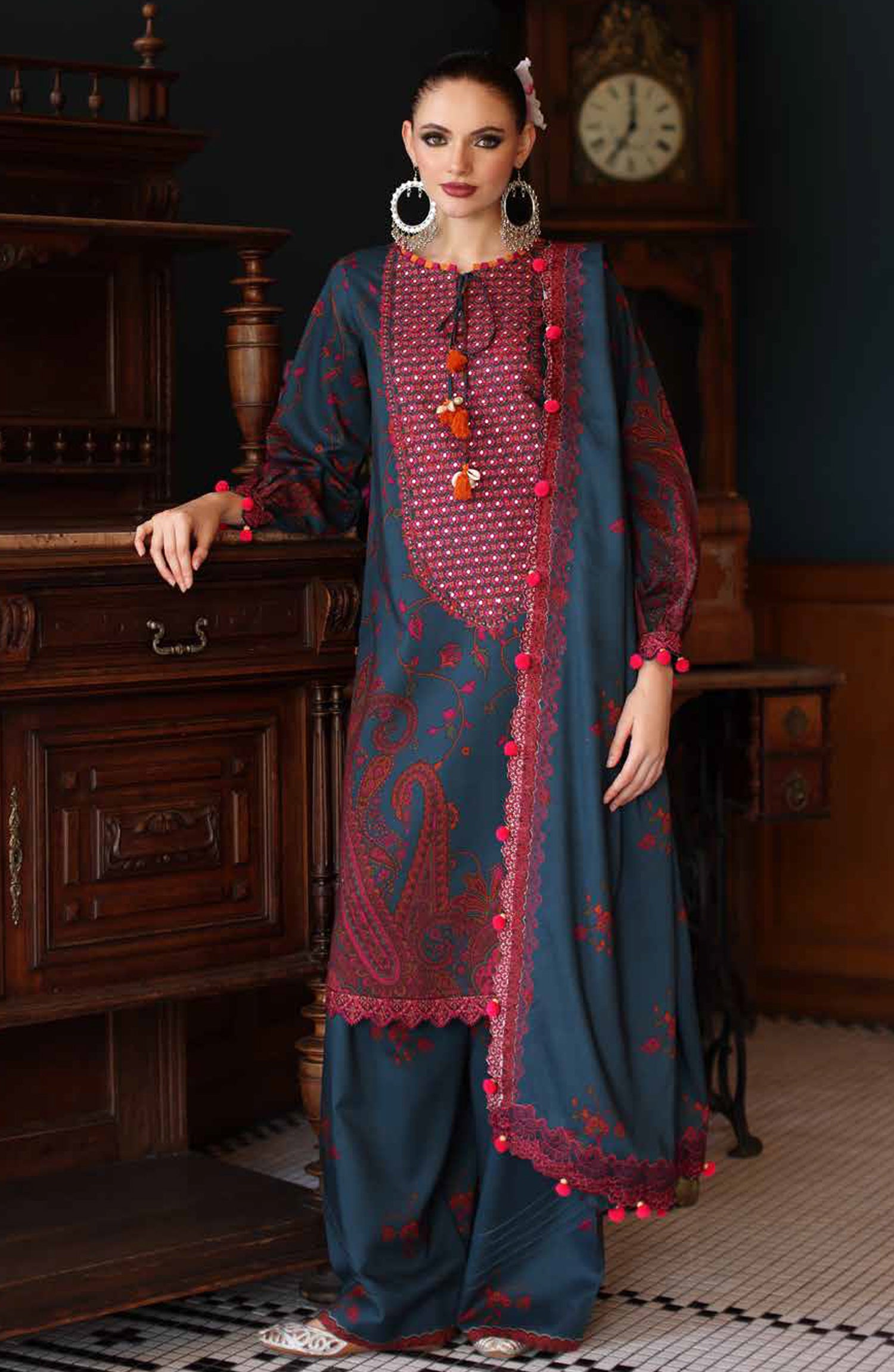 Printed and Embroidered Linen Unstitched 3 Piece Suit with Embroidered Printed Irish Linen Shawl