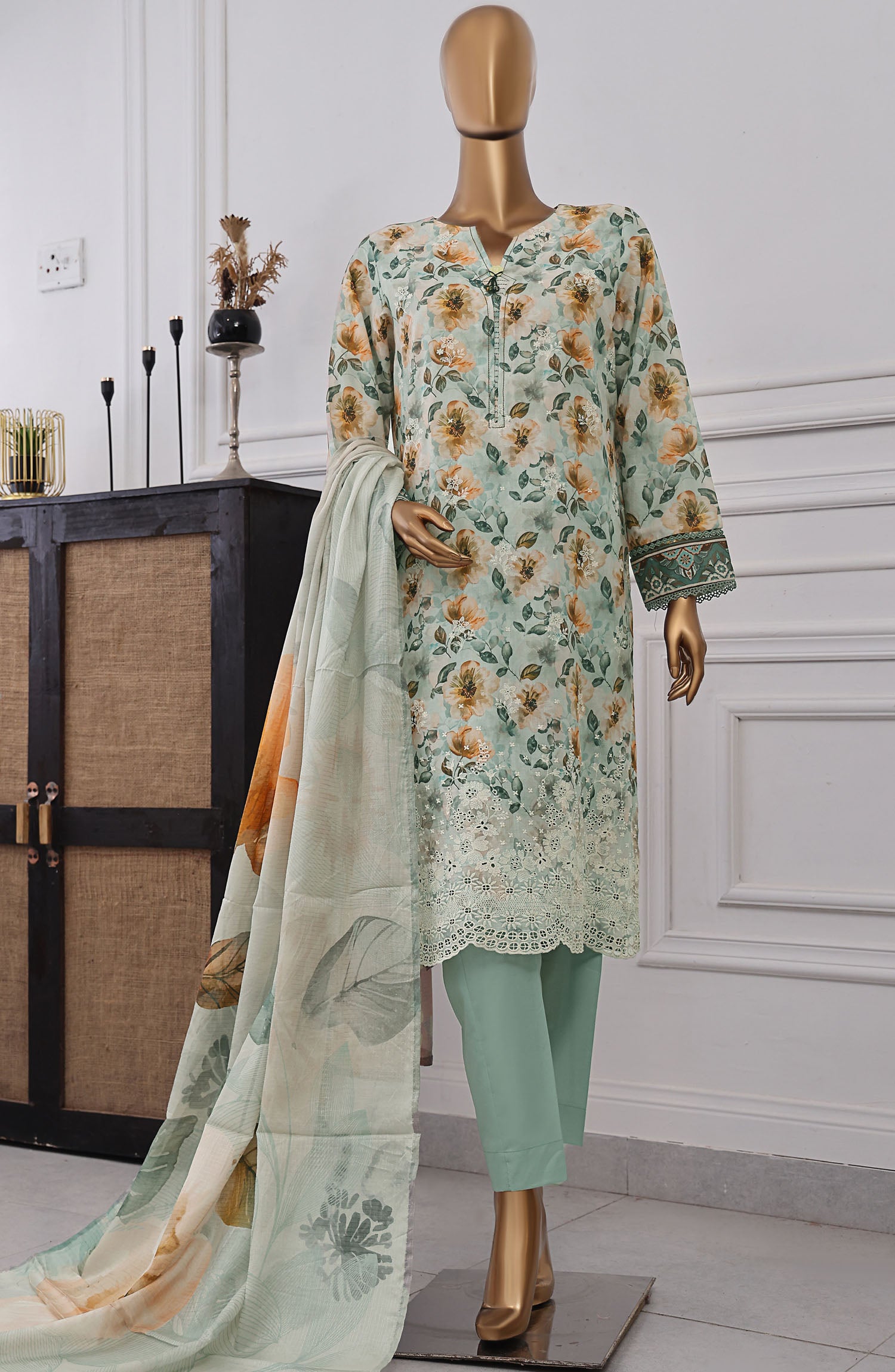 Home Anmol by HZ Textile Chikankari Lawn Unstitched 3 Piece Suit - ACE-1077 - HZ25ACE - Green - Summer Collection