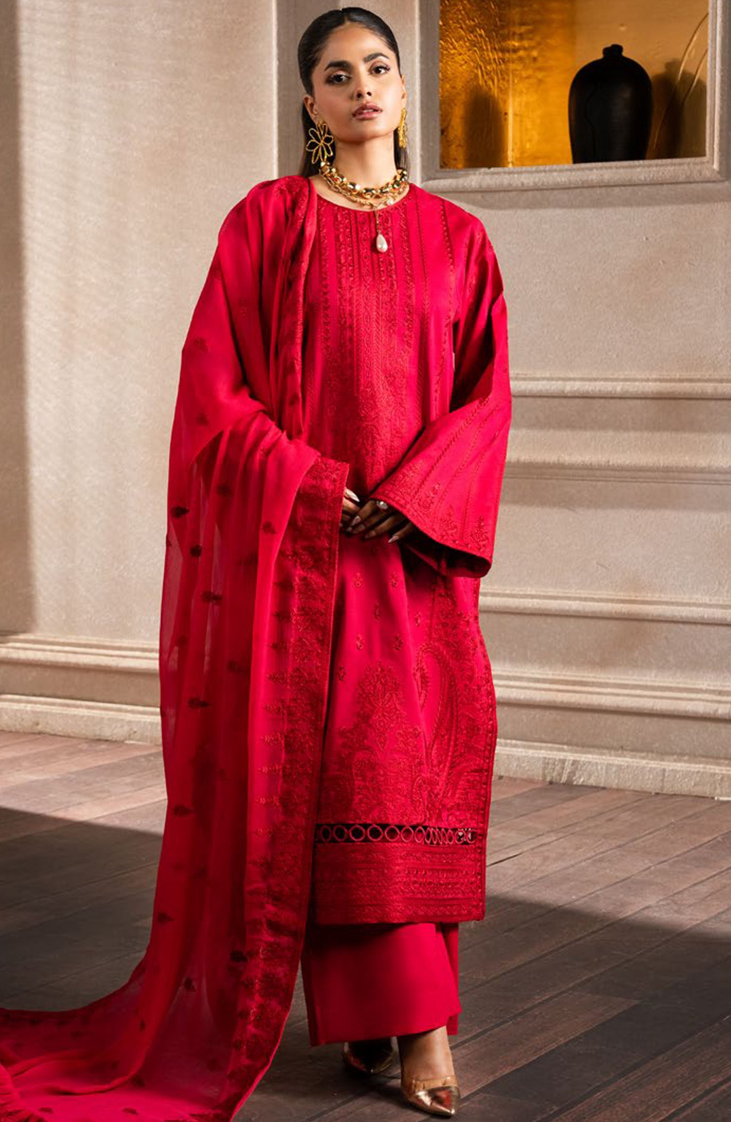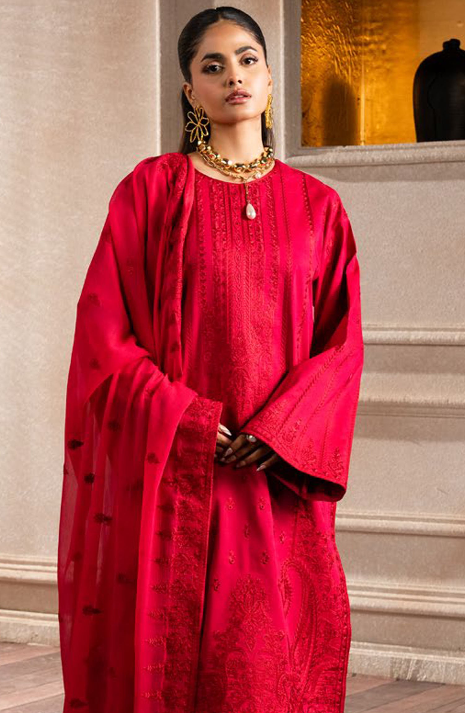 Aqs by Freesia Embroidered Lawn Unstitched 3 Piece Suit - FS-50123 Adria - MNM25AQS - Red - Summer Collection