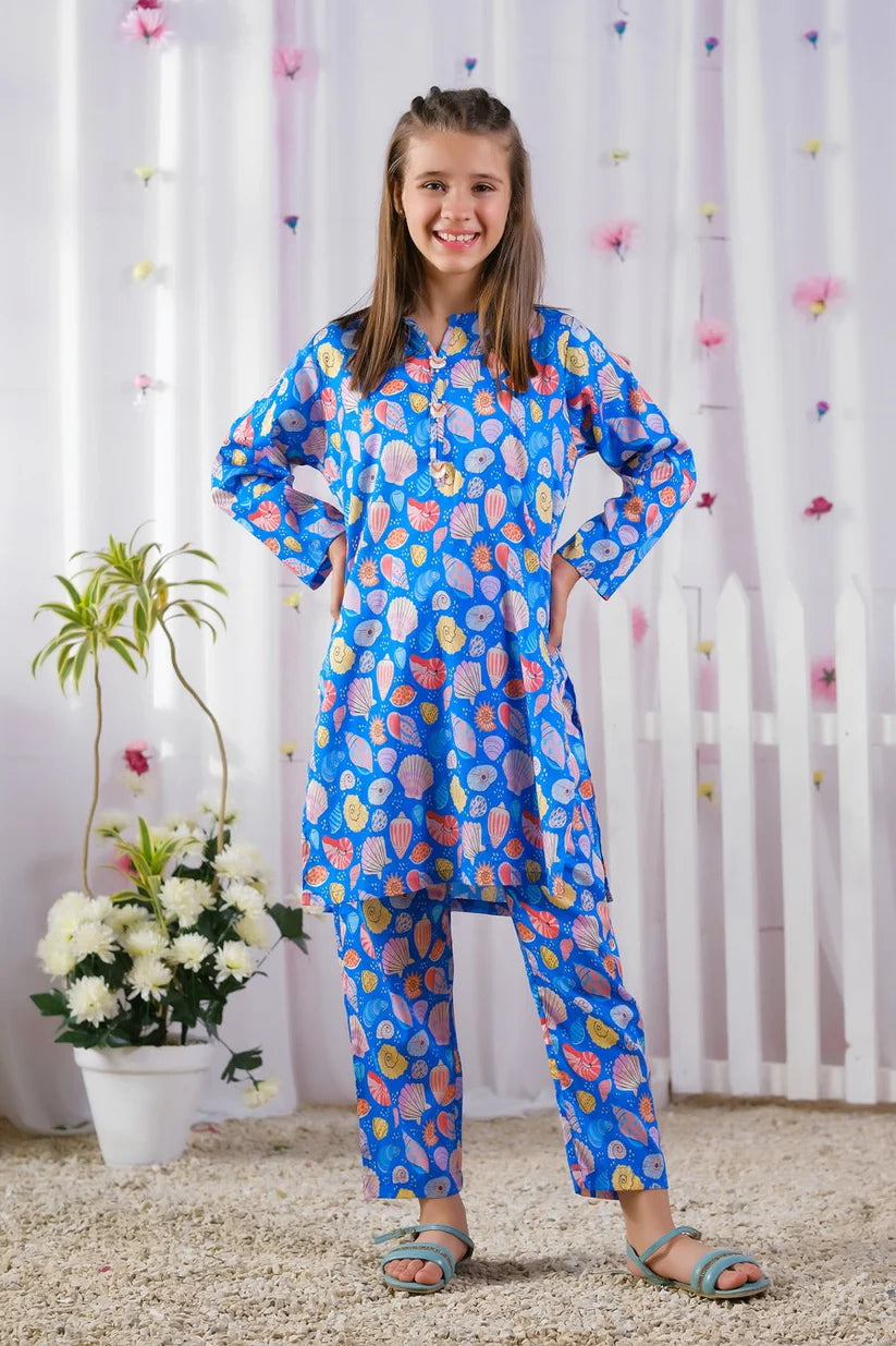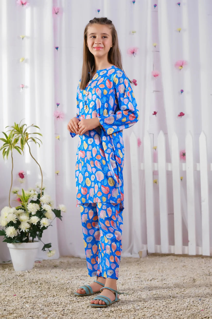 Dive into a world of maritime magic with our captivating creation, the "AquaShell" ensemble. This delightful outfit features a mesmerizing shell print in shades of blue, reminiscent of the ocean's depths. Each shell intricately detailed, creating a whimsical pattern that transports you to the heart of the sea. Adorned with buttons along the neckline, the "AquaShell" exudes a timeless charm that captures the essence of coastal elegance. Whether exploring tide pools or attending a seaside gathering, this outfit is sure to make a splash. Embrace your inner mermaid and let the "AquaShell" inspire your oceanic adventures with its enchanting allure.