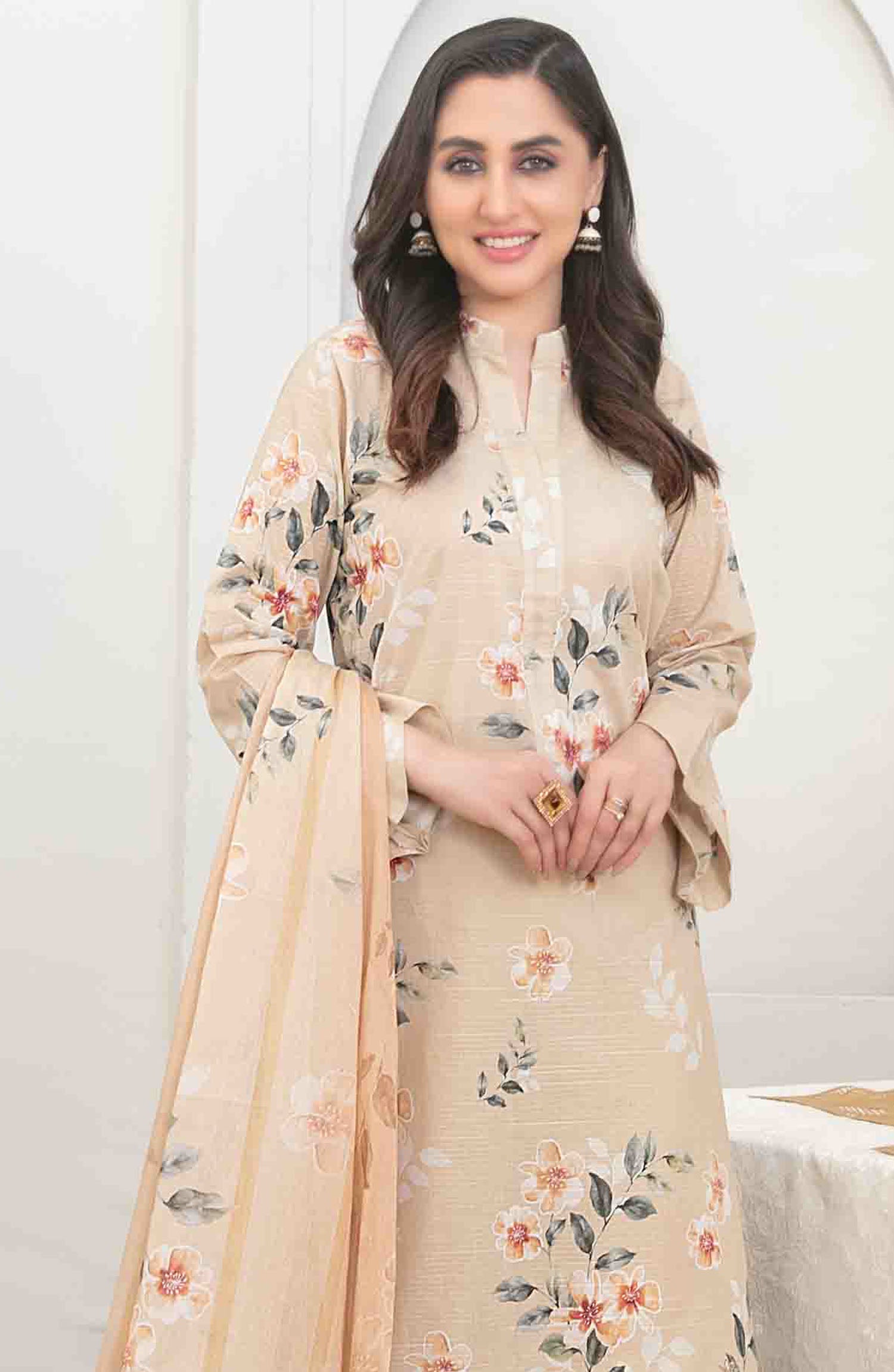 Home Areeba by Tawakkal Fabric Embroidered Lawn Unstitched 3 Piece Suit - D-1687 - TF25AEL - Beige - Summer Collection