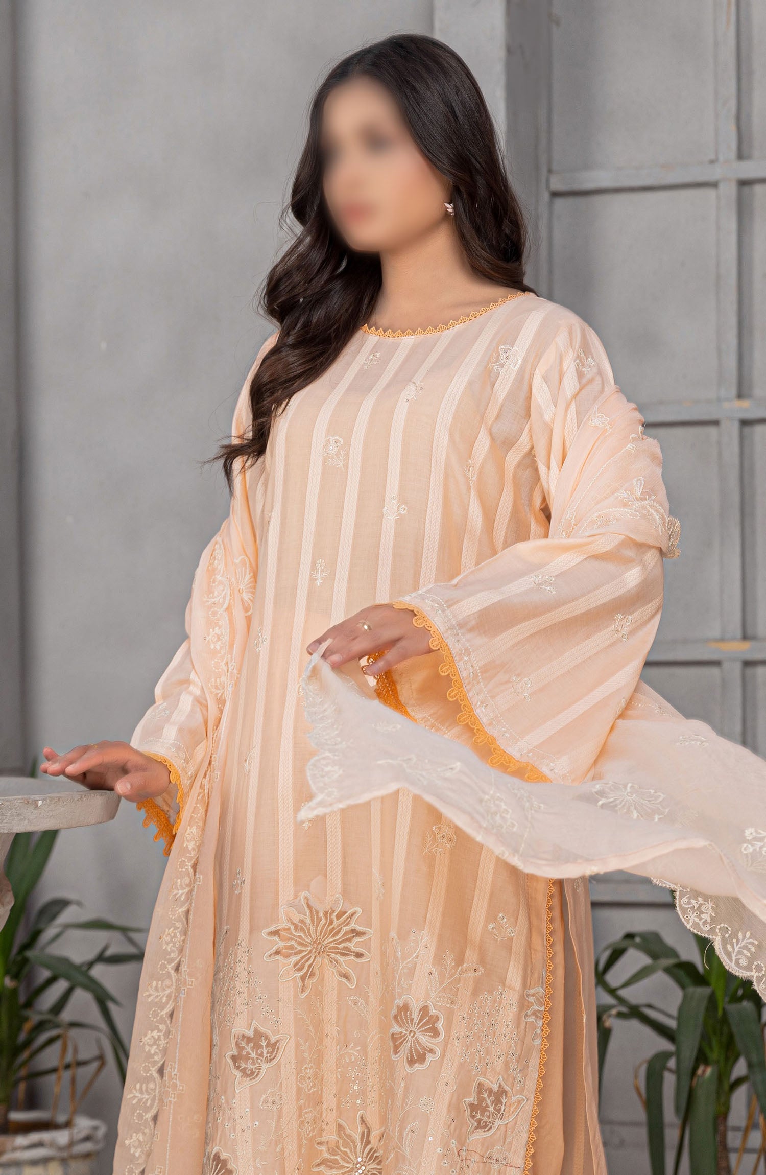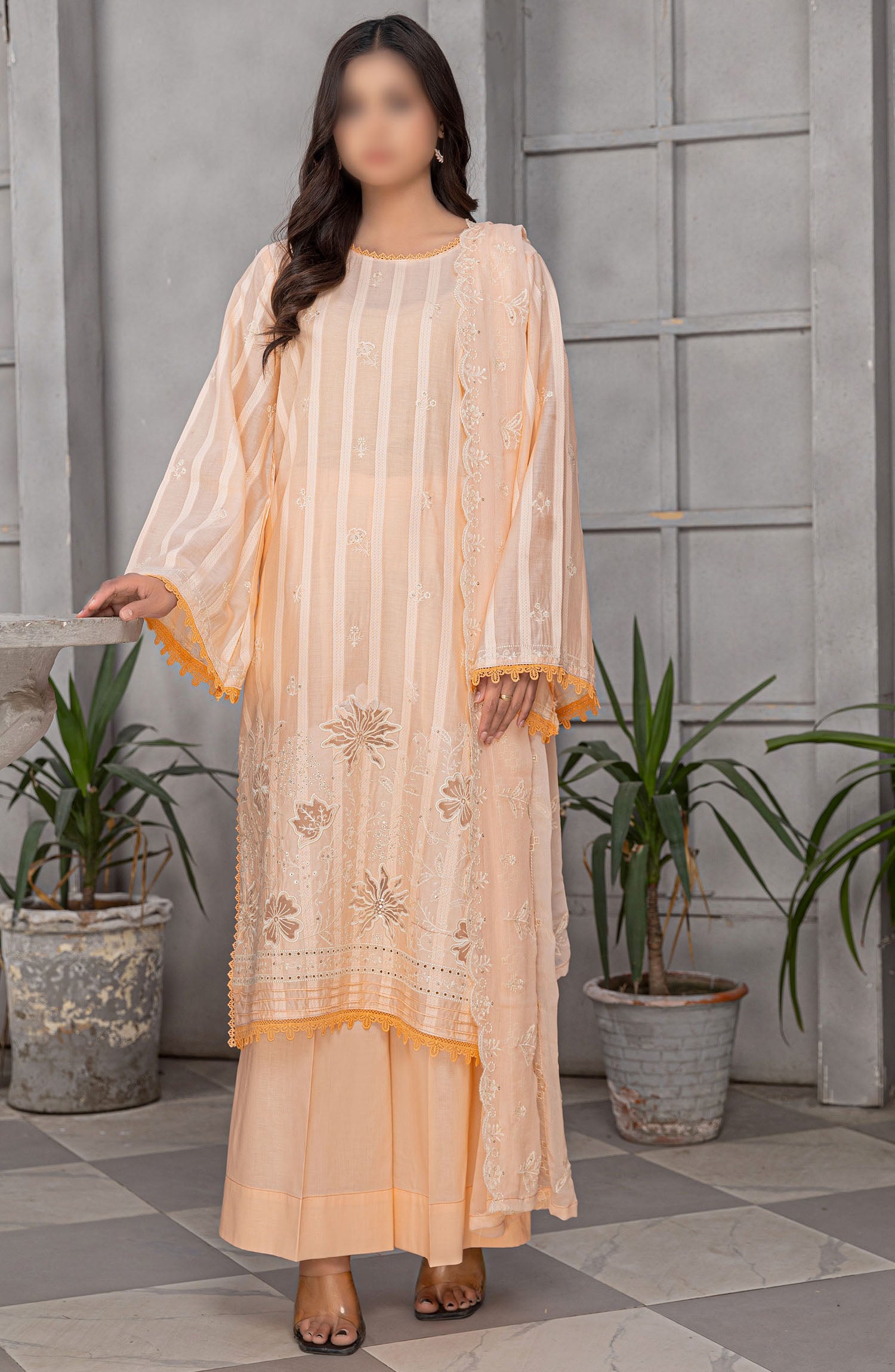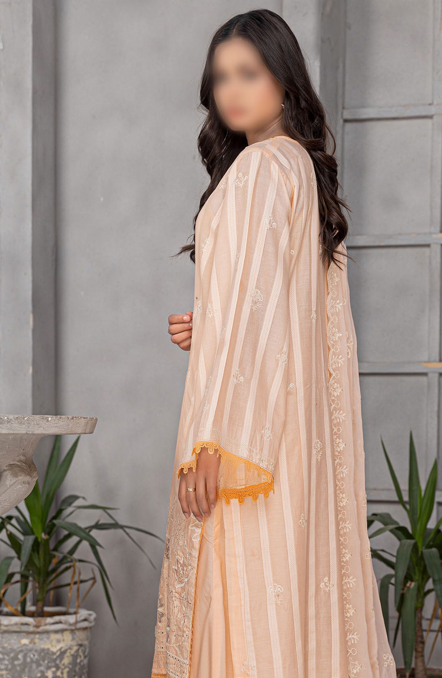 Home Areej by Al Karim Embroidered Lawn Unstitched 3 Piece Suit - D-4 - ALK25ARF - Peach - Summer Collection