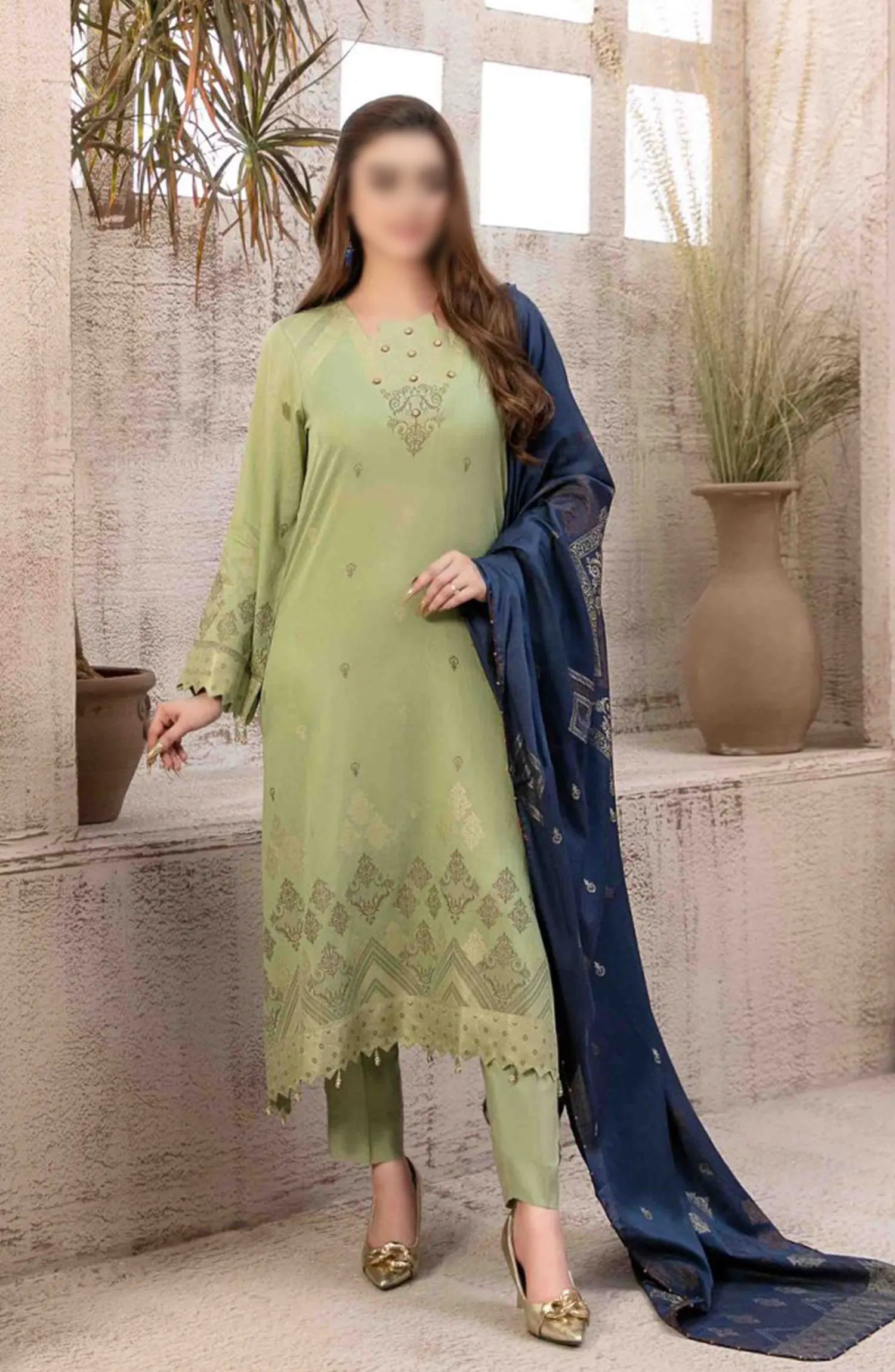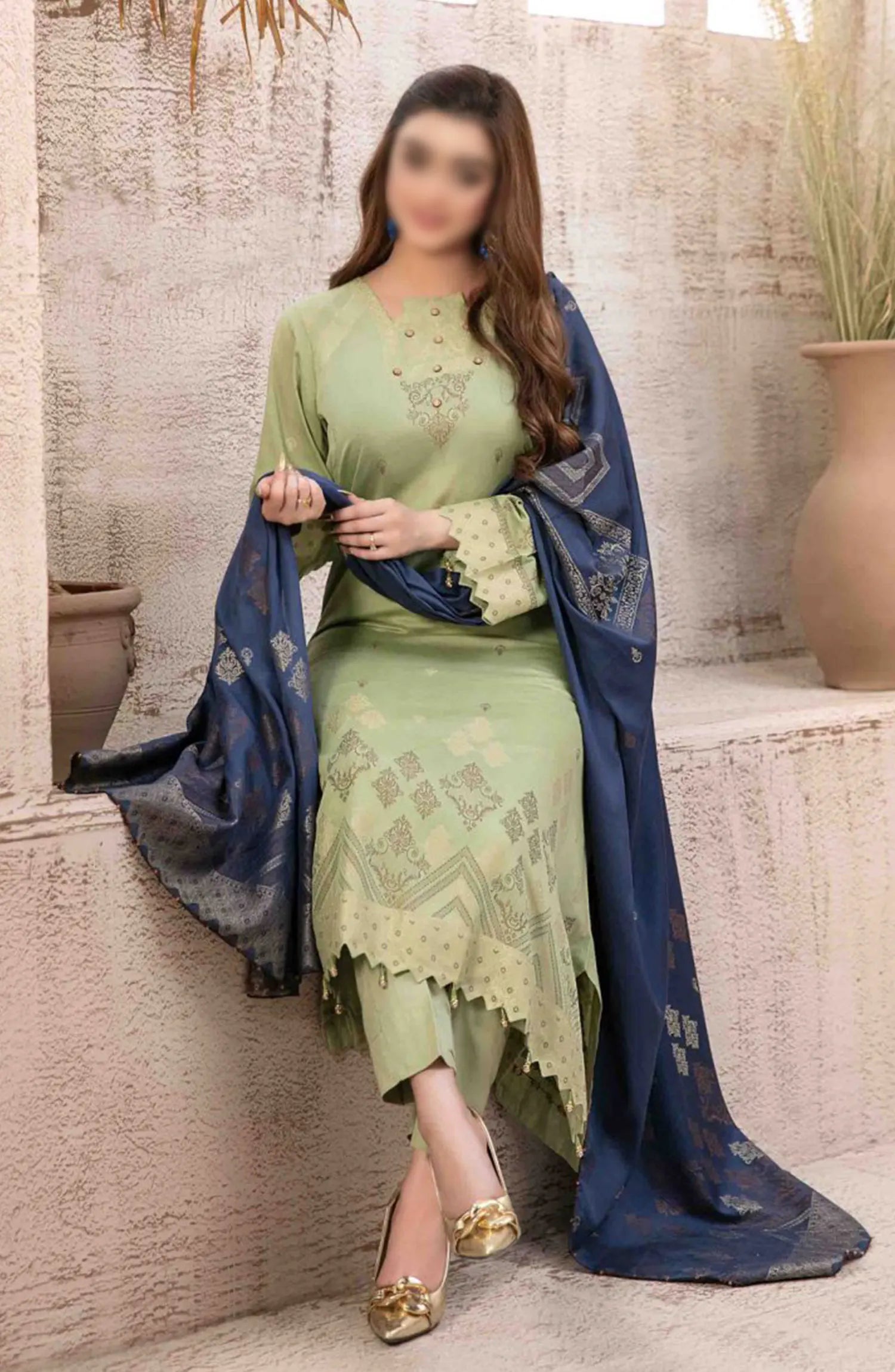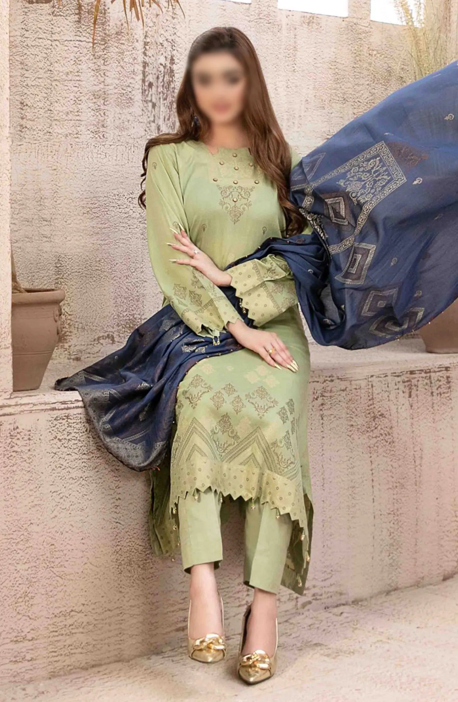 The standard style comes as a long-sleeved kameez with dupatta and trouser/shalwar.
