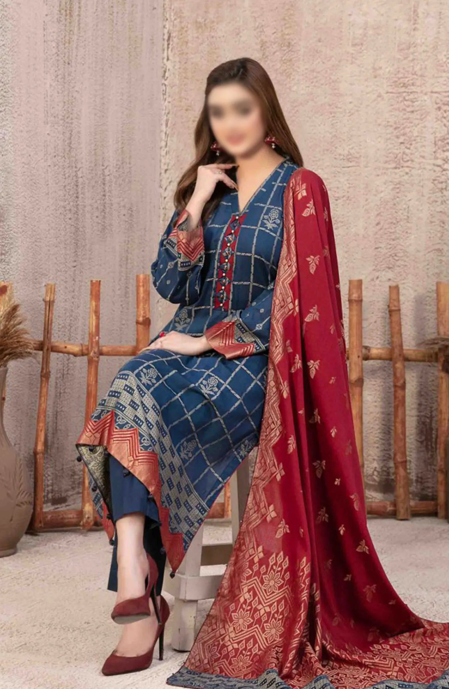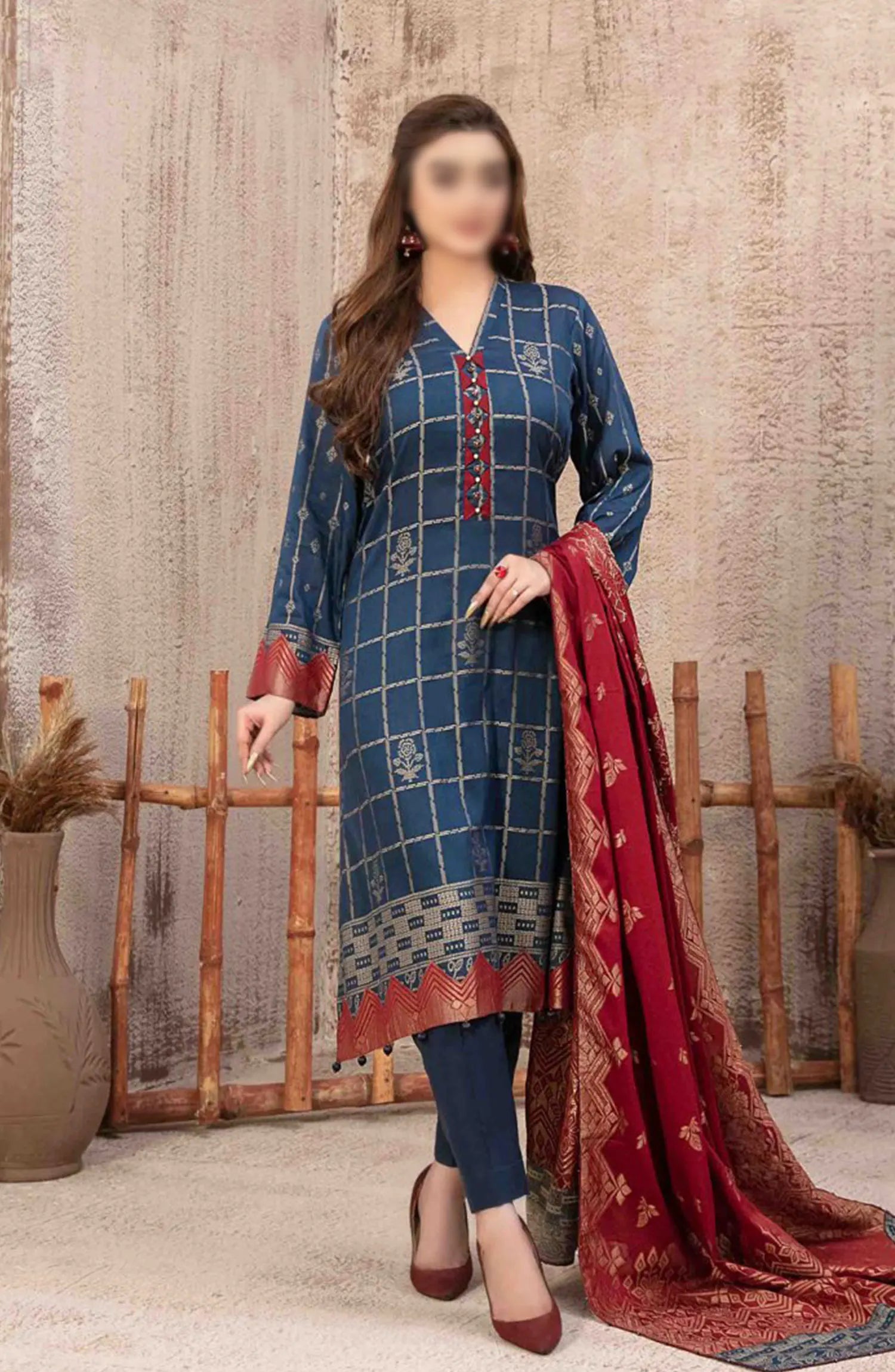 Meeras by Johra Embroidered Winter Fabric Unstitched 3 Piece Suit - JW-690 - JH25MEER - Blue - Winter Collection