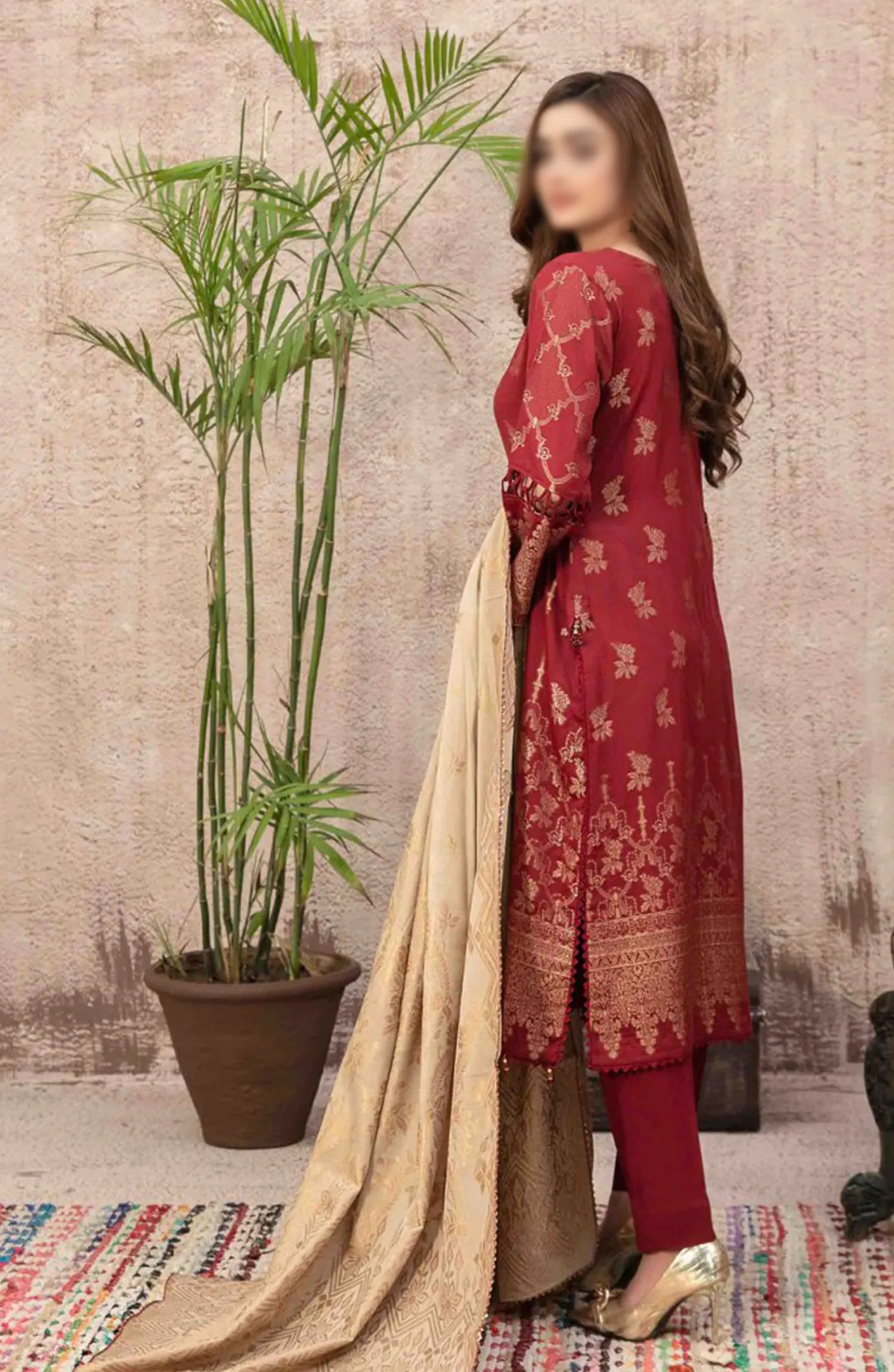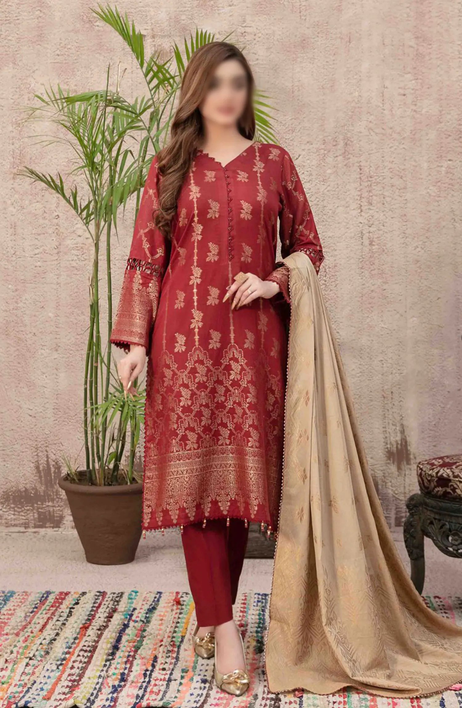 Meeras by Johra Embroidered Winter Fabric Unstitched 3 Piece Suit - JW-691 - JH25MEER - Maroon - Winter Collection