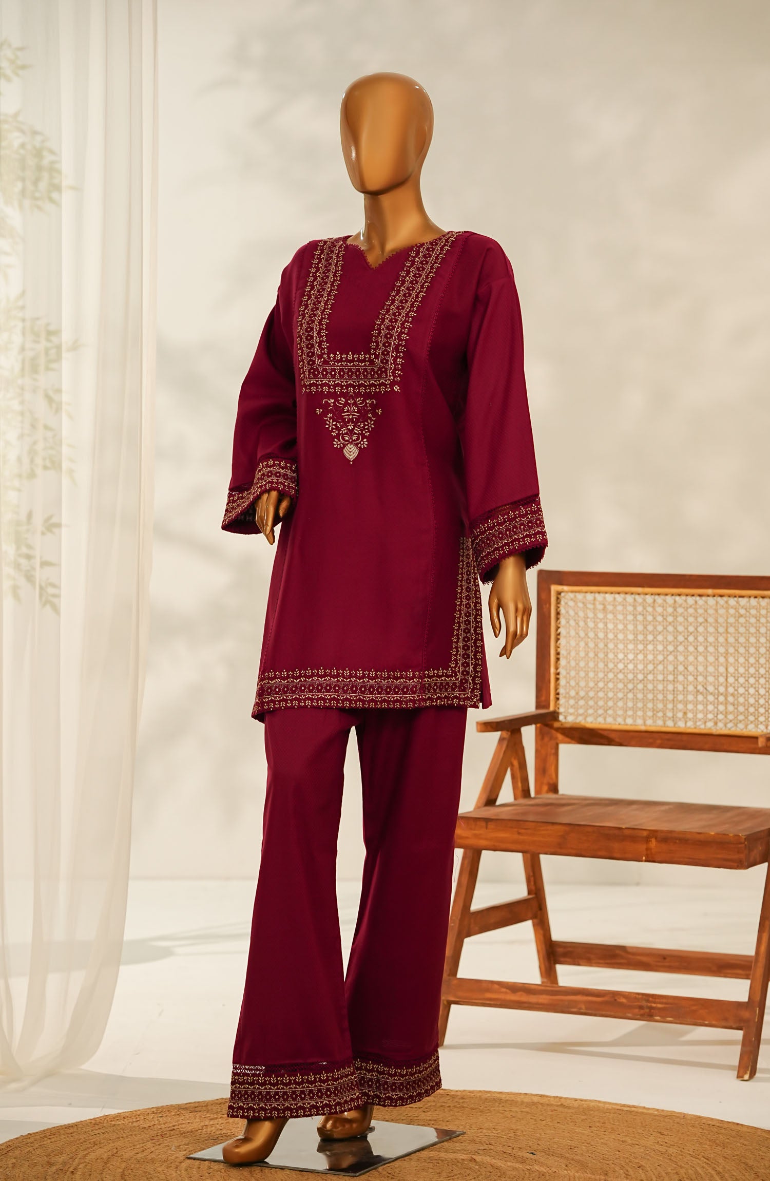 Embroidered Pret Cotton 2 Piece Co-ords with Embellishments