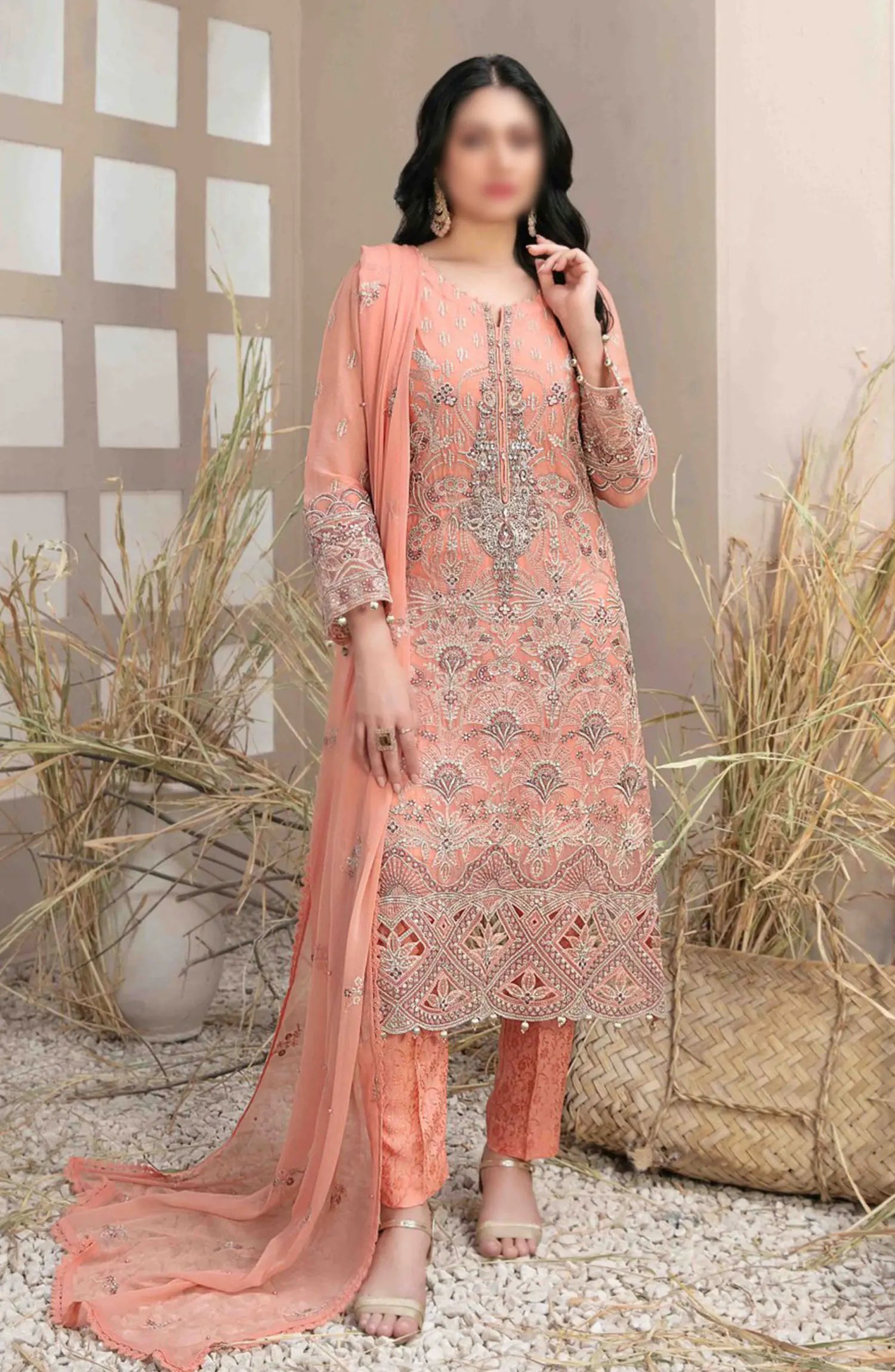 3 Piece | All Categories Women | Arushi Fancy Heavy Embroidered Chiffon Collection 2024 | Chiffon Collection | Semi Stitched | Shop by Color Peach Pink | Shop by Season Summer Wear | Shop by Style Unstitched | Tawakkal Fabrics | Unstitched | Unstitched Collections | Unstitched Designer Wear | Unstitched Summer Wear | Women