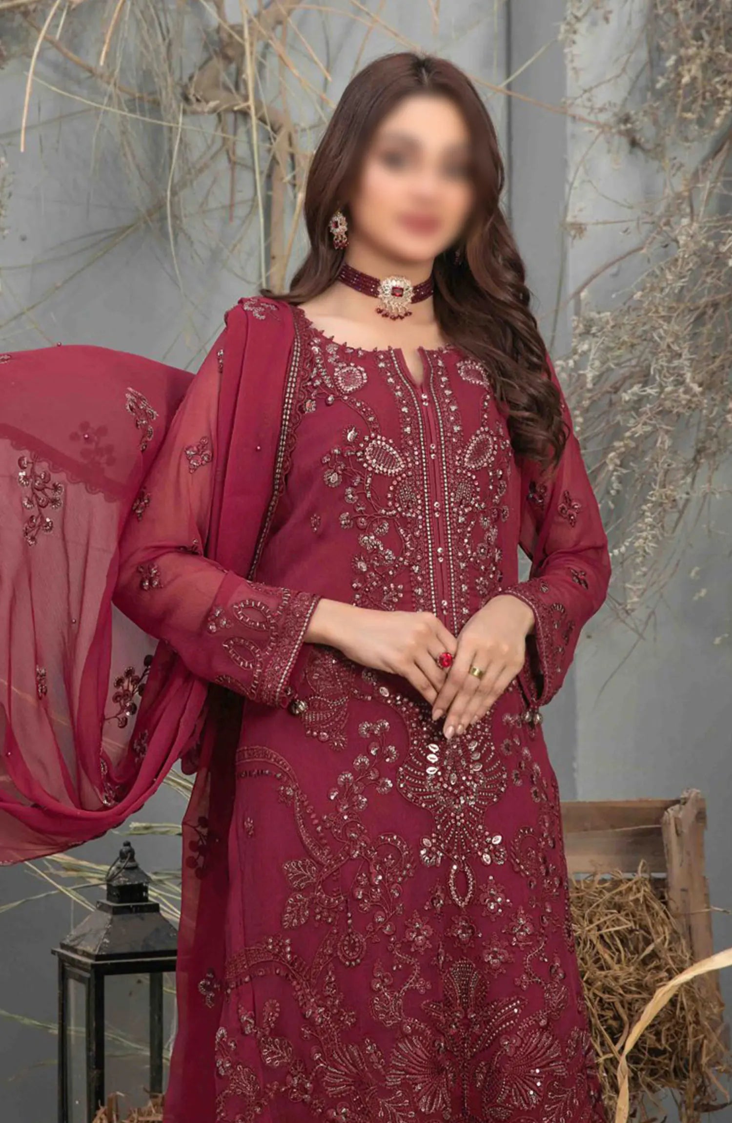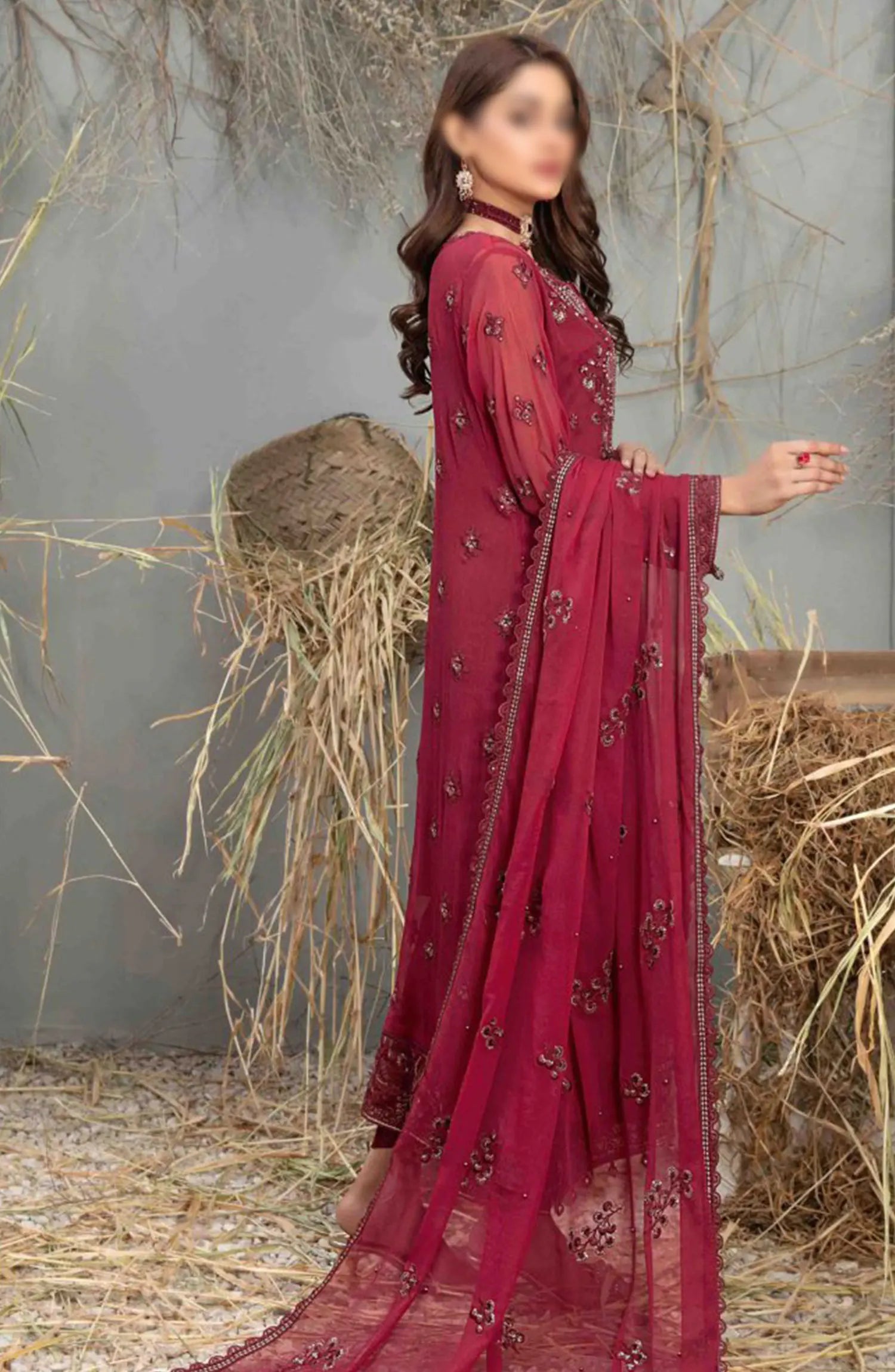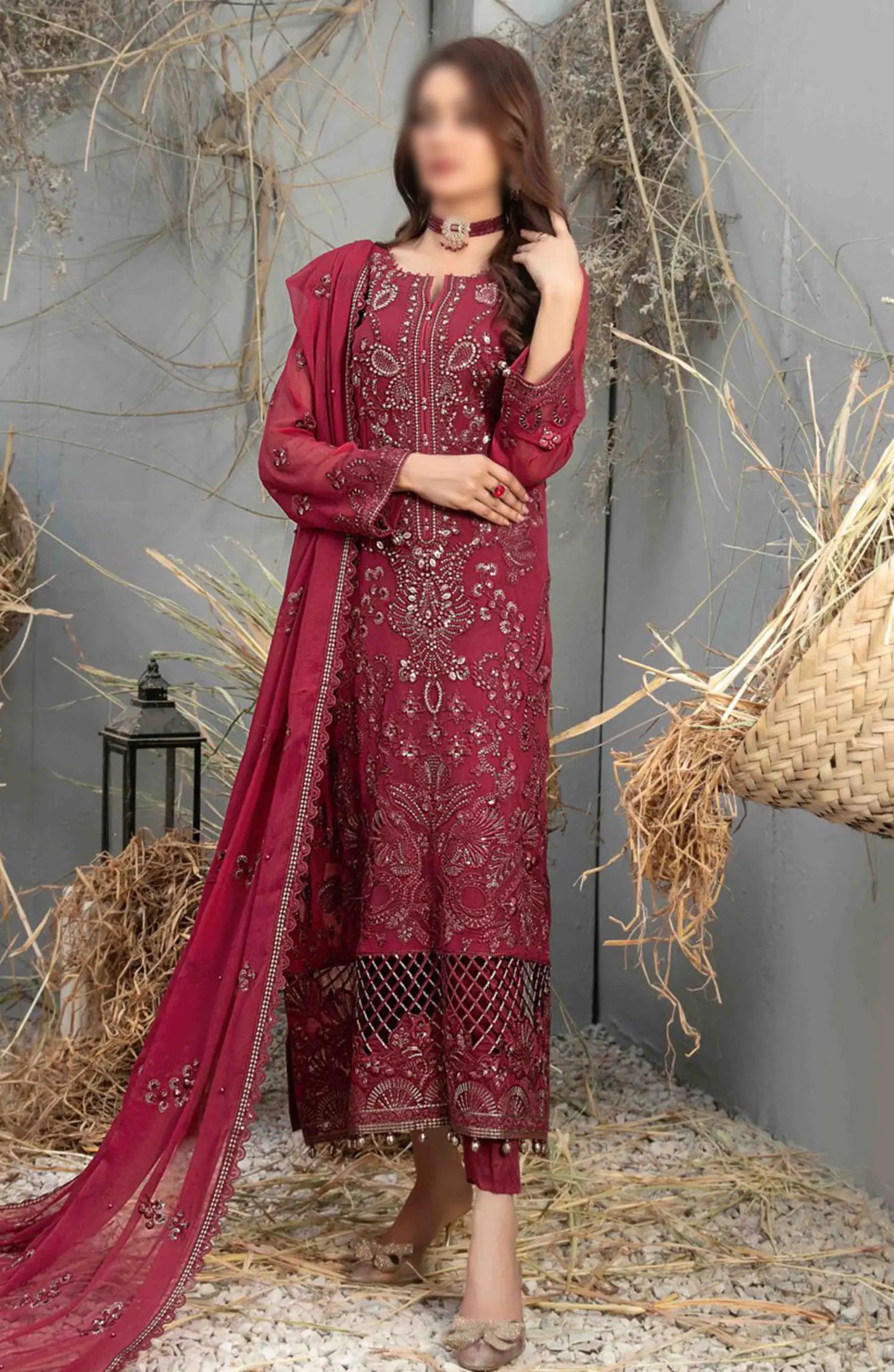 Arushi Fancy Heavy Embroidered Chiffon Collection 2024 has been styled in the image for photography and illustrative purposes.