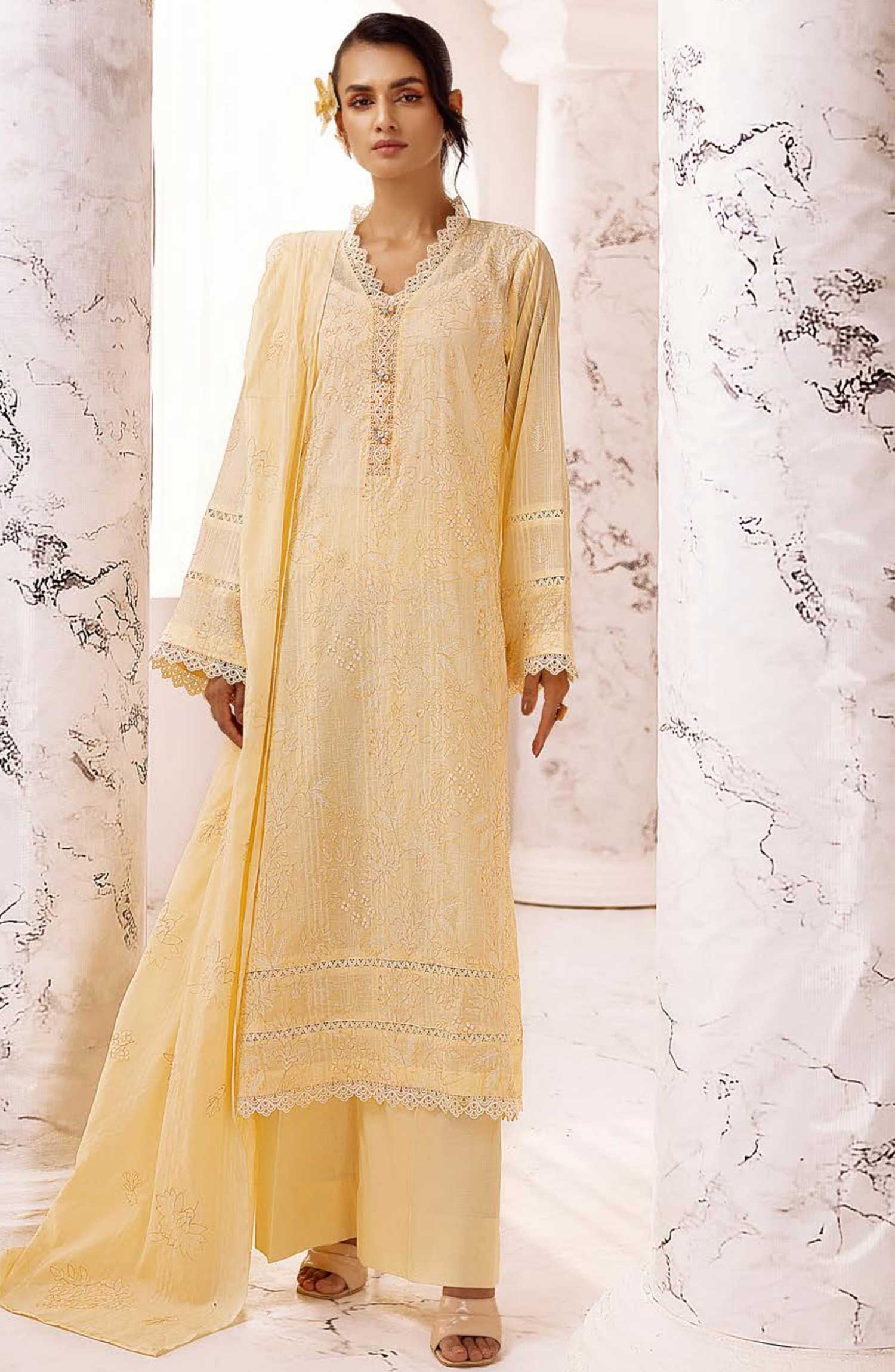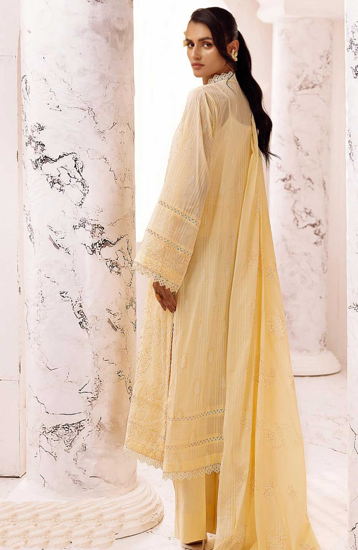 Home Arzoo by Khoobsurat Embroidered Slub Lawn Unstitched 3 Piece - A-63 - K25A - Creamy Yellow - Summer Collection