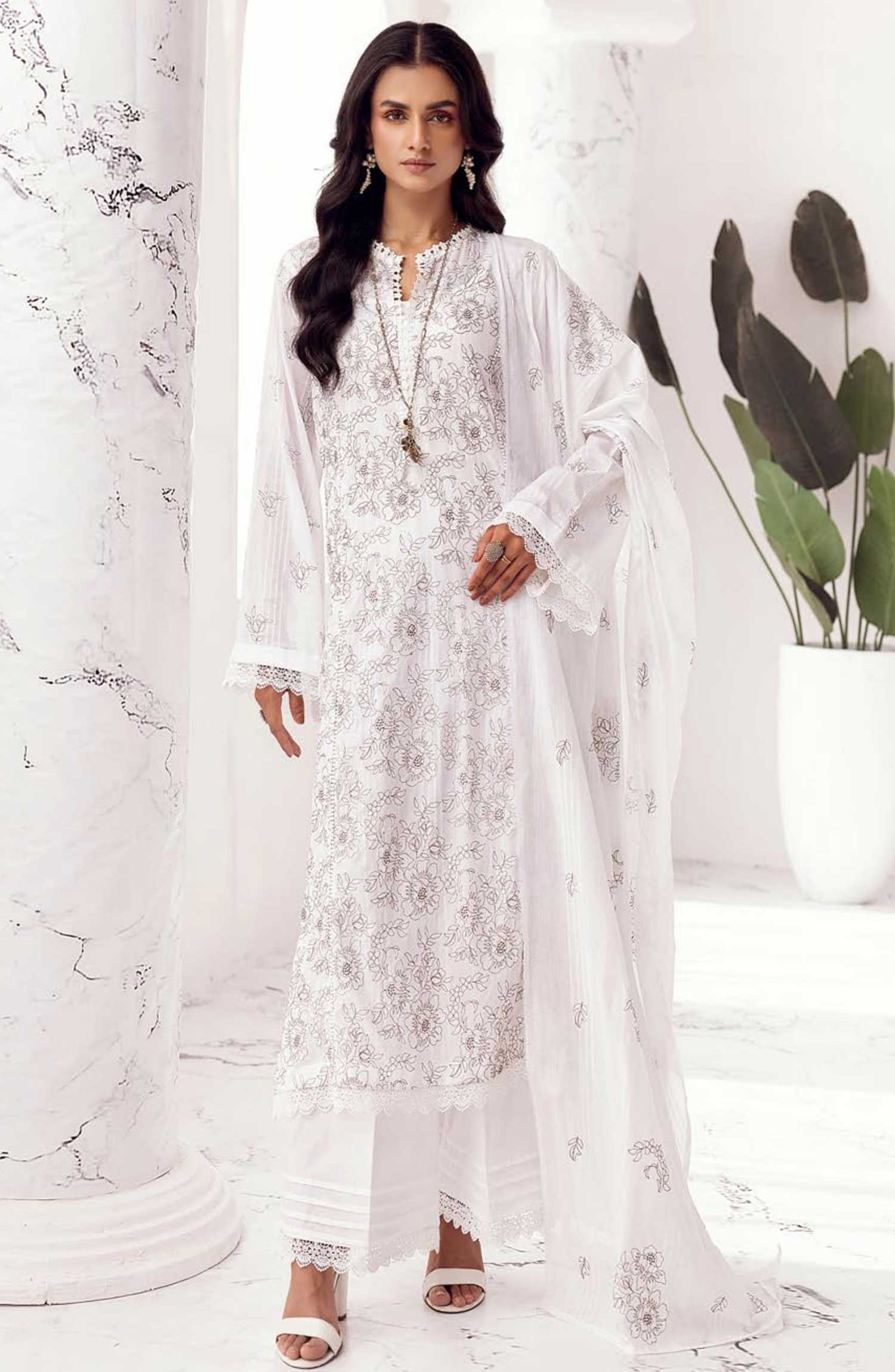Arzoo by Khoobsurat Embroidered Slub Lawn Unstitched 3 Piece - A-68 - K25A - White - Summer Collection