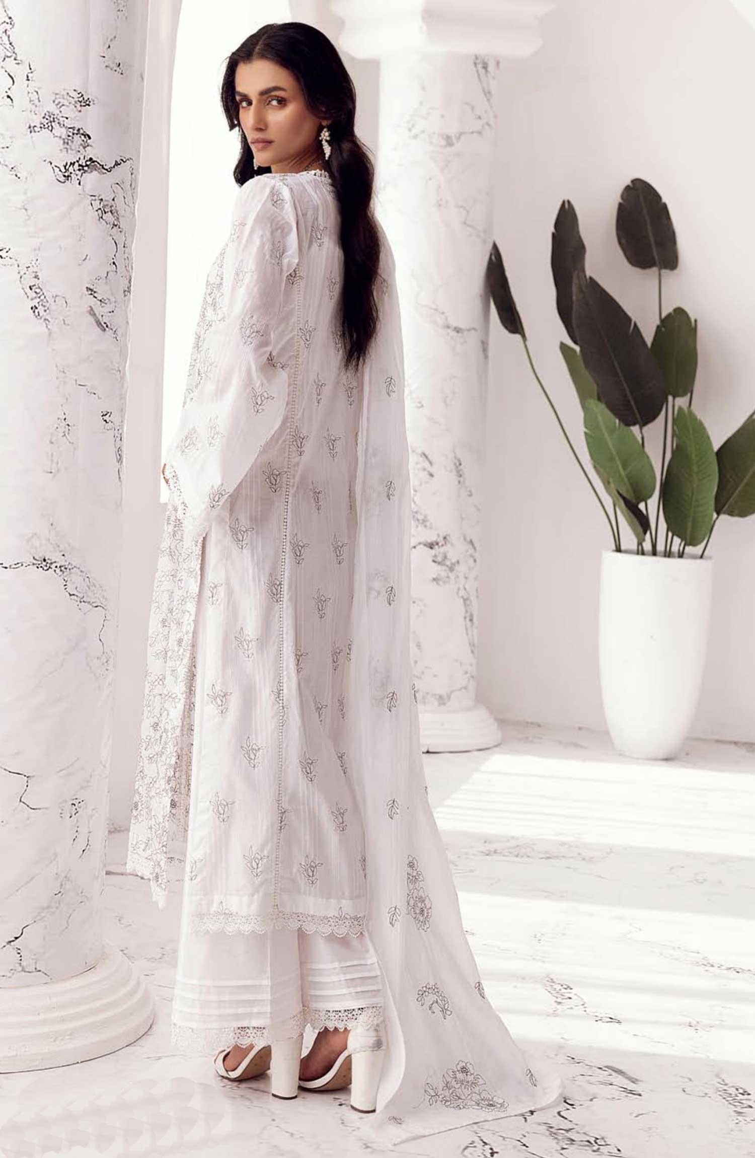 Home Arzoo by Khoobsurat Embroidered Slub Lawn Unstitched 3 Piece - A-68 - K25A - White - Summer Collection