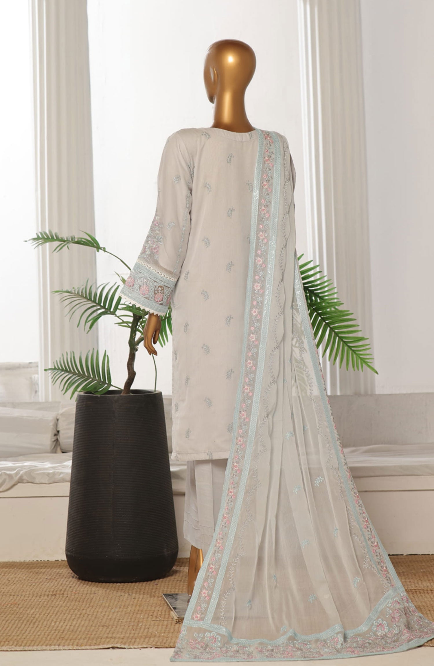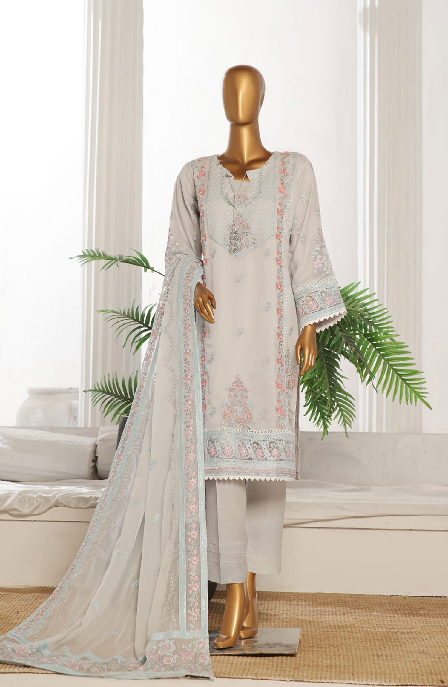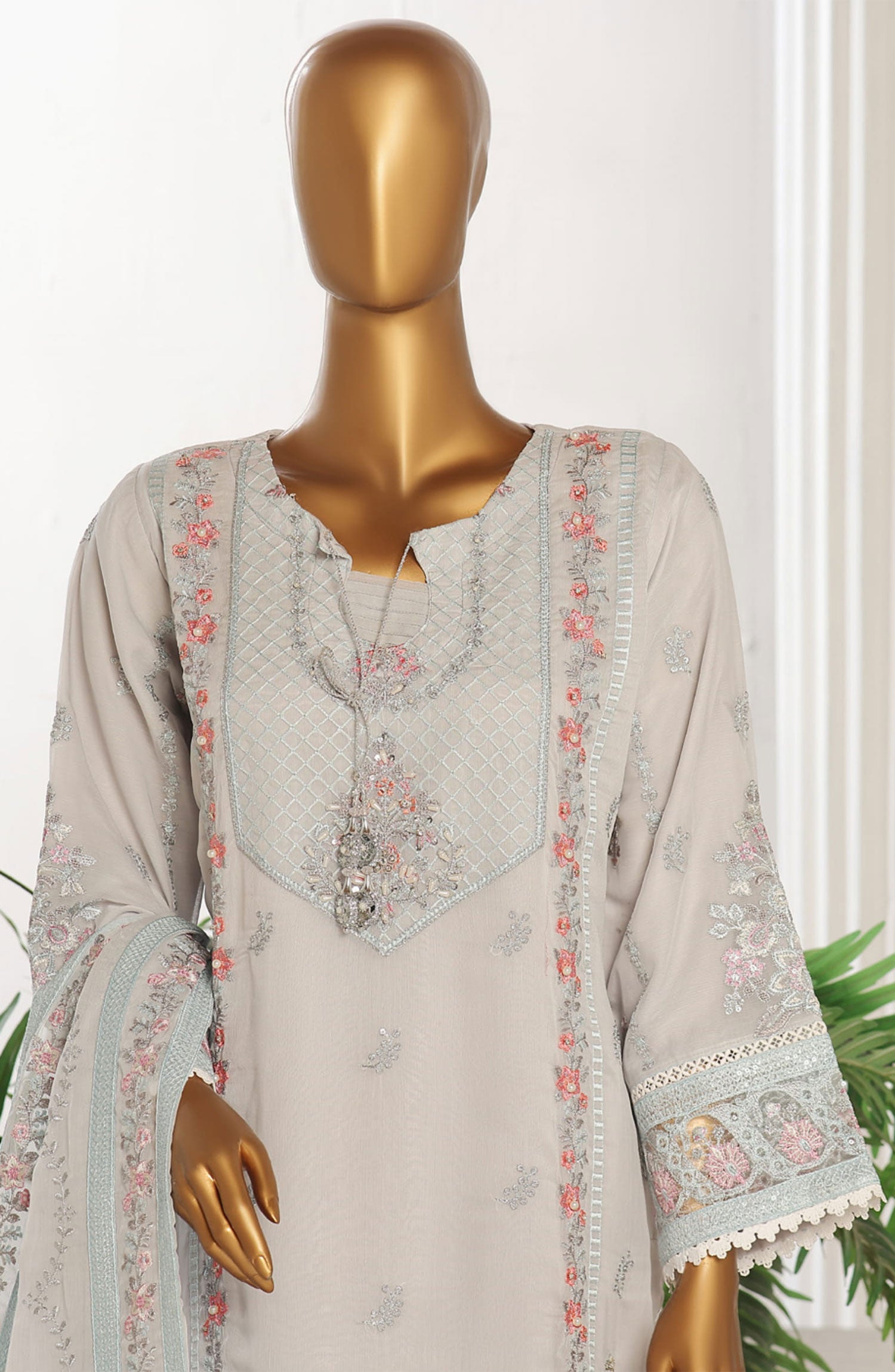 Ayla Printed Lawn Jacquard Stitched 3 Piece Suit - Sahab Baft - AY26ED - Grey - Eid Collection