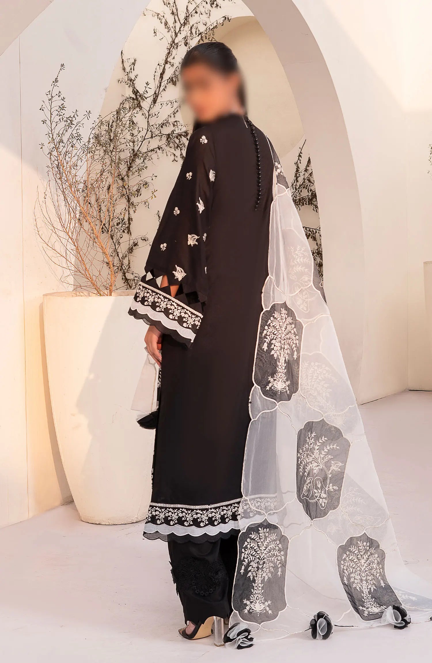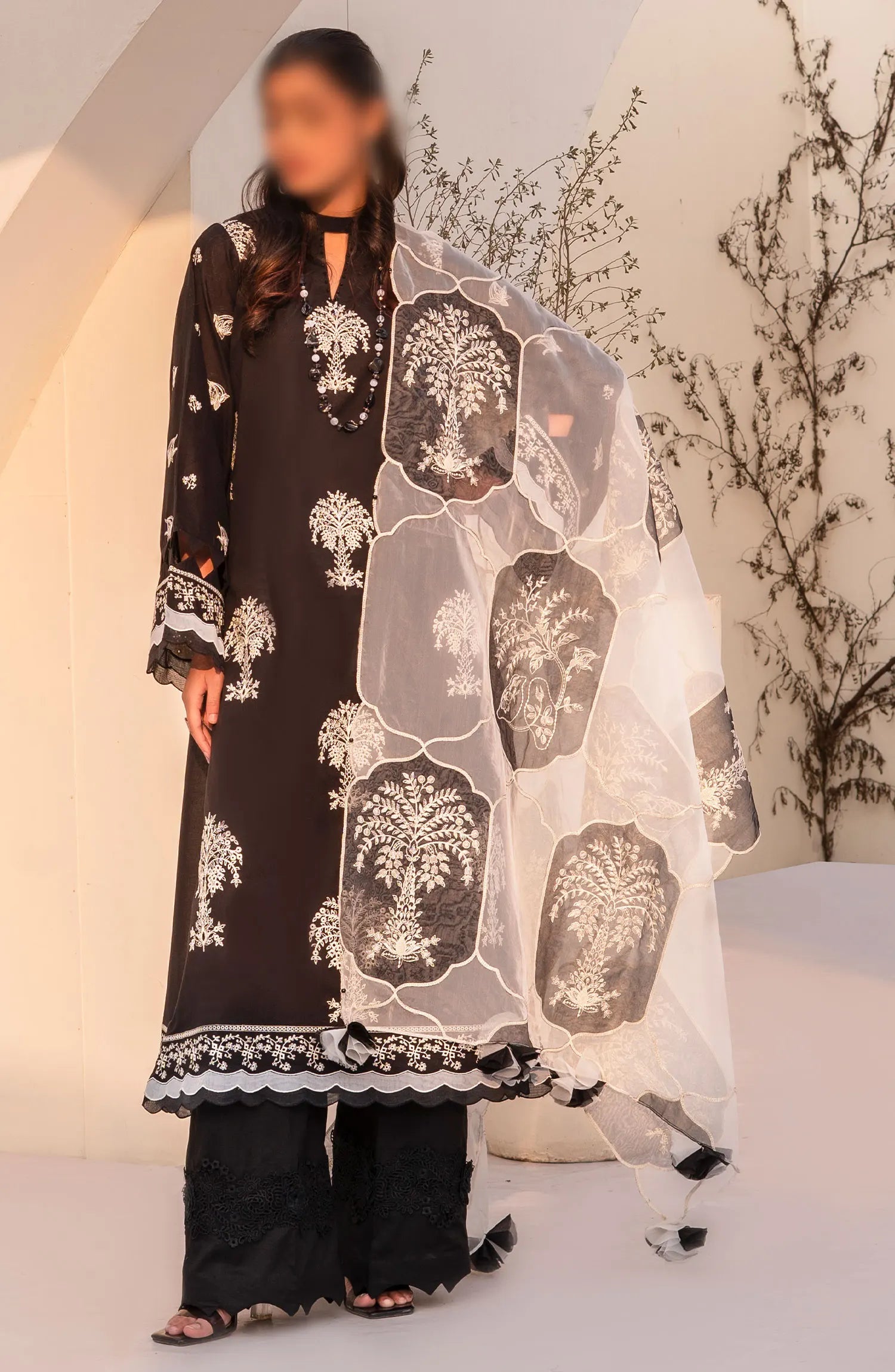 Arzu Unstitched Luxury Lawn Collection 2024 By Humdum has been styled in the image for photography and illustrative purposes.