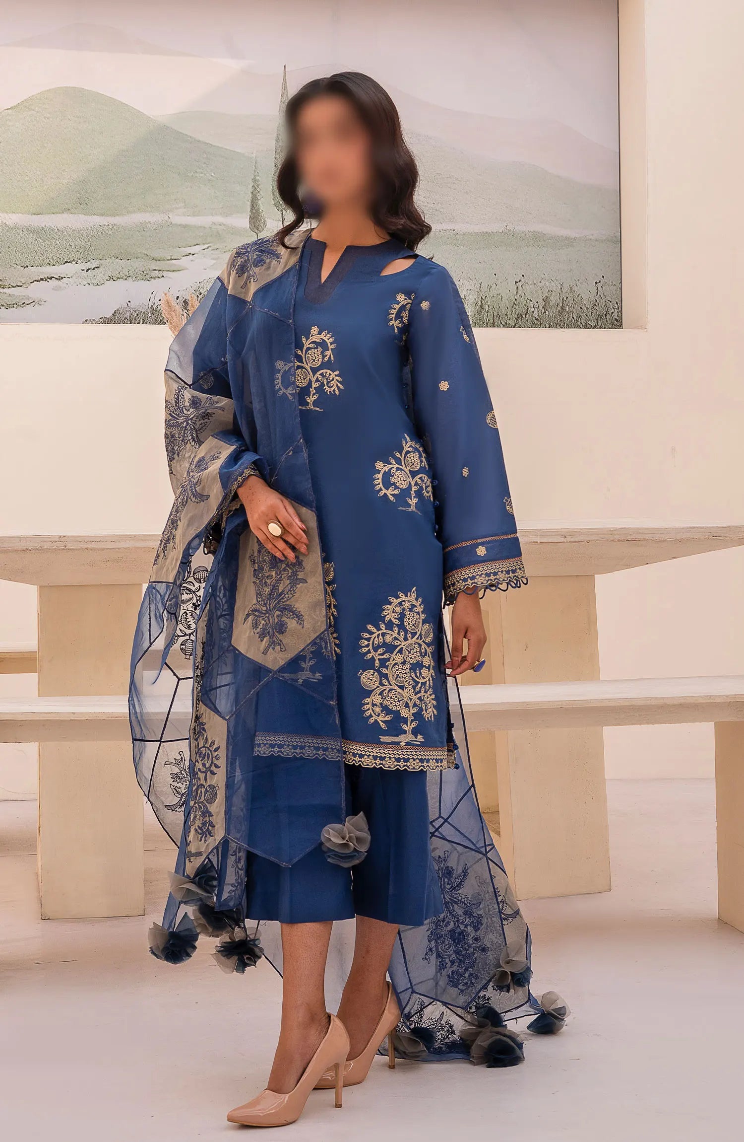 AJR Garden Whisper Embroidered Silk Unstitched 3 Piece Suit - AJR-GW-04 AURINA - AJR25GW - Sky Blue - Luxury Collection